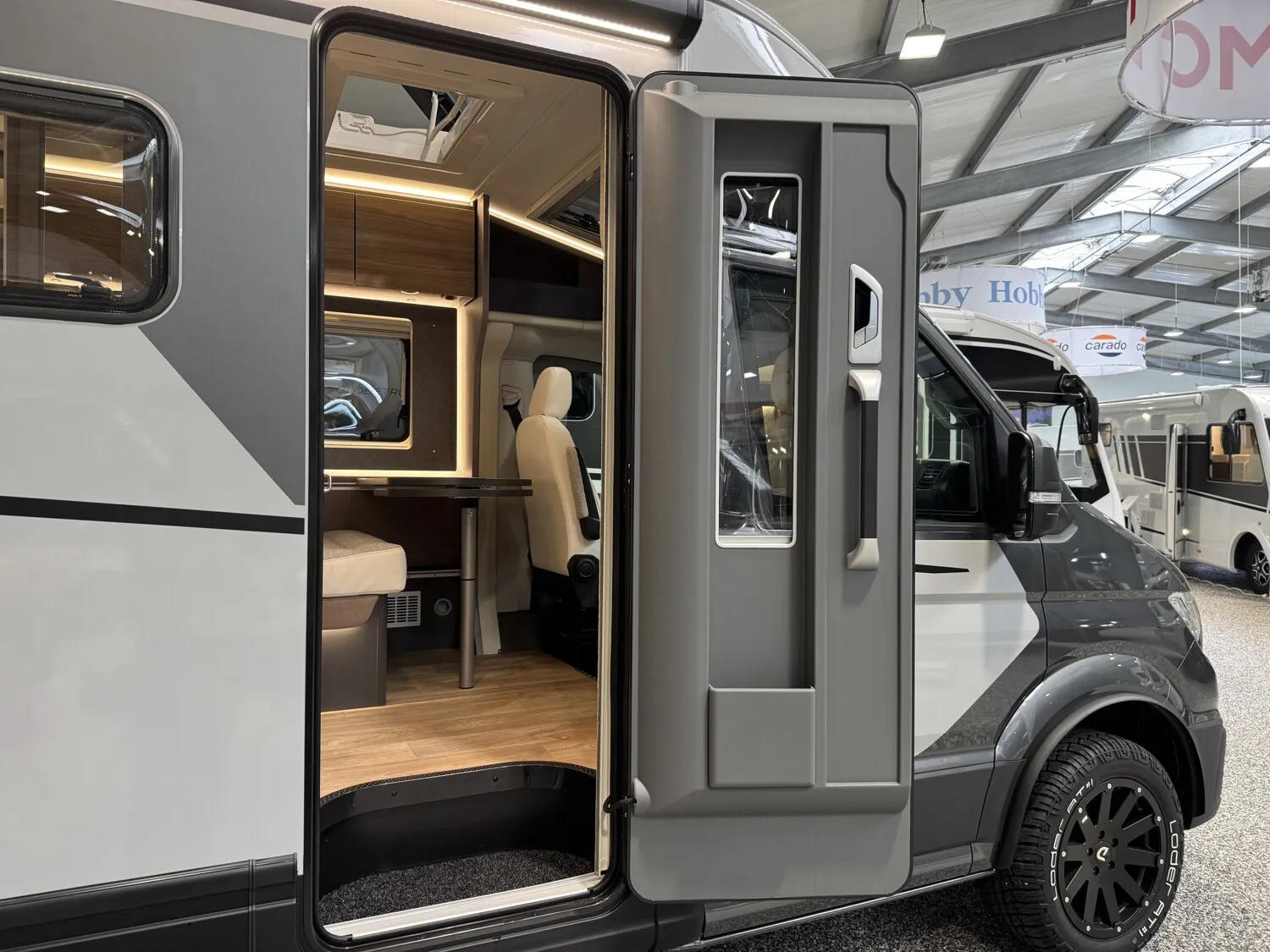 - Globebus Performance 4x4 First Edition Serienhighlights: VW Crafter, 2,0-l-TDI SCR 120 kW/163 PS - Euro VI-e // 8-Gang-Automatik // zul. Gesamtmasse: 3.880 kg // Dieselheizung (6 kW) inkl. 10 l Warmwasserboiler (mit digitalem Bedienpanel) // Kompressor-Kühlschrank // 1. Bordbatterie: AGM Ah 95, 2. Bordbatterie: Lithium 6er-Pack (mit Trennschalter) // Außenfarbe Indium-Grau Metallic // Luftfederung Hinterachse mit Differenzialsperre // Vorderachse verstärkt (Achslast 2.100 kg) // Höherlegung des Fahrwerks um 50 mm // LED Hauptscheinwerfer mit LED-Tagfahrlicht // 18? Felgen Hanma matt schwarz // 255/55 R18 118 T Loderreifen (M+S Schneeflocke) // Navigationssystem Discover Pro mit 32 cm (12?) Touch-Farbdisplay // Multifunktions-Lederlenkrad mit Tiptronic // Digitales Cockpit Pro // Klimaanlage AirCare Climatic // Elektrische Parkbremse // Assistenzpaket Advanced inkl. automatischer Distanzregelung (ACC), intelligent Speed-/Travel-/Lane-Assist, u.v.m. // Verkehrszeichenerkennung // Bergan-/-abfahrhilfe // Rahmenfenster // Scheinwerfer (LightBar) auf der Fronthaube // Leiter und Dachreling schwarz // Markise schwarz inkl. LED Band (Vorzeltleuchte) // Dachlüfter mit Ventilator an der Küche // 32? TV Smart inkl. Halter // CamperNet Router mit Dachantenne