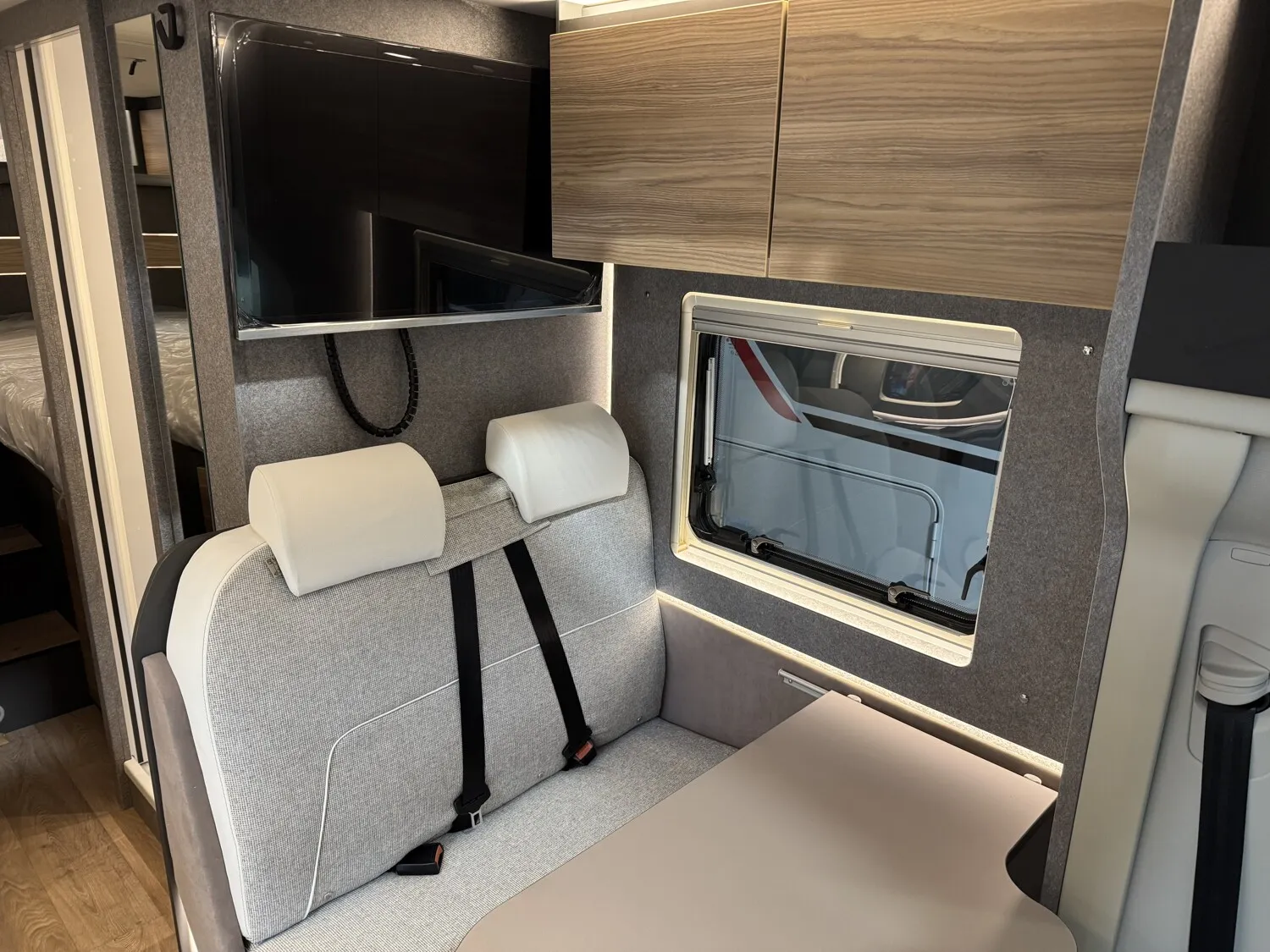 - Sitzgruppe mit Gurtbank inkl. zwei 3-Punkt-Gurten und einhängbarem und erweiterbarem Tisch