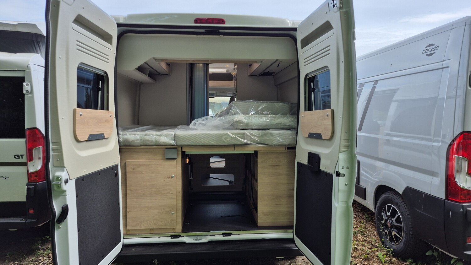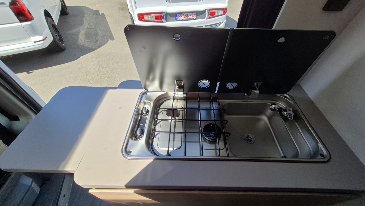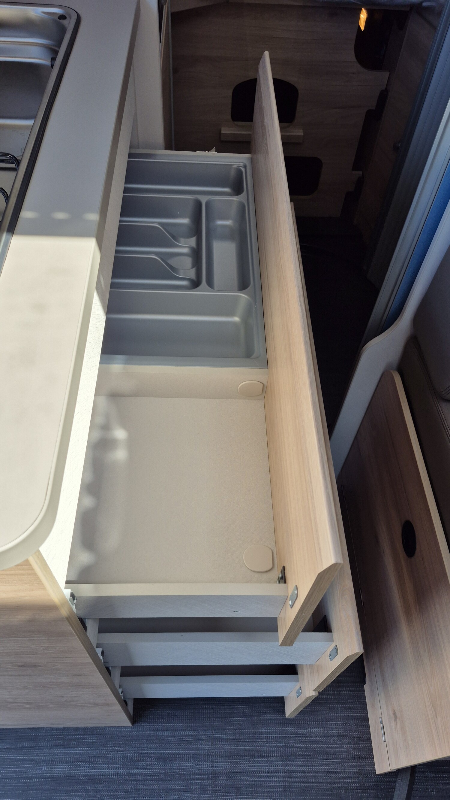 - Elektro Paket (Zusätzliche Doppel-USB-Steckdose im Bug links, 12-V-Steckdose im Heckbereich links unten, 230-V-Steckdose im Oberschrank Bug links (Sitzgruppe), Indirekte Beleuchtung, LED-Lichtröhre in der Küche, Vorbereitung Solarmodule)