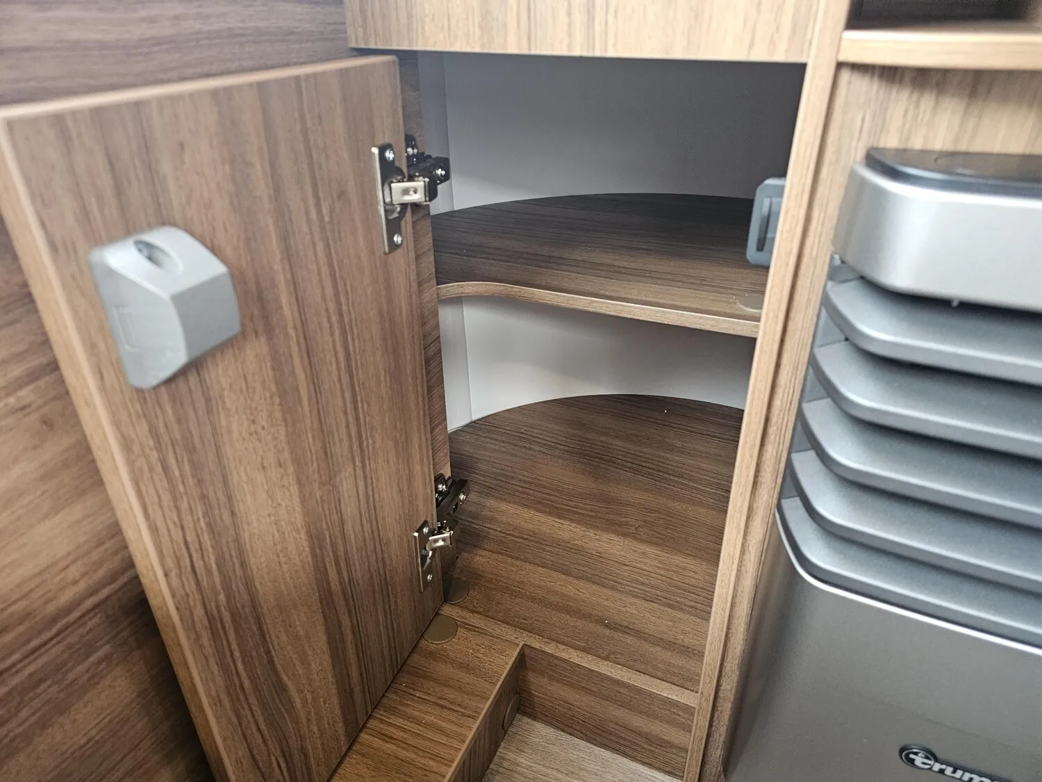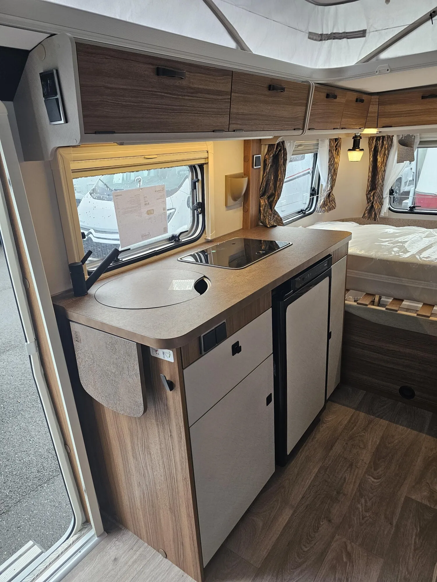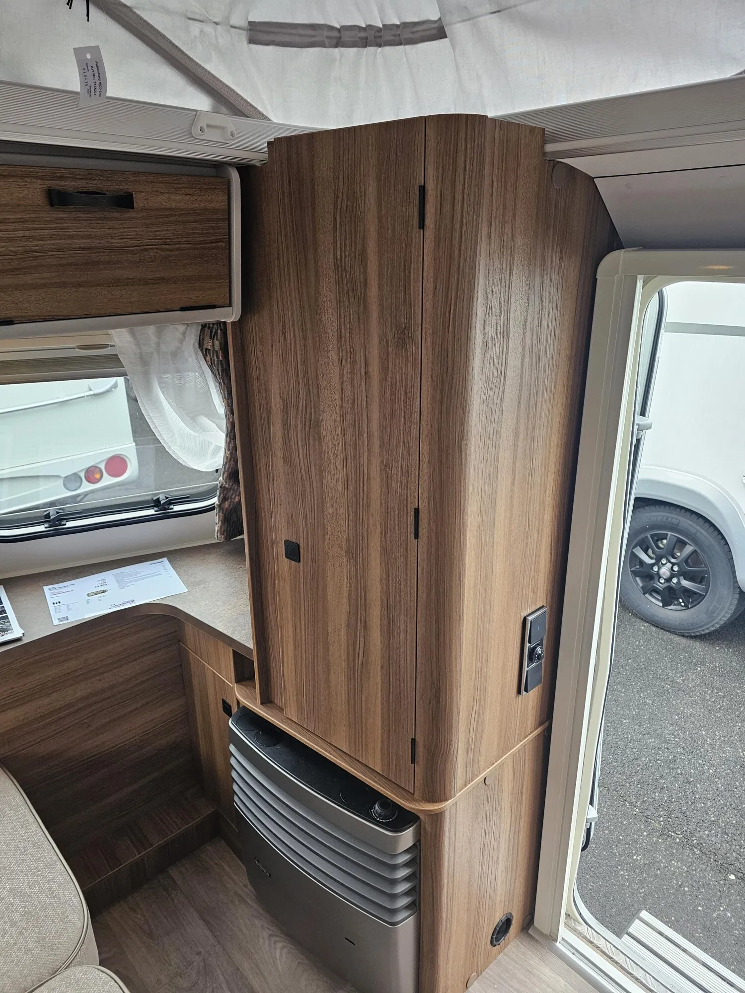- Komfort-Paket (Fliegenschutz-Rolltür (gesamte Türhöhe), bedienfreundlich durch seitliche Führung, Komfort-Plissee-Rollos, Steckdosenpaket (2 x 230 V Steckdosen und 1 x USB-Doppelsteckdose), Abfalleimer in Eingangstür integriert, Spülenabdeckung mit Schneidebrett für Edelstahlspüle, Zusätzlicher Vergrößerungsspiegel mit Magnethalterung)