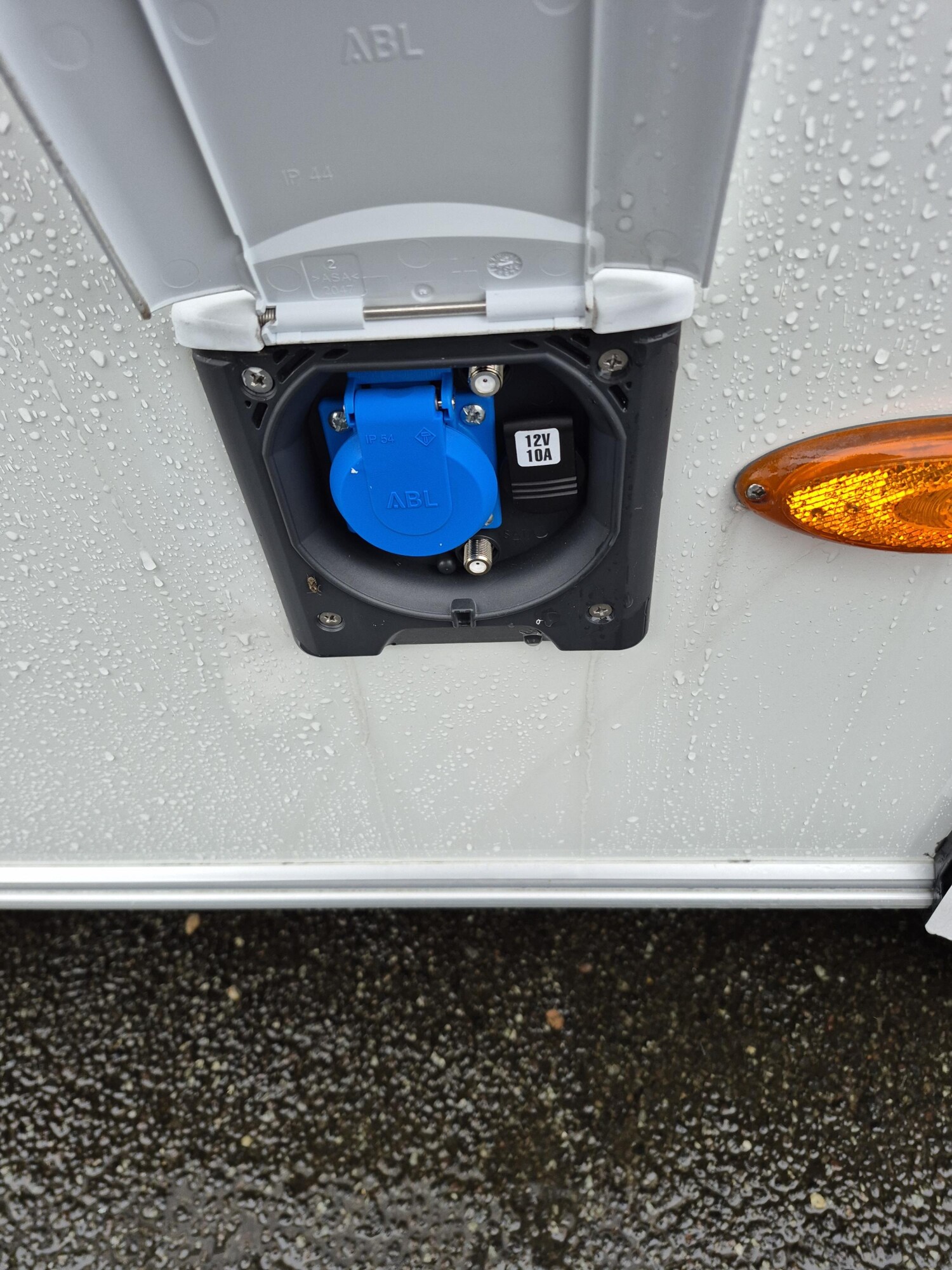 - Universal-Vorzeltsteckdose (230 V, 12 V, TV)