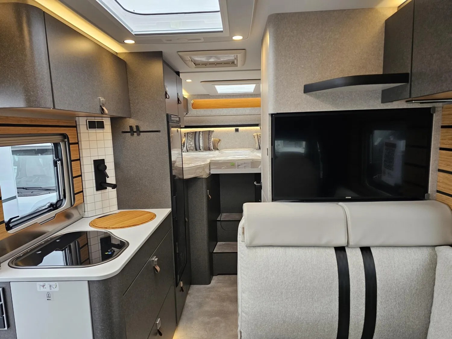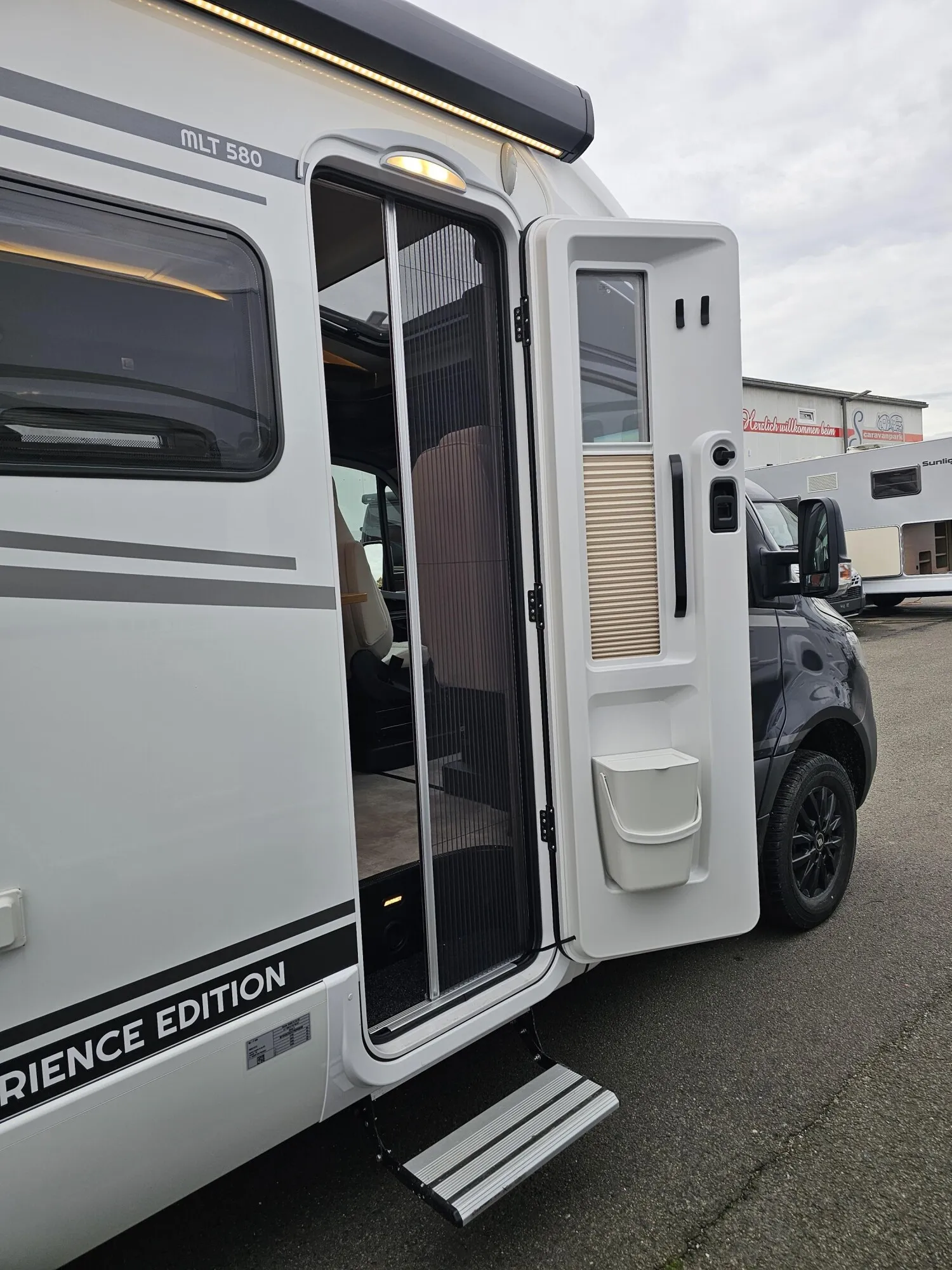 - Xperience Gesamtpaket ML-T 2025 (Außenfarbe Fahrerhaus Tenoritgrau (Metallic) // Markise inkl. dimmbarer LED-Beleuchtung, schwarz, 400 x 250 cm // Aktiver Abstands-Assistent DISTRONIC PLUS inkl. Lenkrad-Multifunktionstasten // Bettenbau für Komfort L-Sitzgruppe inkl. Zusatzpolster und absenkbarem Tisch unter Einbeziehung des Fahrersitzes // Designabklebung Xperience // Nebelscheinwerfer mit Abbiegelicht // Verkehrszeichen-Assistent // Komfort L-Sitzgruppe mit Loungepolstern, längs-/quer verschiebbarem Tisch und 2 integrierten 3-Punkt-Gurten // Schlafsystem mit Tellerfederrost für Heckbett(en) // Zusatzpolster zwischen den Längseinzelbetten inkl. integrierter Komfortaufstieg // 4 Kissen mit Bezug // 32" TV-Halter // 32" Smart LED-TV mit integrierten Lautsprechern, Fernbedienung, DVD-Laufwerk, HYMER Smart-Multimedia-System mit Bluetooth (DVB-T/C, DVB-S2) und elektrischem Halter inkl. Receiver // MBUX 10,25" Multimediasystem mit Rückfahrkamera, Sprachsteuerung und Touchscreen inkl. Navigation & Smartphone-Integration // HYMER Connect Sensoren-Paket inkl. 1x Gasfüllstandssensor, 1x Temperatursensor und 2x Kontaktsensor // Komfort-Eingangstür mit Fenster, Verdunkelungsrollo, integriertem Mülleimer und 2-fach Verriegelung // 16 Leichtmetallräder (schwarz) mit Ganzjahresbereifung // Lederlenkrad (bei Automatikgetriebe) // Automatikgetriebe 9G-TRONIC inkl. Hold-Funktion // DAB Radio)