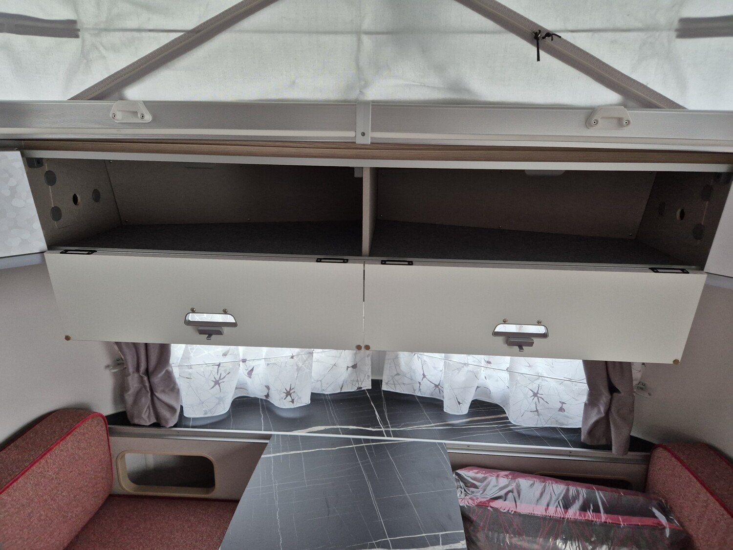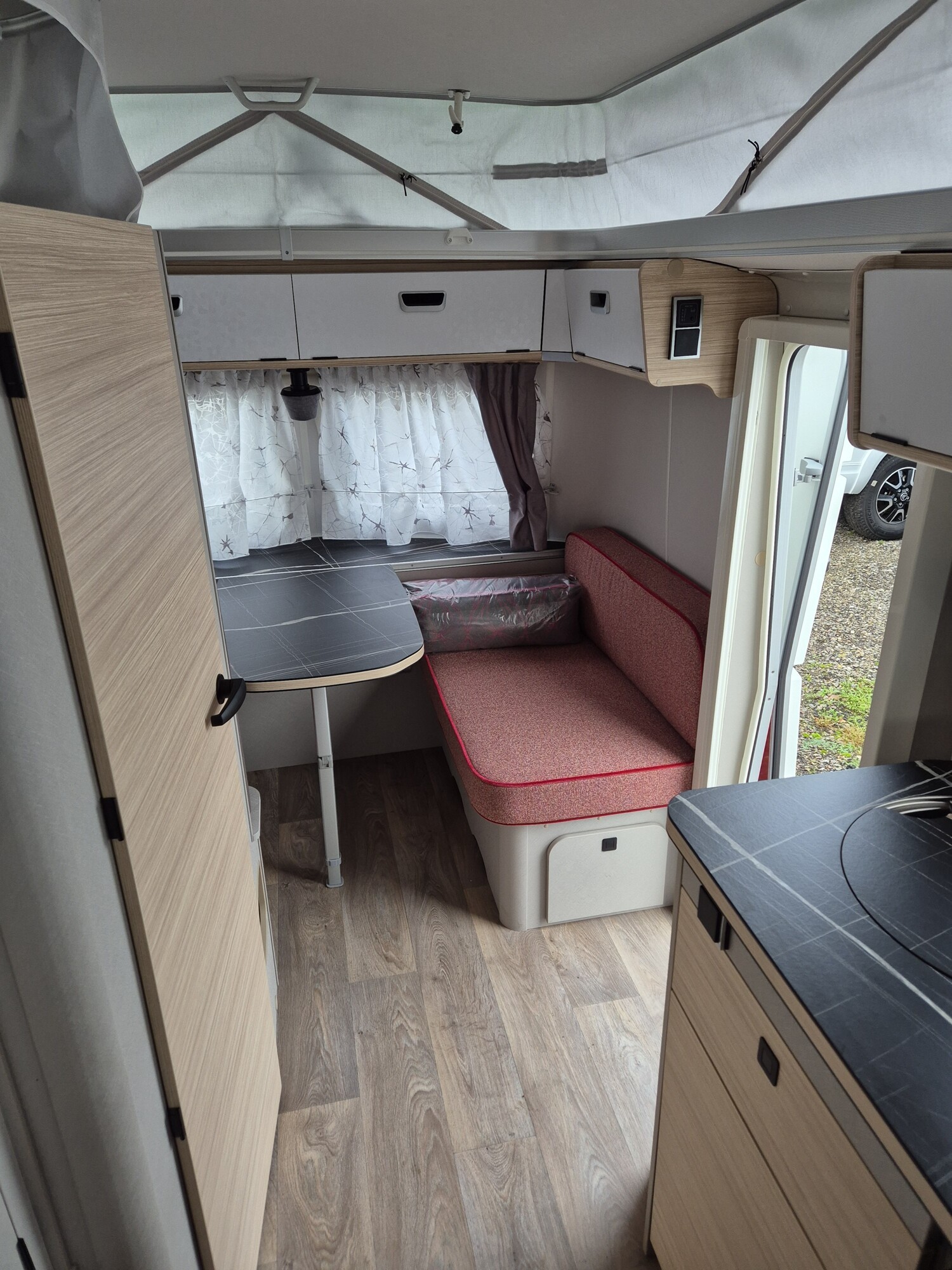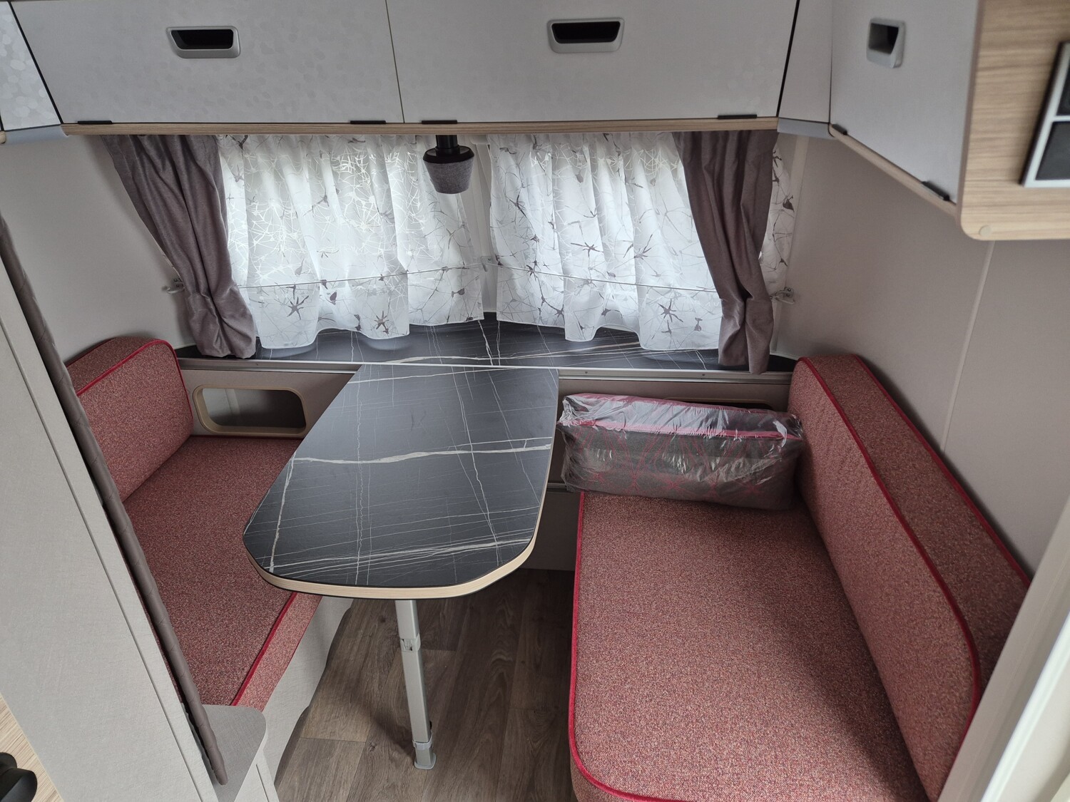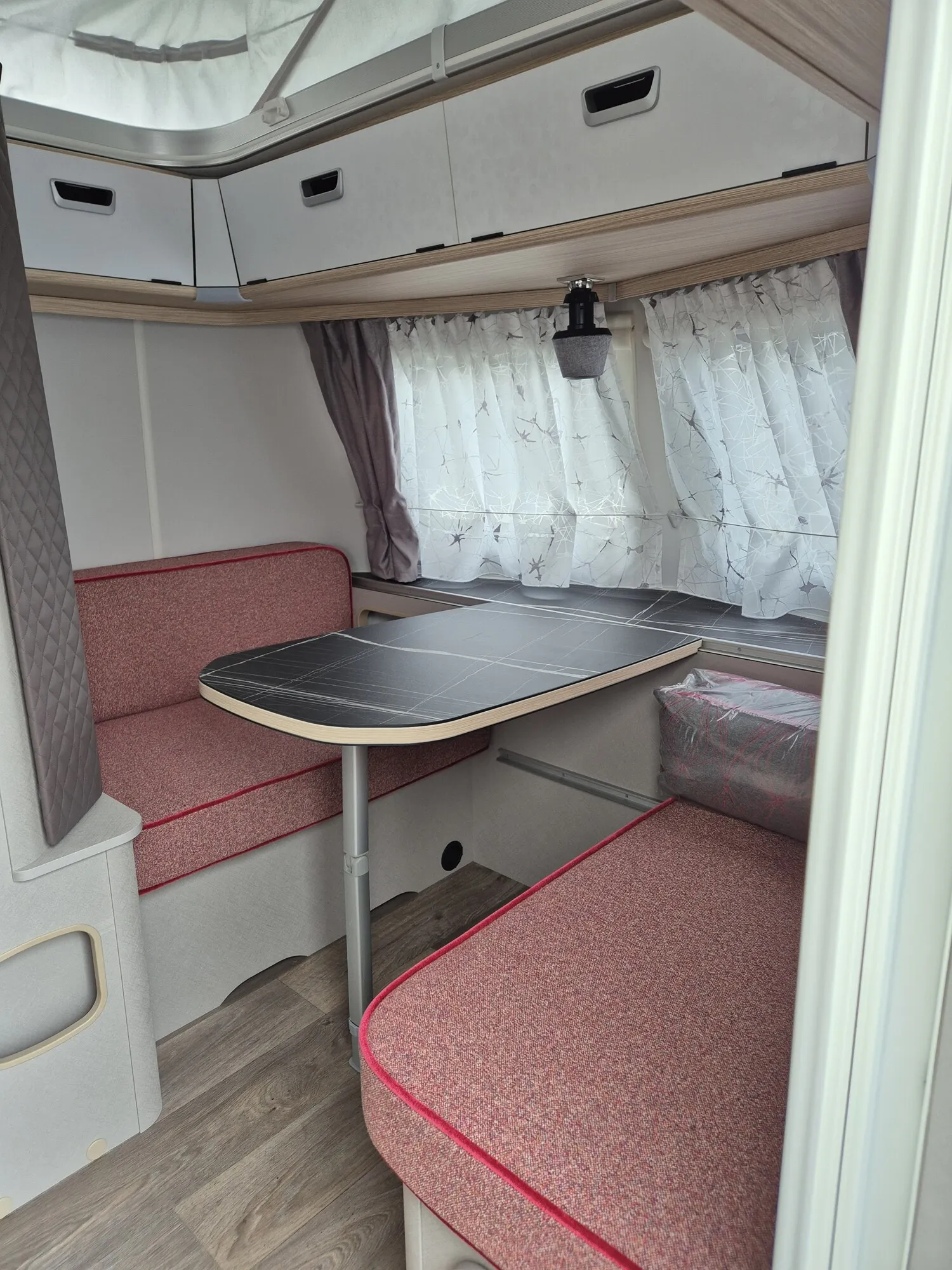 - Tango Red Edition (Seitenwände, Bug und Heck in Glattblech, Farbe White Tango Red, Stoffkombination Tulsa für Ausstattungslinie Urban, Möbeldekor Tindari, Chrompaket mit Außenanbauteilen in Chrom und Radlaufblende sowie Rückleuchten in Retrodesign, Leichtmetallfelgen ERIBA 5-Stern-Doppelspeiche, anthrazit, Steinschlagschutzblech, Bumper aus Edelstahl, Ambientelicht XL mit indirektem Licht oberhalb der Dachstauschränke und zwei zusätzliche ERIBA Multifunktions-Akkuleuchten, 2 Kissen mit Bezug)