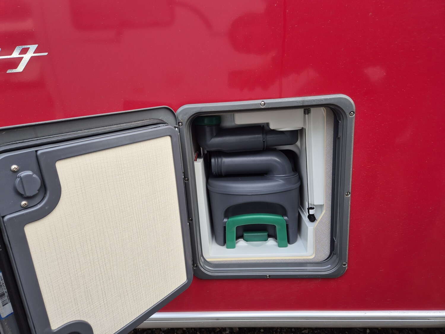 - Außenstauraumklappe Heck in Fahrtrichtung rechts, 80 x 35 cm