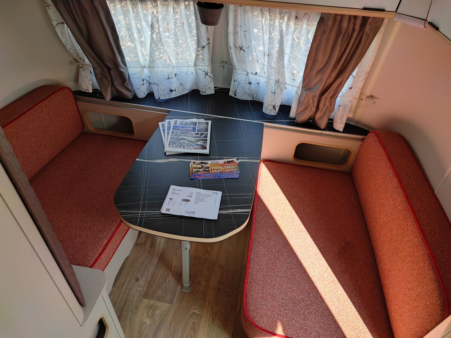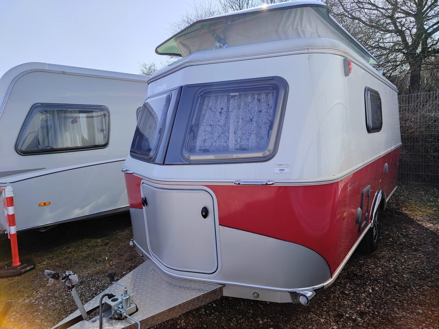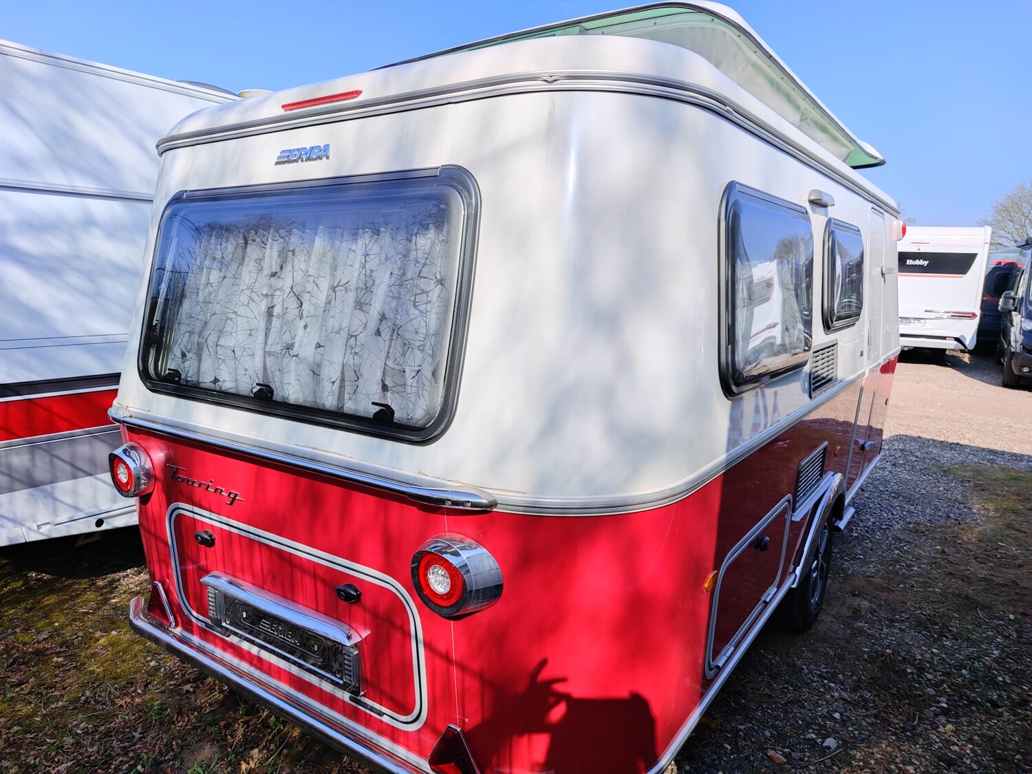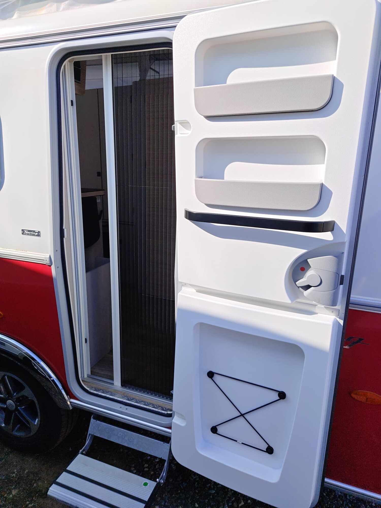 - Tango Red Edition (Seitenwände, Bug und Heck in Glattblech, Farbe White Tango Red, Stoffkombination Tulsa für Ausstattungslinie Urban, Möbeldekor Tindari, Chrompaket mit Außenanbauteilen in Chrom und Radlaufblende sowie Rückleuchten in Retrodesign, Leichtmetallfelgen ERIBA 5-Stern-Doppelspeiche, anthrazit, Steinschlagschutzblech, Bumper aus Edelstahl, Ambientelicht XL mit indirektem Licht oberhalb der Dachstauschränke und zwei zusätzliche ERIBA Multifunktions-Akkuleuchten, 2 Kissen mit Bezug)