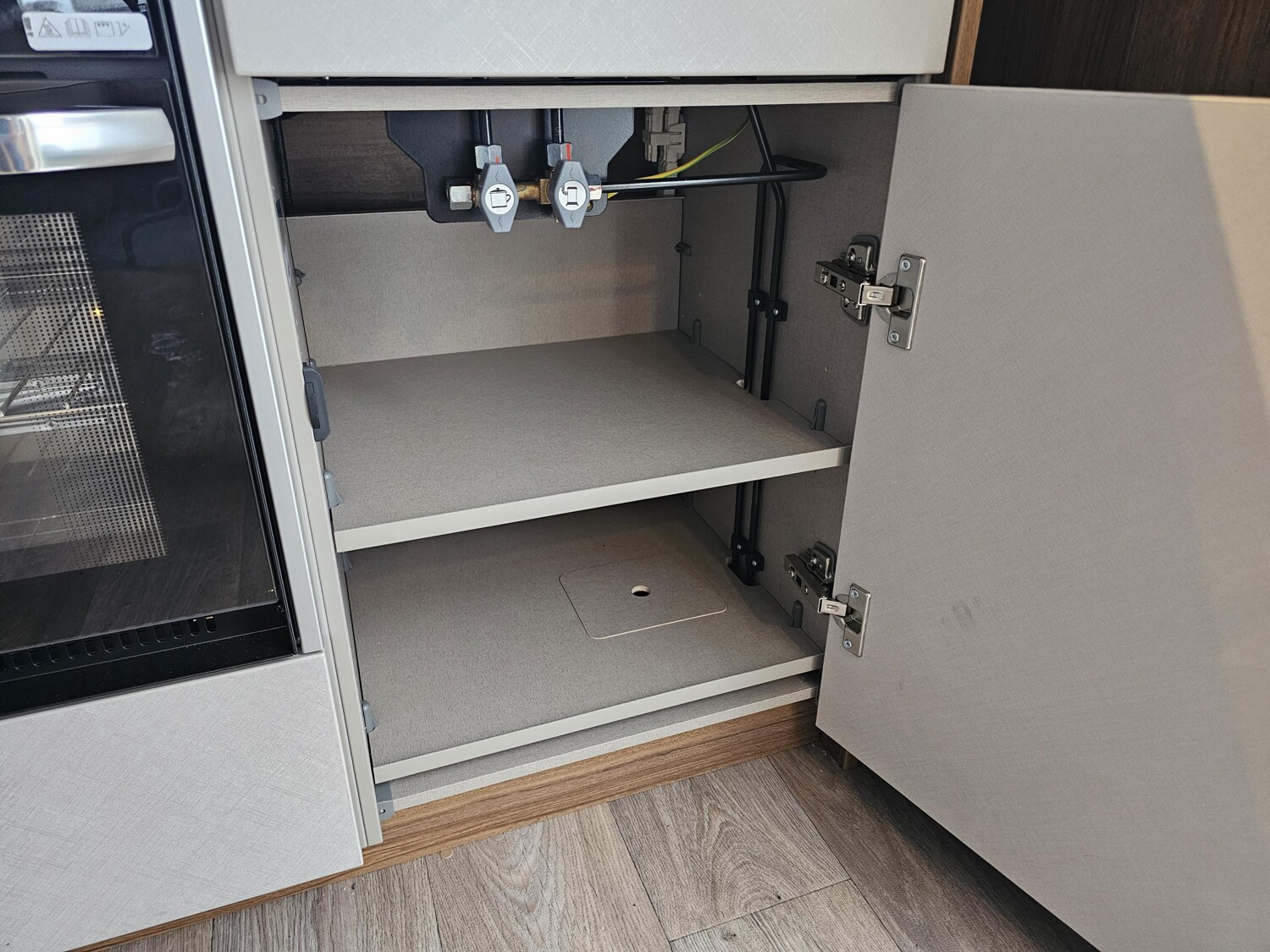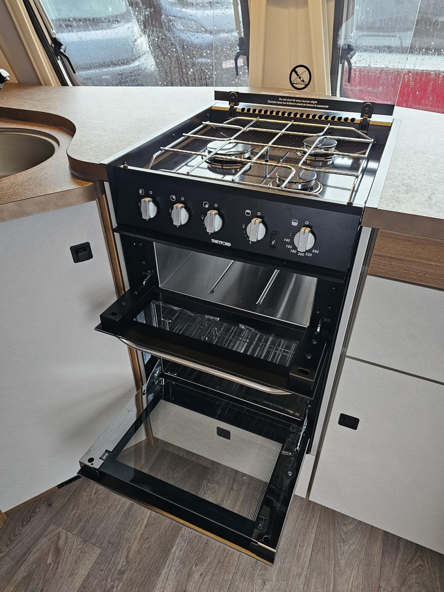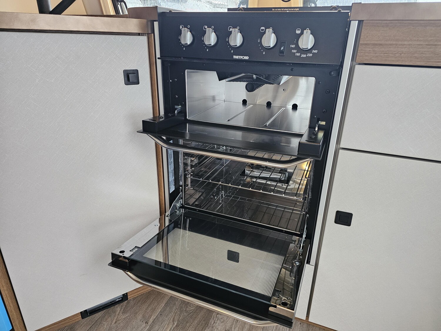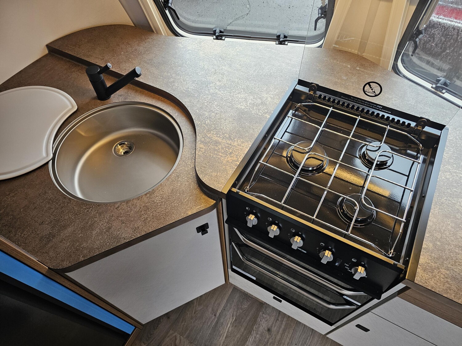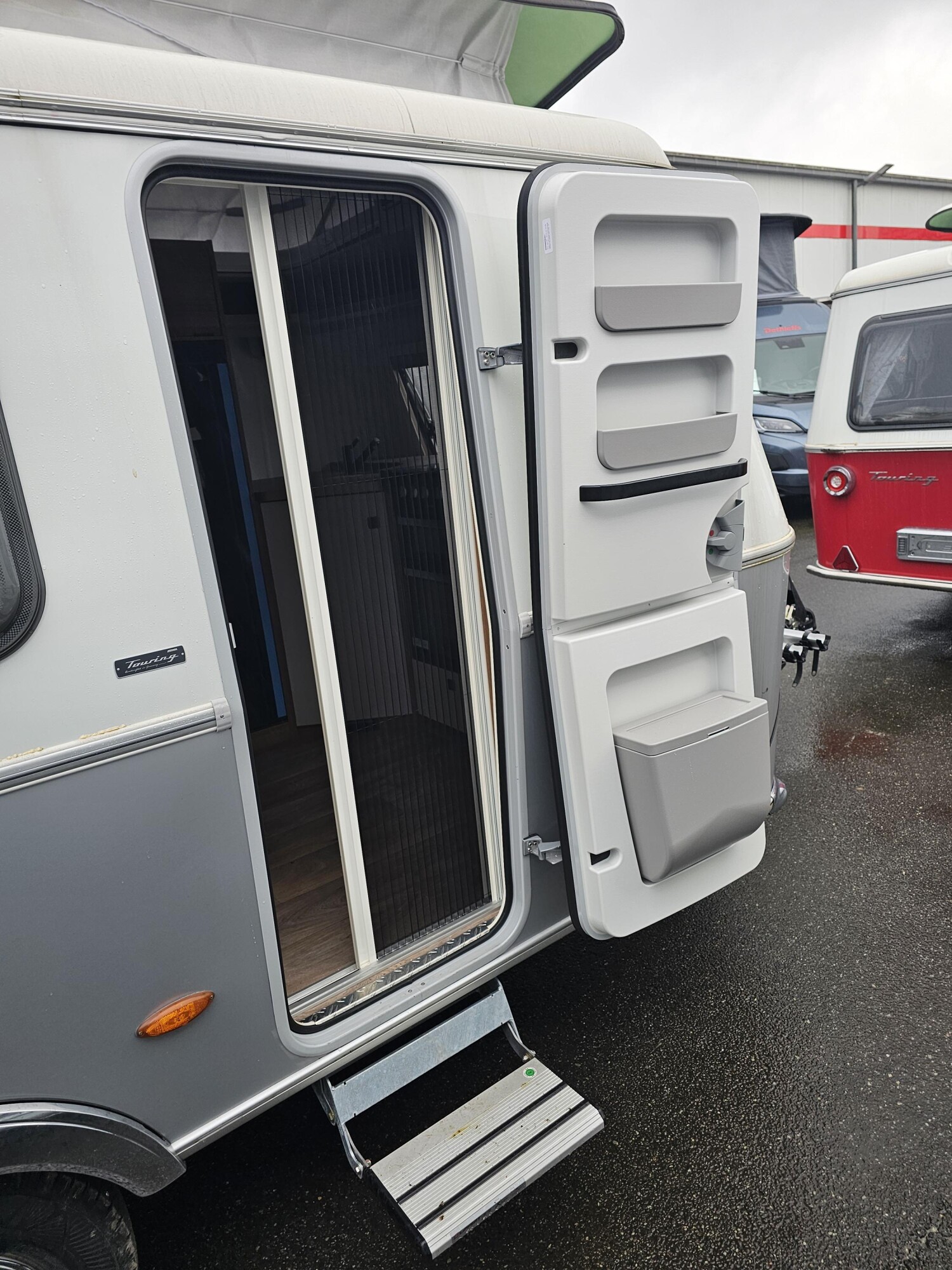 - Komfort-Paket (Fliegenschutz-Rolltür (gesamte Türhöhe), bedienfreundlich durch seitliche Führung, Komfort-Plissee-Rollos, Steckdosenpaket (2 x 230 V Steckdosen und 1 x USB-Doppelsteckdose), Abfalleimer in Eingangstür integriert, Spülenabdeckung mit Schneidebrett für Edelstahlspüle, Zusätzlicher Vergrößerungsspiegel mit Magnethalterung)