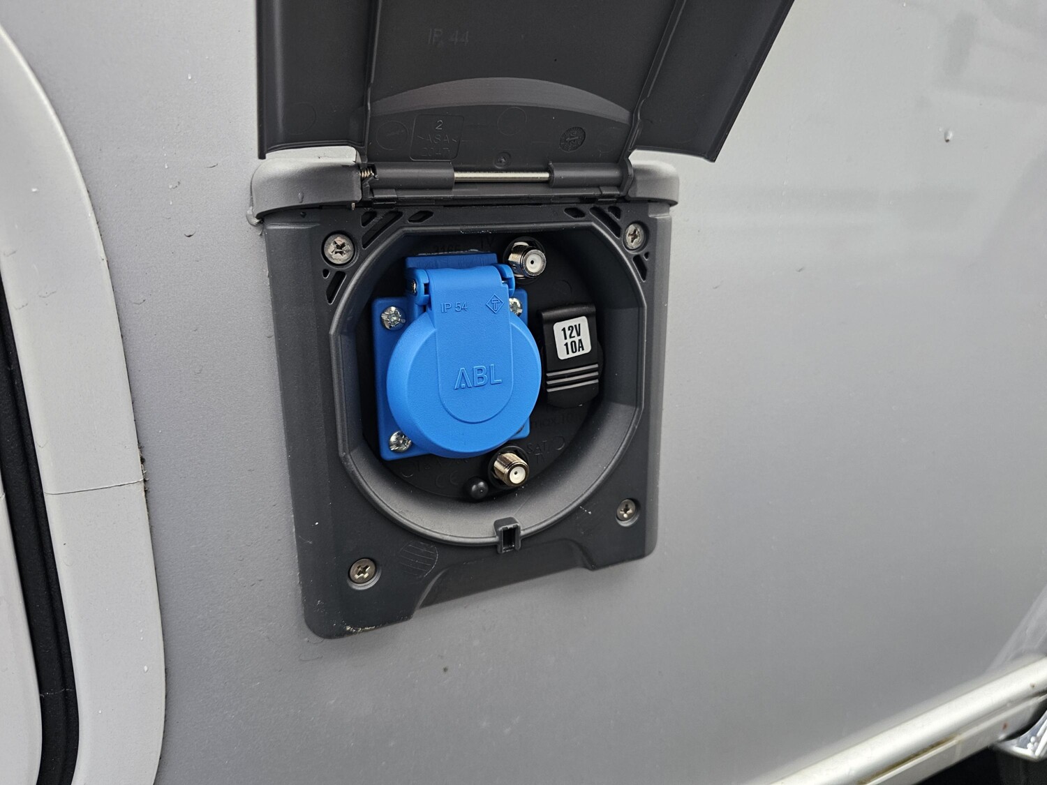 - Universal-Vorzeltsteckdose (230 V, 12 V, TV)