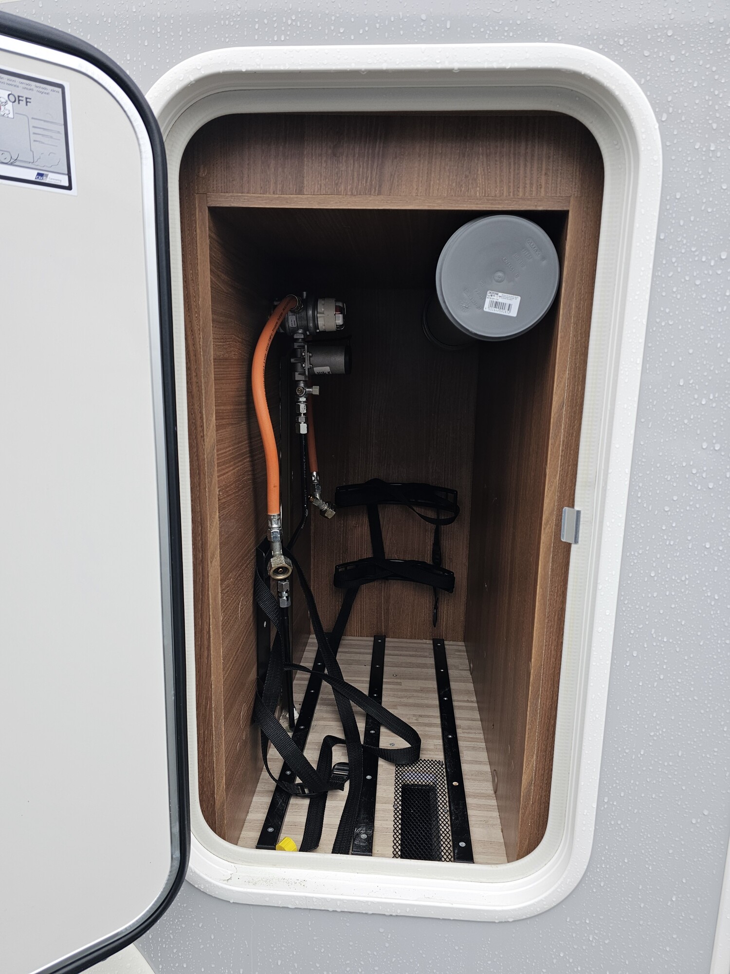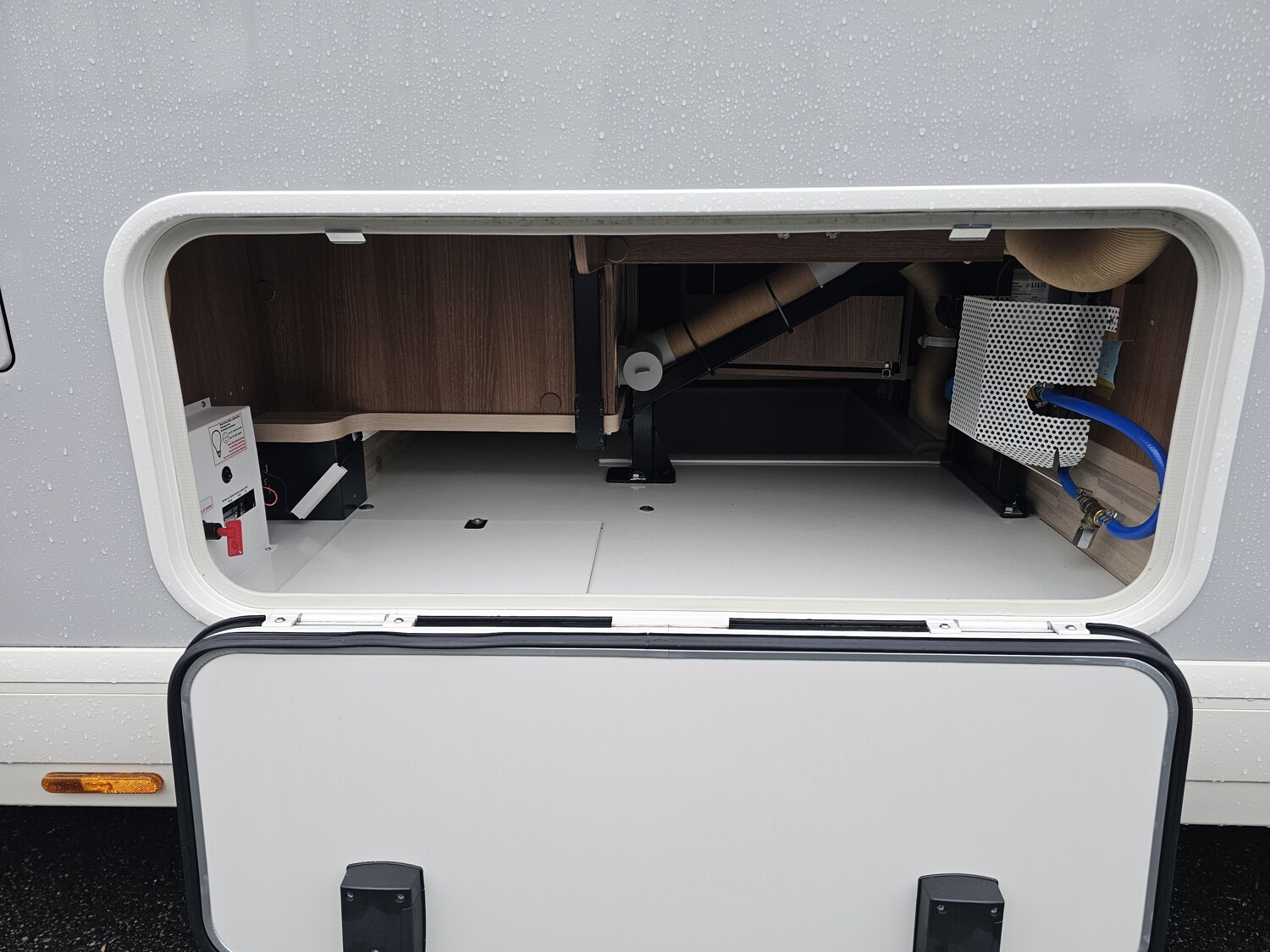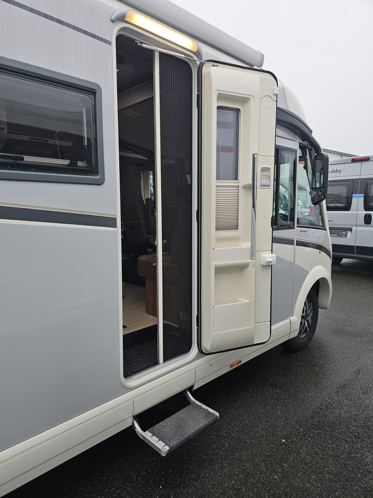 - Aufbautür mit einem Fenster, einer elektrischen Trittstufe und einem Fliegenschutz