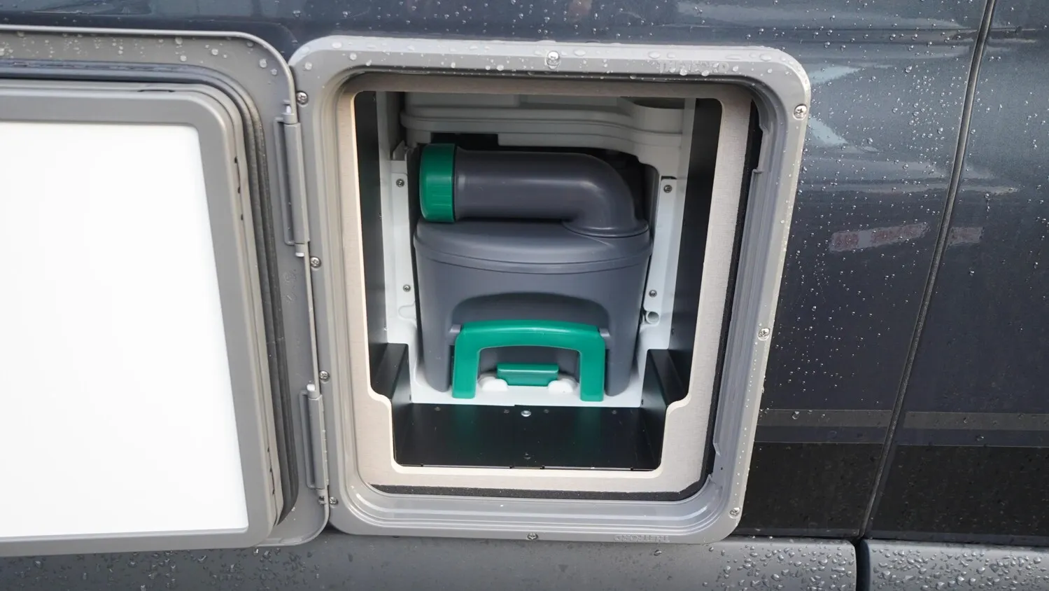 - Ausstellfenster im Heck in Fahrtrichtung links inkl. Verdunkelungsrollo und Mückenschutz