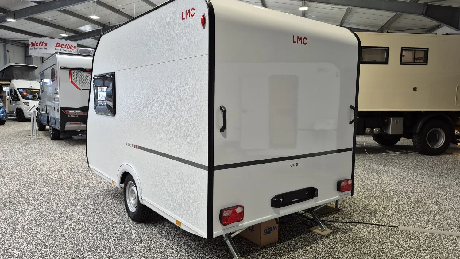 - Der e:dero ist der kompakte Wohnwagen für den Urlaub. Grundriss 350 D misst 378 cm in der Länge und bleibt mit einem Gesamtgewicht unter 750 kg, sodass er ohne Anhängerführerschein gezogen werden kann.