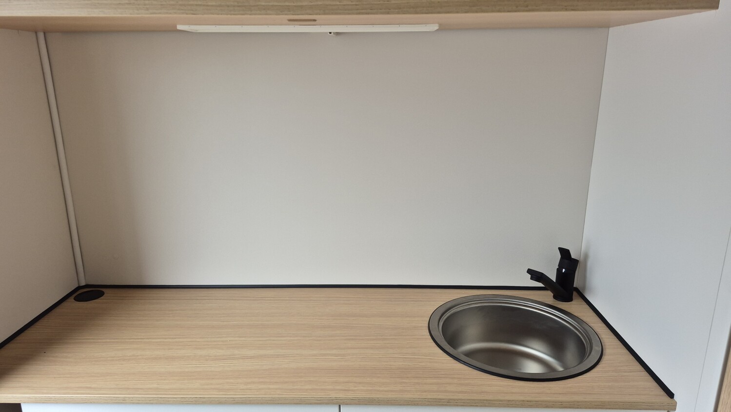 - Minimalismus pur: Im e:dero gibt es kein Bad und keine große Küche, stattdessen ein Spülbecken, eine Arbeitsplatte und viel Stauraum.
