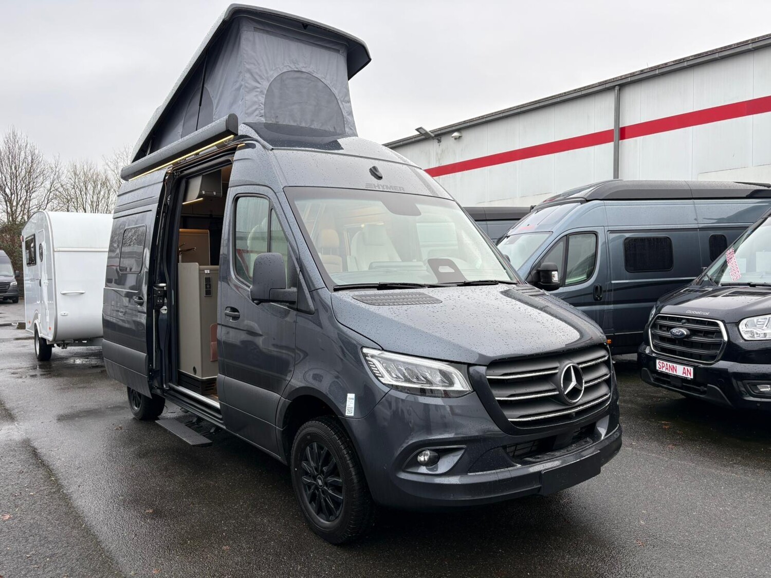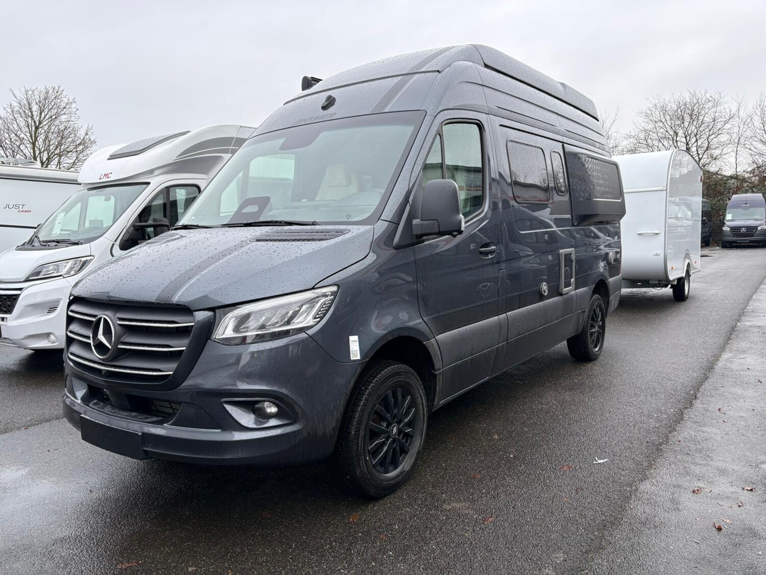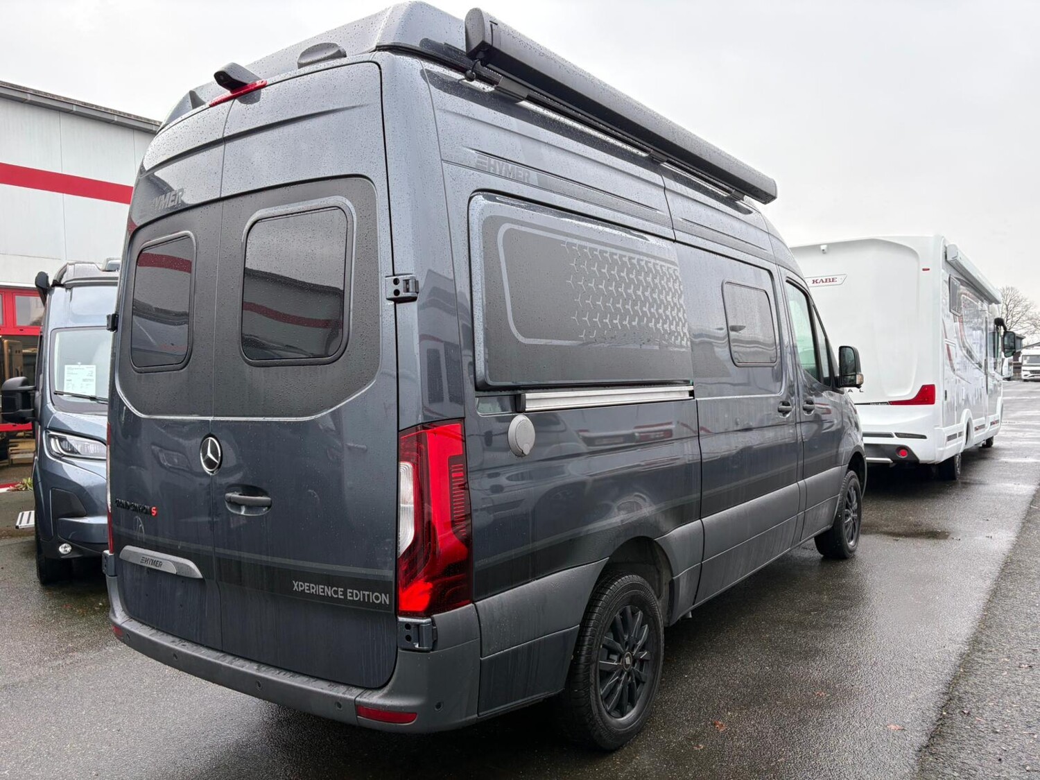 - Mercedes-Benz Sprinter 3,5 t - 417 CDI - 125 KW/170 PS - Euro VI-E, Markise (anthrazit) mit dimmbarer LED-Beleuchtung und Adapter, 325 x 250 cm, Metallic Tenoritgrau, Automatikgetriebe 9G-TRONIC inkl. Hold-Funktion, Designabklebung Xperience, Kühlergrill Chrom, Nebelscheinwerfer mit Abbiegelicht, Stoßfänger und Kühlergrillrahmen in Wagenfarbe lackiert,16" Leichtmetallräder (schwarz matt) mit Ganzjahresbereifung, Lederlenkrad (bei Automatikgetriebe), Aktiver Abstands-Assistent DISTRONIC PLUS inkl. Lenkrad-Multifunktionstasten, Verkehrszeichen-Assistent, Wohnwelt "HOME" (2 Kissen und Stofftasche), Spannbettlaken nach Maß für Heckbetten individuell an Matratzen angepasst, Ambient-Light-System: Mehr-Ebenen Lichtsystem mit dynamischer und individueller Steuerung der Beleuchtung (inkl. Lichttemperatur) sowie stimmungsvoller Sockelbeleuchtung, Einlegeboden mit Korkoberfläche, HYMER Connect Sensoren-Paket inkl. 1x Gasfüllstandssensor, 1x Temperatursensor und 2x Kontaktsensor, 5G-WLAN-Router, mit Außenantenne, für eigenes Netzwerk mit hoher Reichweite (SIM-Karte erforderlich, nicht im Preis beinhaltet), MBUX 10,25" Multimediasystem mit Rückfahrkamera, Sprachsteuerung und Touchscreen inkl. Navigation & Smartphone-Integration