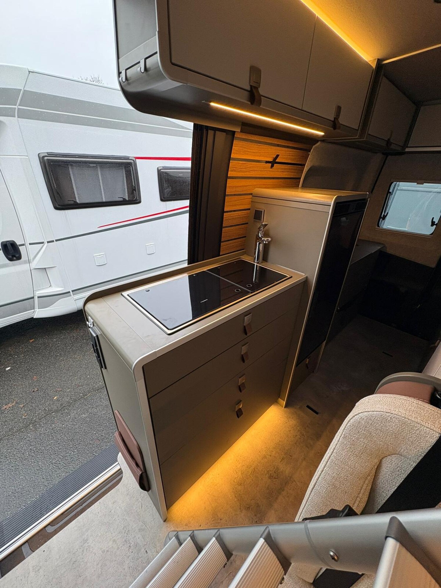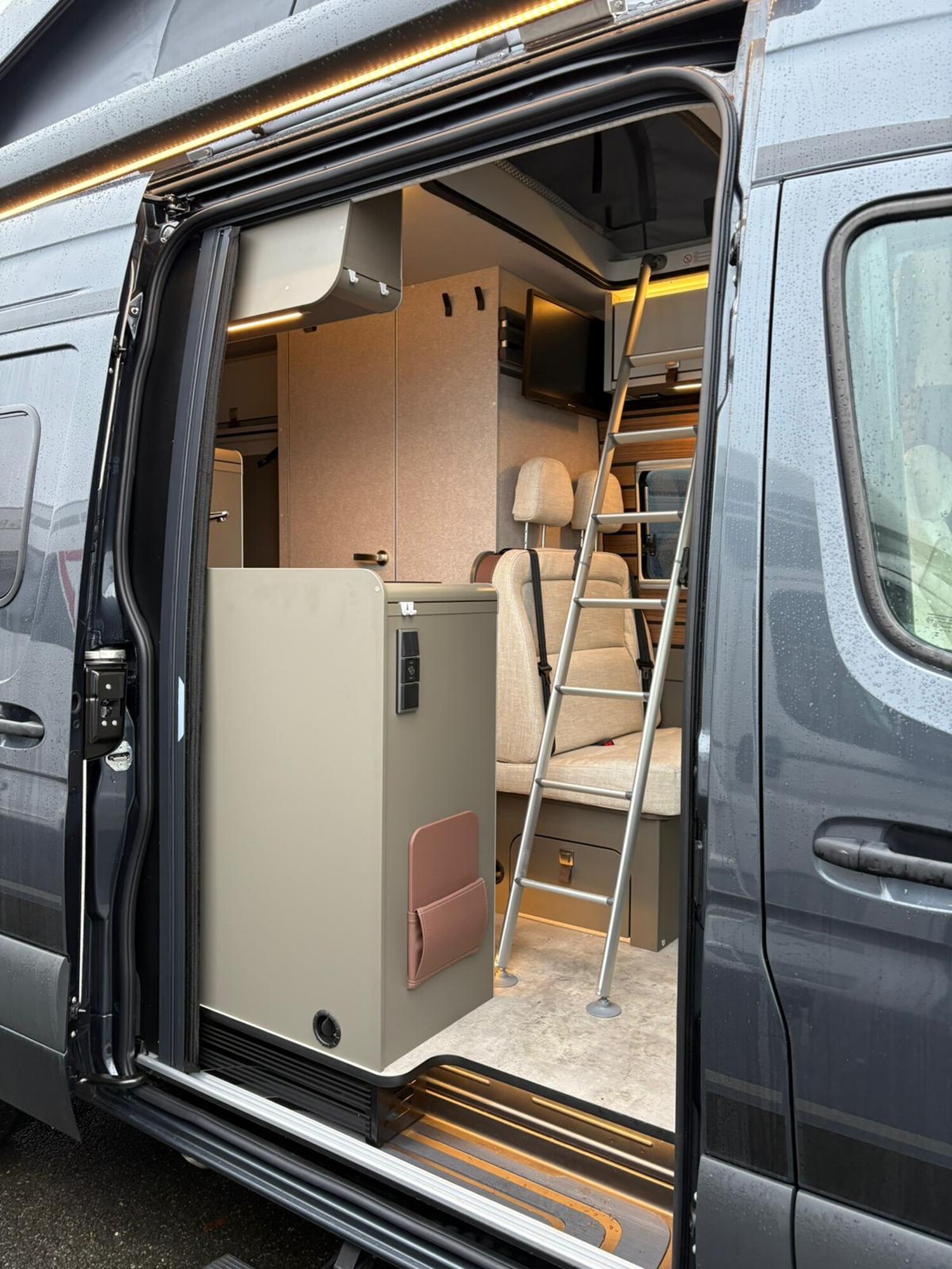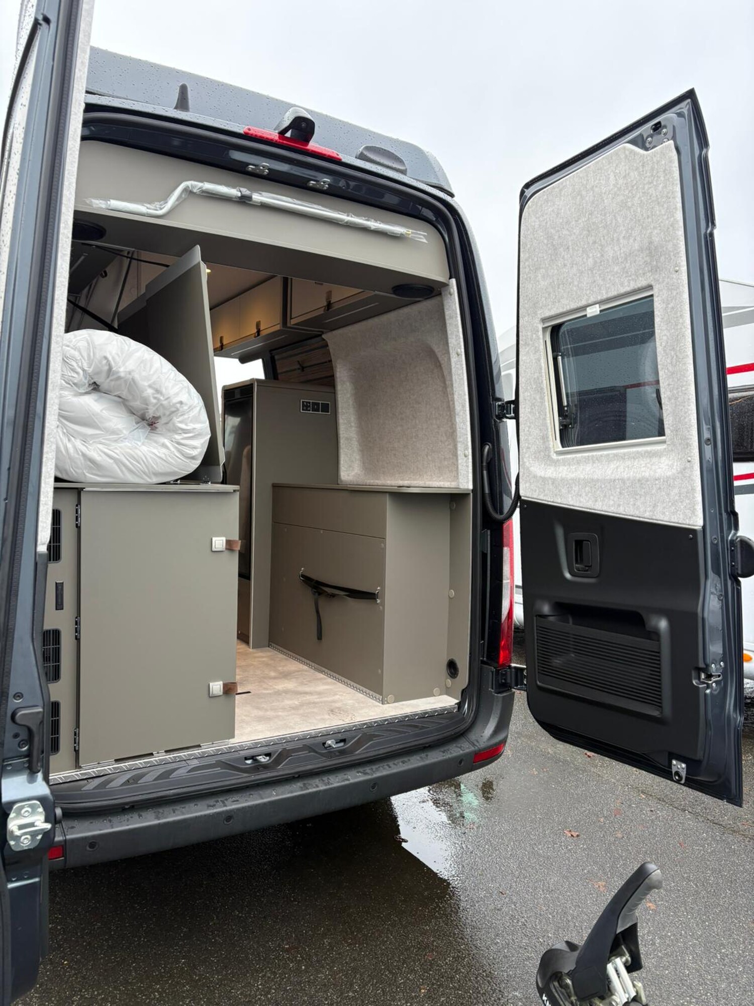 - Mercedes-Benz Sprinter 3,5 t - 417 CDI - 125 KW/170 PS - Euro VI-E, Markise (anthrazit) mit dimmbarer LED-Beleuchtung und Adapter, 325 x 250 cm, Metallic Tenoritgrau, Automatikgetriebe 9G-TRONIC inkl. Hold-Funktion, Designabklebung Xperience, Kühlergrill Chrom, Nebelscheinwerfer mit Abbiegelicht, Stoßfänger und Kühlergrillrahmen in Wagenfarbe lackiert,16" Leichtmetallräder (schwarz matt) mit Ganzjahresbereifung, Lederlenkrad (bei Automatikgetriebe), Aktiver Abstands-Assistent DISTRONIC PLUS inkl. Lenkrad-Multifunktionstasten, Verkehrszeichen-Assistent, Wohnwelt "HOME" (2 Kissen und Stofftasche), Spannbettlaken nach Maß für Heckbetten individuell an Matratzen angepasst, Ambient-Light-System: Mehr-Ebenen Lichtsystem mit dynamischer und individueller Steuerung der Beleuchtung (inkl. Lichttemperatur) sowie stimmungsvoller Sockelbeleuchtung, Einlegeboden mit Korkoberfläche, HYMER Connect Sensoren-Paket inkl. 1x Gasfüllstandssensor, 1x Temperatursensor und 2x Kontaktsensor, 5G-WLAN-Router, mit Außenantenne, für eigenes Netzwerk mit hoher Reichweite (SIM-Karte erforderlich, nicht im Preis beinhaltet), MBUX 10,25" Multimediasystem mit Rückfahrkamera, Sprachsteuerung und Touchscreen inkl. Navigation & Smartphone-Integration