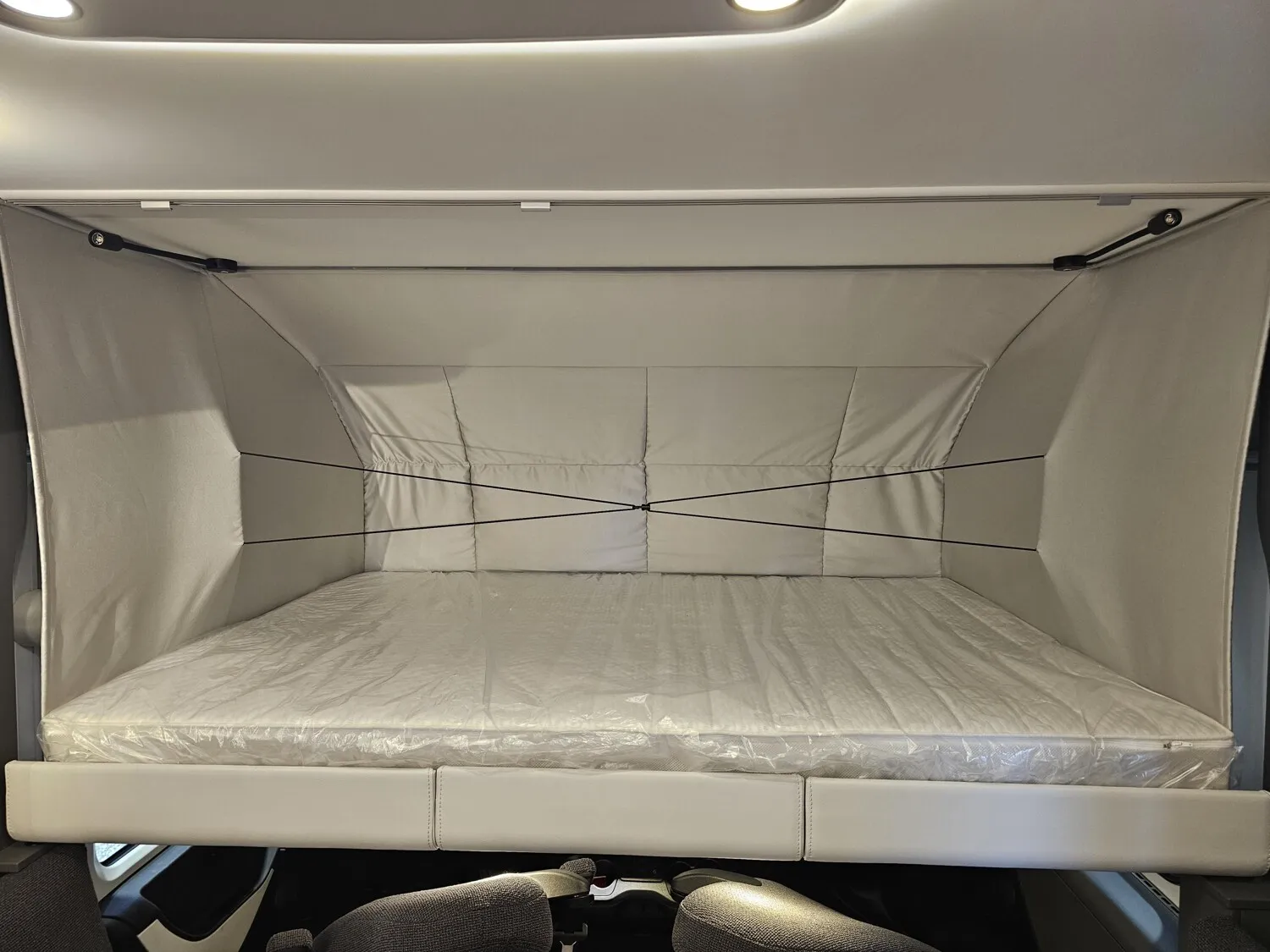 - Wohnkomfort-Paket (Filzverkleidung in Heckgarage, Spannbettlaken nach Maß für Heckbetten individuell an Matratzen angepasst, 2 Kissen mit Bezug, Ambient-Light-System: Mehr-Ebenen Lichtsystem mit dynamischer und individueller Steuerung der Beleuchtung (inkl. Lichttemperatur) sowie stimmungsvoller Sockelbeleuchtung, 4 x 230 V / 2 x Doppel-USB Zusatzsteckdosen)