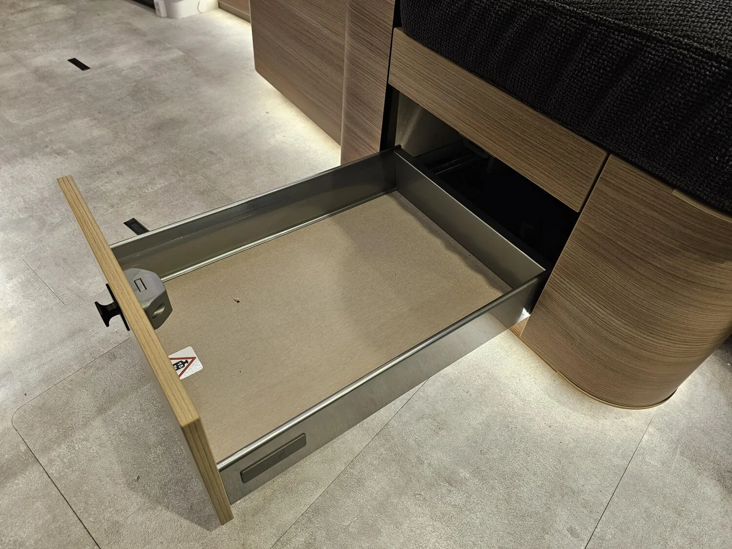- Schublade und Einlegewanne als Stauraum in der Sitzgruppe