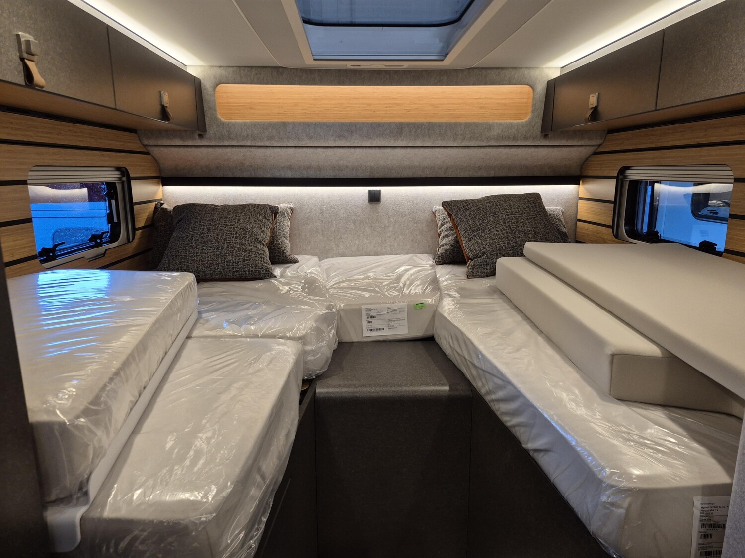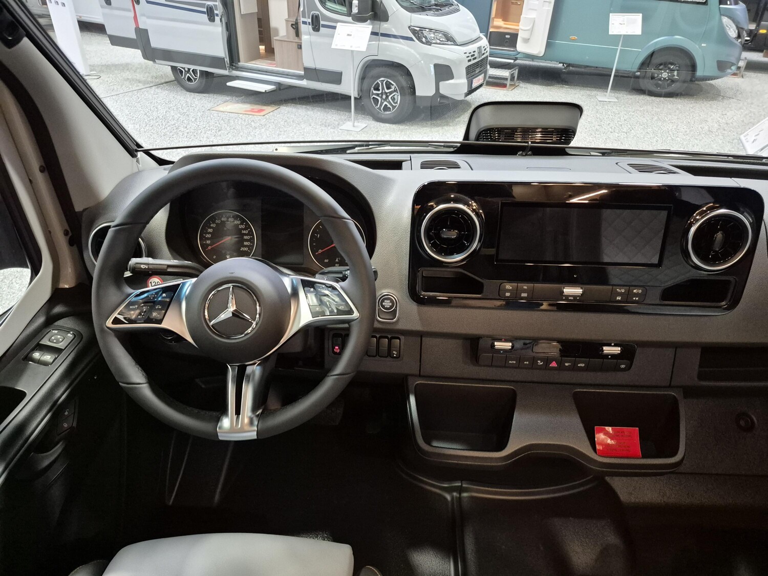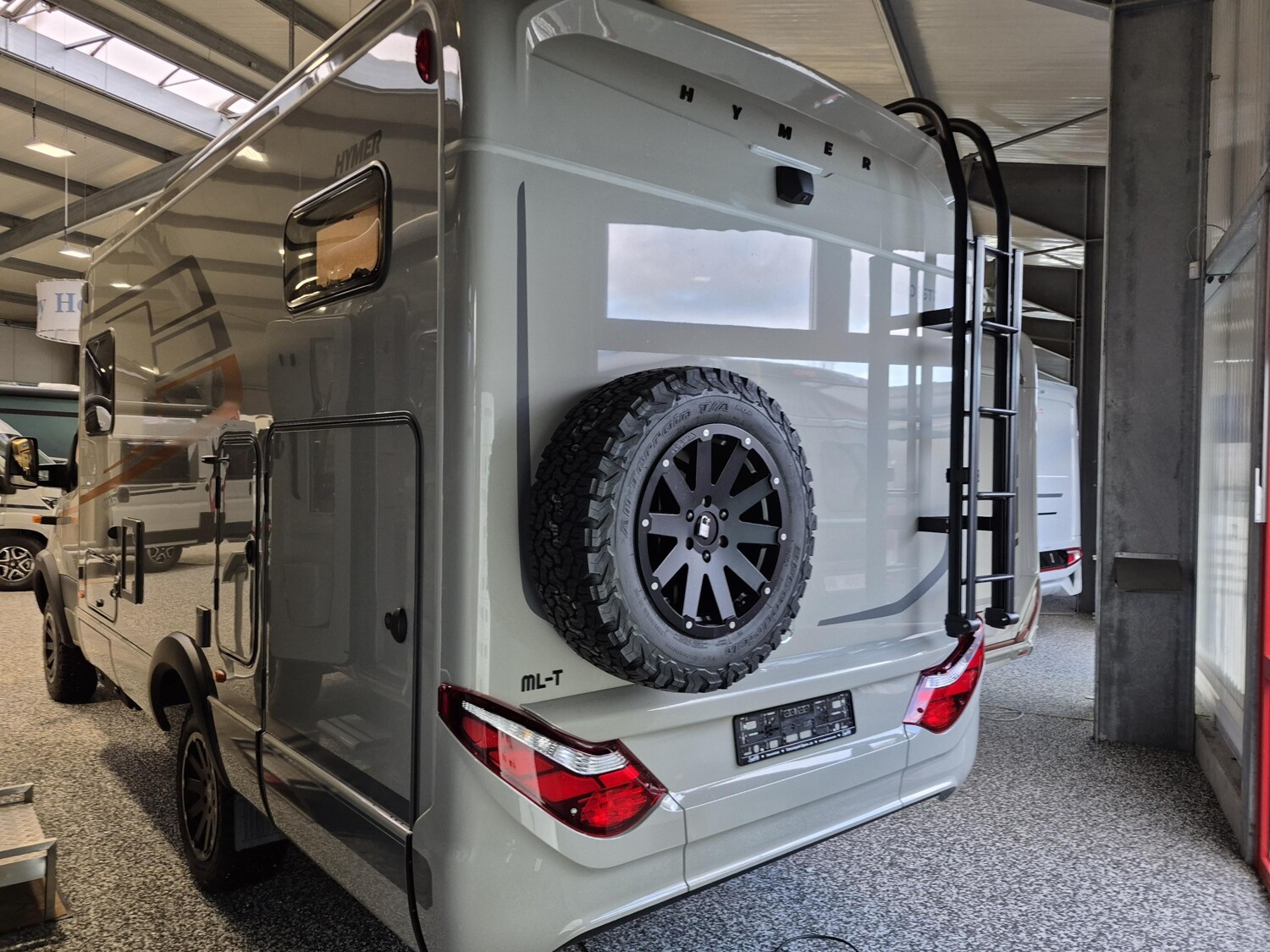 - ML-T 580 CrossTrail Serienausstattung 2026 (Mercedes-Benz Sprinter 4,1 t - 419 CDI - 140 KW/190 PS - Euro VI-E, Gewichtsvariante 4.100 kg, Außenfarbe Fahrerhaus Steingrau, Pastell Steingrau, Allradantrieb (permanent) mit Torque-on-Demand, Automatikgetriebe 9G-TRONIC inkl. Hold-Funktion (x19 CDI), LED-High-Performance-Scheinwerfer, Nebelscheinwerfer mit Abbiegelicht, Stoßfänger mit Raptorlack beschichtet, Windschutzscheibe beheizbar, 18" Leichtmetallräder Delta Hanma (schwarz) mit Stollenbereifung (All-Terrain), 18 Delta Reserverad inkl. Stollenbereifung (All-Terrain) und Halterung außen an der Heckwand, Ablage für Smartphones inkl. wireless charging Funktion und Ladestandsanzeige, Ladepaket Instrumententafel mit 2 x USB-C Stecker 5V / 1x 12V-Steckdose, Navigation & Smartphone-Integration für MBUX-System, Lederlenkrad (bei Automatikgetriebe), Vollautomatische Klimaanlage THERMOTRONIC, Downhill Speed Regulation (Offroad-Betrieb), Verkehrszeichen-Assistent, Aktiver Abstands-Assistent DISTRONIC PLUS inkl. Lenkrad-Multifunktionstasten, Fernlicht-Assistent, Markise (schwarz) inkl. dimmbarer LED-Beleuchtung, 400 x 250 cm, Dachreling mit Heckleiter ohne geriffelter Aluminium-Dachplatte, 44" LED-Lightbar über dem Fahrerhaus, Unterfahrschutz für Motor und Wassertank, Radlaufverbreiterung vorne, Designbeklebung CrossTrail, Komfort-Eingangstür mit Fenster, Verdunkelungsrollo, integriertem Mülleimer und 2-fach Verriegelung Riffelblechboden und Filzverkleidung in Heckgarage, Außendusche in der Garage, Werkzeug-Set (Klappspaten, Axt) im Heckstauraum, Komfort L-Sitzgruppe mit Loungepolstern, längs-/quer verschiebbarem Tisch und 2 integrierten 3-Punkt-Gurten, Bettenbau für Komfort L-Sitzgruppe inkl. Zusatzpolster und absenkbarem Tisch unter Einbeziehung des Fahrersitzes, Schlafsystem mit Tellerfederrost für Heckbett(en), Spannbettlaken nach Maß für Heckbetten individuell an Matratzen angepasst, Zusatzpolster zwischen den Längseinzelbetten inkl. integrierter Komfortaufstieg, 4 Kissen mit Bezug, Einlegeboden in der Dusche für ebenen Laufboden, Zweite Toilettenkassette inkl. Halterung in Außenstauraum, Ambient-Light-System: Mehr-Ebenen Lichtsystem mit dynamischer und individueller Steuerung der Beleuchtung (inkl. Lichttemperatur) sowie stimmungsvoller Sockelbeleuchtung, Lichtpaket (Multifunktionale Pendelleuchte sowie eine Ambiente-Leseleuchte für die Multifunktionswände), 1.800 W Elektroheizstab (für 6 kW Diesel-Warmluftheizung), HYMER-Smart-Battery-System 2.0 - Zusätzlich 3 x 80 Ah LFP (Gesamtleistung 320 Ah), 5G-WLAN-Router mit Außenantenne und Dual-SIM-Slot (SIM-Karte nicht inbegriffen), Solaranlage 2 x 95 Watt mit Solarladeregler (MPPT) und Anzeige, Wechselrichter 12 V auf 230 V, 1800 Watt mitNetzvorrangschaltung, 3 x 230 V / 1 x 12 V Zusatzsteckdosen, Wasserfilter für Frischwassersystem)