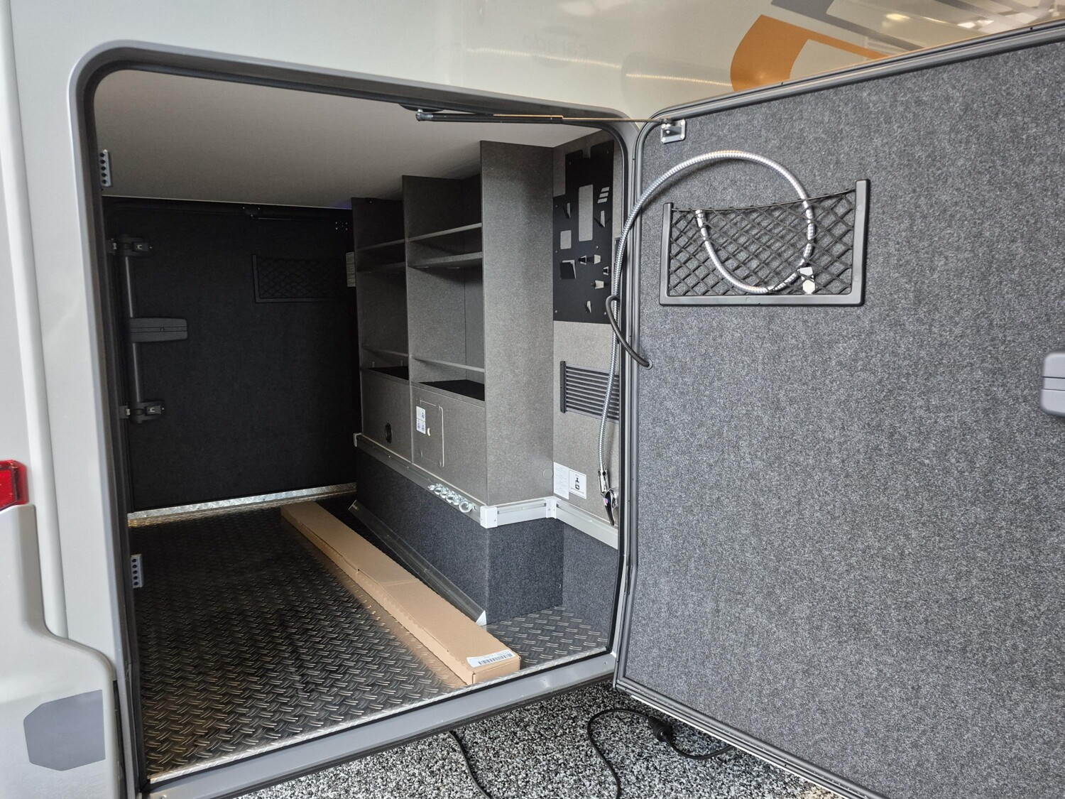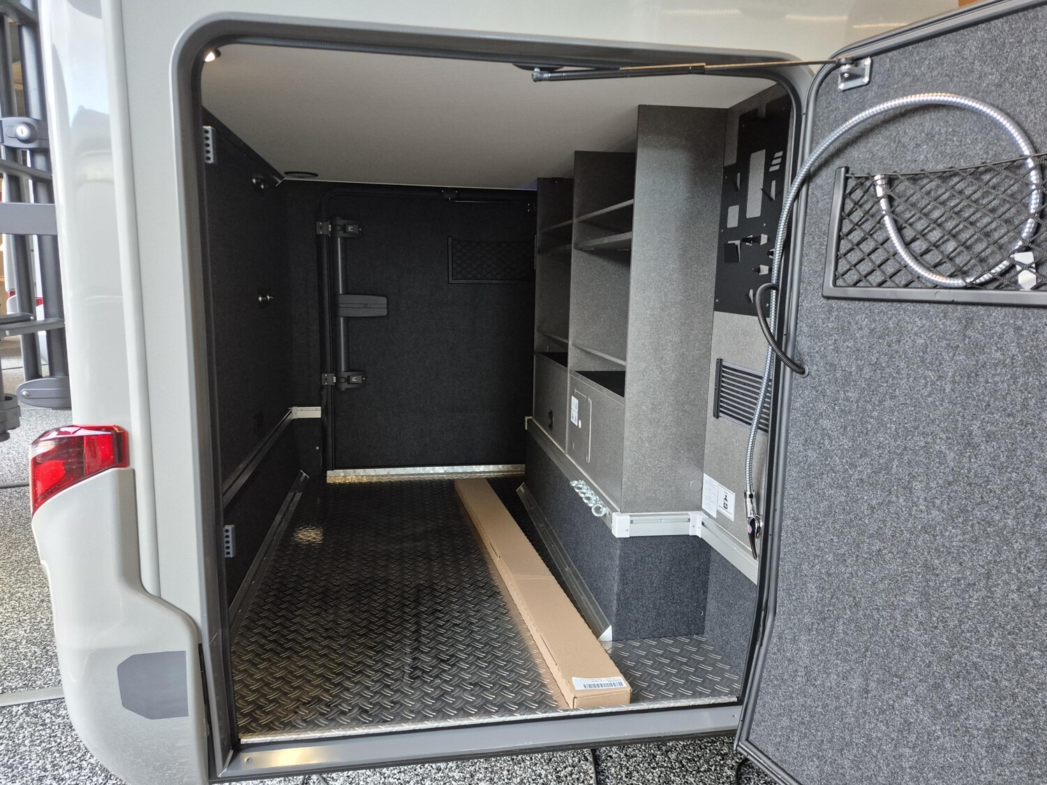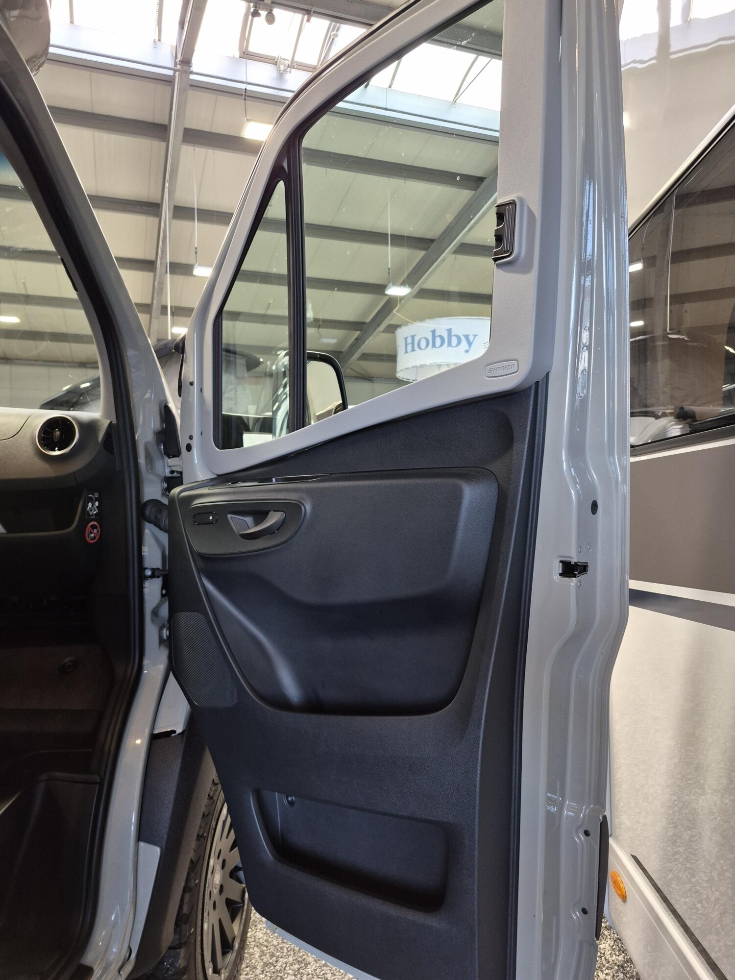 - ML-T 580 CrossTrail Serienausstattung 2026 (Mercedes-Benz Sprinter 4,1 t - 419 CDI - 140 KW/190 PS - Euro VI-E, Gewichtsvariante 4.100 kg, Außenfarbe Fahrerhaus Steingrau, Pastell Steingrau, Allradantrieb (permanent) mit Torque-on-Demand, Automatikgetriebe 9G-TRONIC inkl. Hold-Funktion (x19 CDI), LED-High-Performance-Scheinwerfer, Nebelscheinwerfer mit Abbiegelicht, Stoßfänger mit Raptorlack beschichtet, Windschutzscheibe beheizbar, 18" Leichtmetallräder Delta Hanma (schwarz) mit Stollenbereifung (All-Terrain), 18 Delta Reserverad inkl. Stollenbereifung (All-Terrain) und Halterung außen an der Heckwand, Ablage für Smartphones inkl. wireless charging Funktion und Ladestandsanzeige, Ladepaket Instrumententafel mit 2 x USB-C Stecker 5V / 1x 12V-Steckdose, Navigation & Smartphone-Integration für MBUX-System, Lederlenkrad (bei Automatikgetriebe), Vollautomatische Klimaanlage THERMOTRONIC, Downhill Speed Regulation (Offroad-Betrieb), Verkehrszeichen-Assistent, Aktiver Abstands-Assistent DISTRONIC PLUS inkl. Lenkrad-Multifunktionstasten, Fernlicht-Assistent, Markise (schwarz) inkl. dimmbarer LED-Beleuchtung, 400 x 250 cm, Dachreling mit Heckleiter ohne geriffelter Aluminium-Dachplatte, 44" LED-Lightbar über dem Fahrerhaus, Unterfahrschutz für Motor und Wassertank, Radlaufverbreiterung vorne, Designbeklebung CrossTrail, Komfort-Eingangstür mit Fenster, Verdunkelungsrollo, integriertem Mülleimer und 2-fach Verriegelung Riffelblechboden und Filzverkleidung in Heckgarage, Außendusche in der Garage, Werkzeug-Set (Klappspaten, Axt) im Heckstauraum, Komfort L-Sitzgruppe mit Loungepolstern, längs-/quer verschiebbarem Tisch und 2 integrierten 3-Punkt-Gurten, Bettenbau für Komfort L-Sitzgruppe inkl. Zusatzpolster und absenkbarem Tisch unter Einbeziehung des Fahrersitzes, Schlafsystem mit Tellerfederrost für Heckbett(en), Spannbettlaken nach Maß für Heckbetten individuell an Matratzen angepasst, Zusatzpolster zwischen den Längseinzelbetten inkl. integrierter Komfortaufstieg, 4 Kissen mit Bezug, Einlegeboden in der Dusche für ebenen Laufboden, Zweite Toilettenkassette inkl. Halterung in Außenstauraum, Ambient-Light-System: Mehr-Ebenen Lichtsystem mit dynamischer und individueller Steuerung der Beleuchtung (inkl. Lichttemperatur) sowie stimmungsvoller Sockelbeleuchtung, Lichtpaket (Multifunktionale Pendelleuchte sowie eine Ambiente-Leseleuchte für die Multifunktionswände), 1.800 W Elektroheizstab (für 6 kW Diesel-Warmluftheizung), HYMER-Smart-Battery-System 2.0 - Zusätzlich 3 x 80 Ah LFP (Gesamtleistung 320 Ah), 5G-WLAN-Router mit Außenantenne und Dual-SIM-Slot (SIM-Karte nicht inbegriffen), Solaranlage 2 x 95 Watt mit Solarladeregler (MPPT) und Anzeige, Wechselrichter 12 V auf 230 V, 1800 Watt mitNetzvorrangschaltung, 3 x 230 V / 1 x 12 V Zusatzsteckdosen, Wasserfilter für Frischwassersystem)
