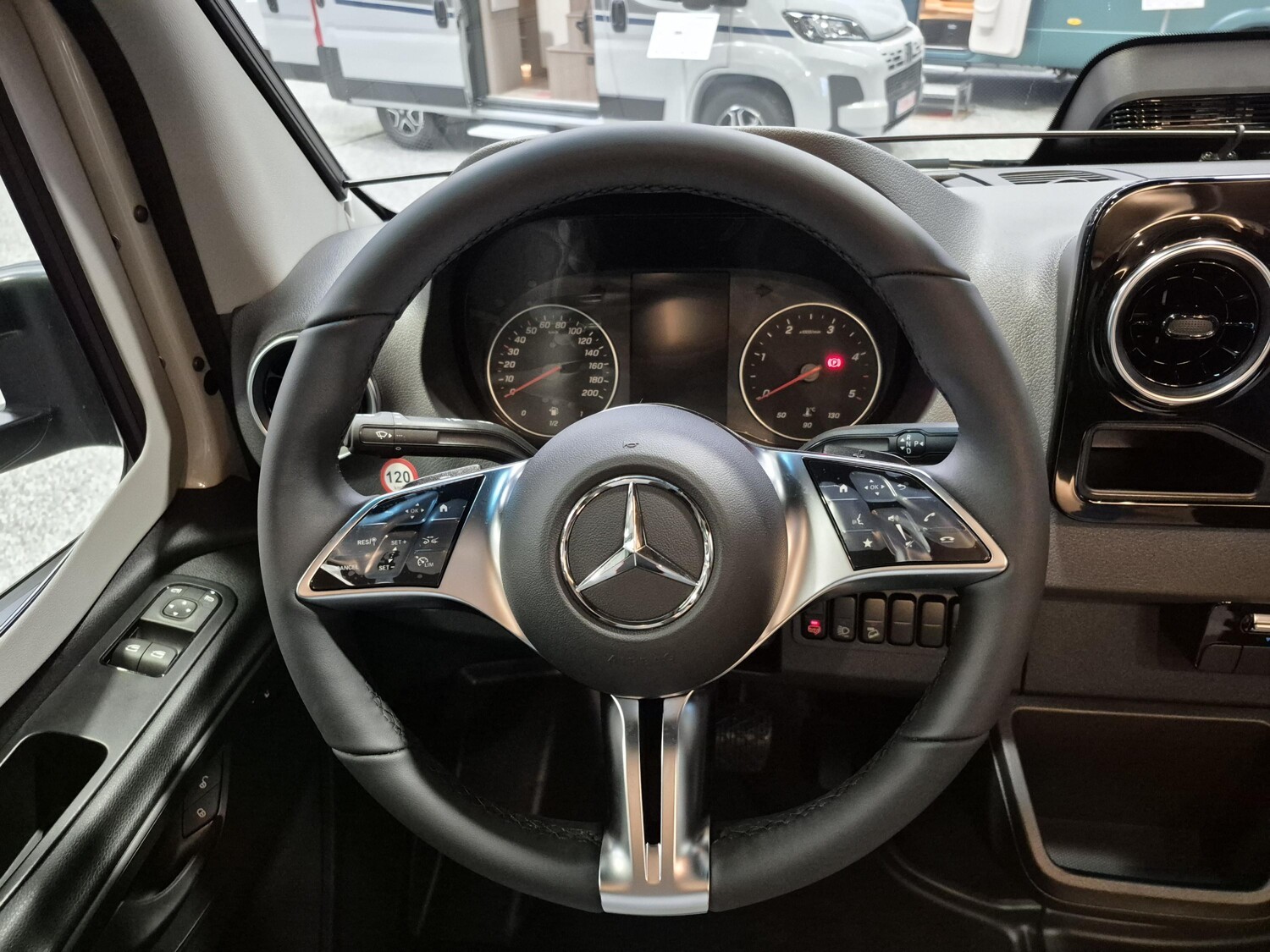 - Winterpaket (Sitzheizung und Lordosenstütze für Mercedes Benz Originalsitze, Warmluft-Zusatzheizung elektrisch, Wet Wiper System (Scheibenwischer mit integ. Spritzdüse), Lenkradheizung, Wärmeisolierendes Fahrerhaus)