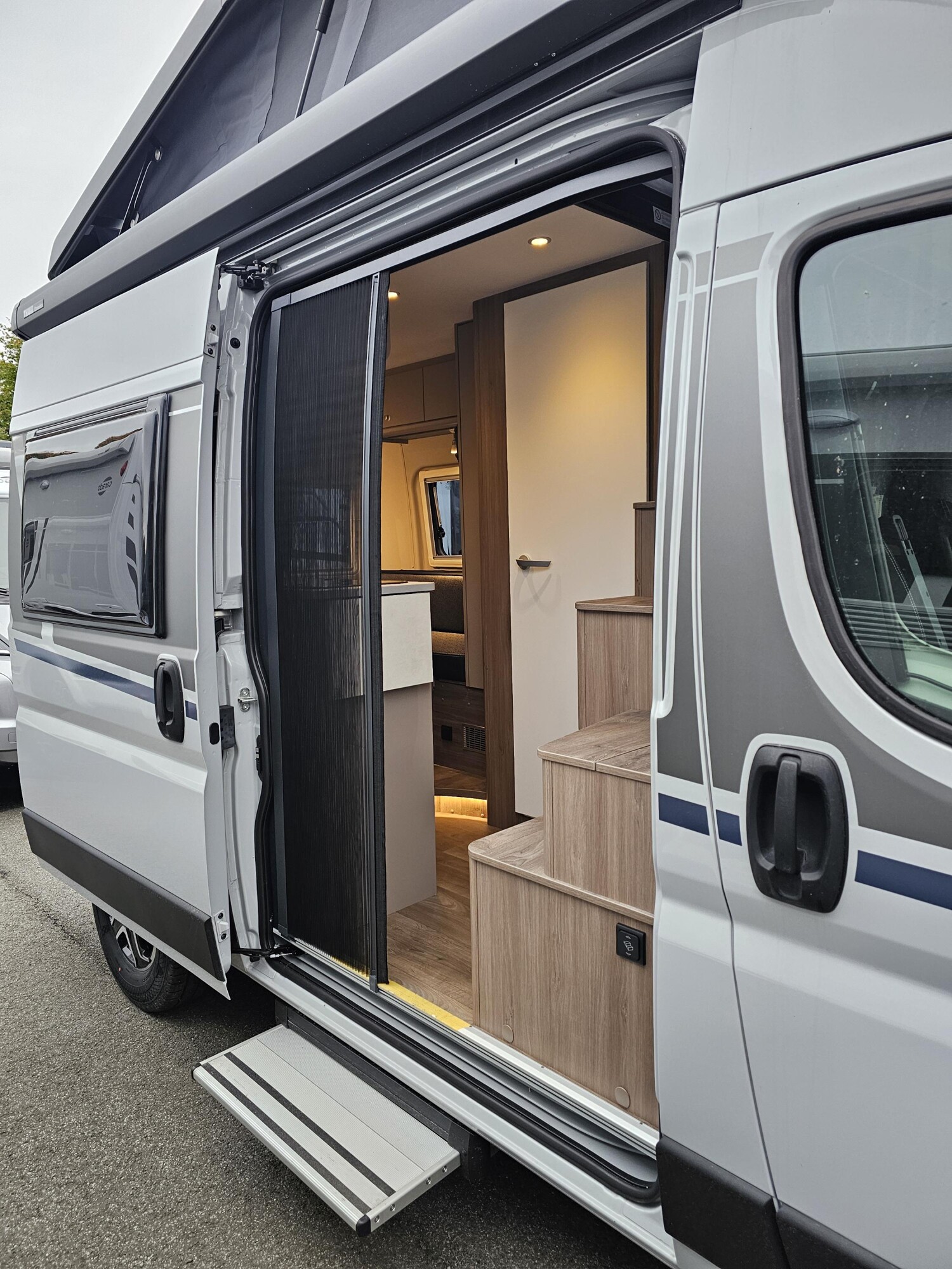 - Pro Paket CV 541 Pro 2026 (Optik Paket 1, Stoßfänger lackiert Skid Plate glänzend Schwarz, Nebelscheinwerfer), Optik Paket 2 (Lenkrad & Schaltknauf in Lederausführung, Armaturentafel mit Applikationen (Techno-Trim), 16 Zoll Alufelgen Bi-Color), Basic Paket (Duschausstattung, Kleiderstange in der Nasszelle, Breite Einstiegsstufe, Fenster im Bad, herausnehmbarer Wäschesack), Dieseltank 90 l, Markise 3,15 m (Schwarz), Beklebung pro))