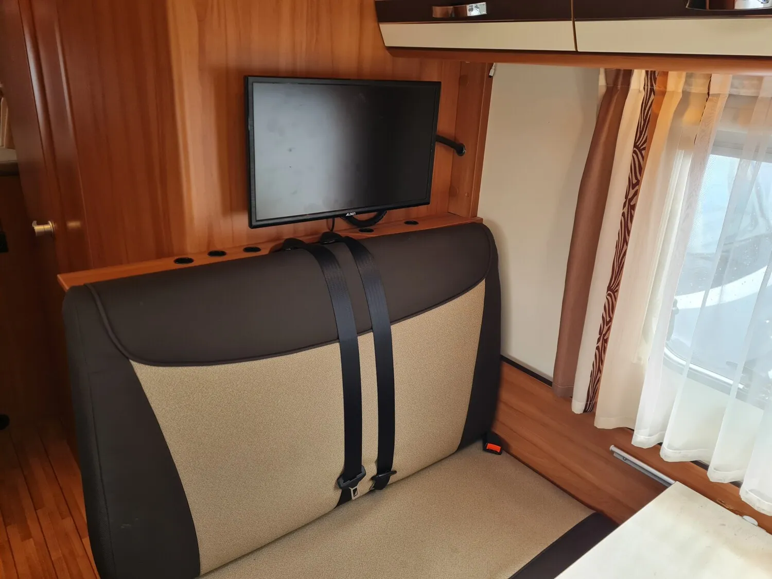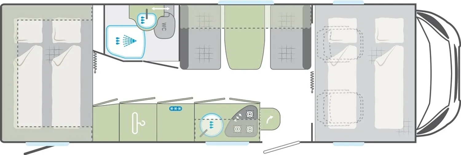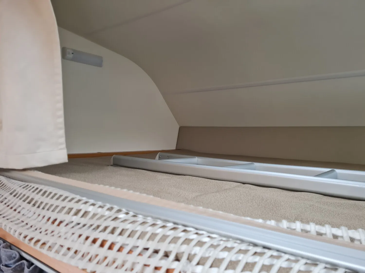 - Doppelbett im Heck mit Leselampen und Dachstauschränken