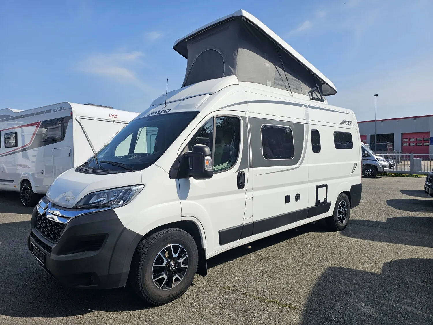 - Aufstelldach in Farbe weiß mit einem Dachfenster