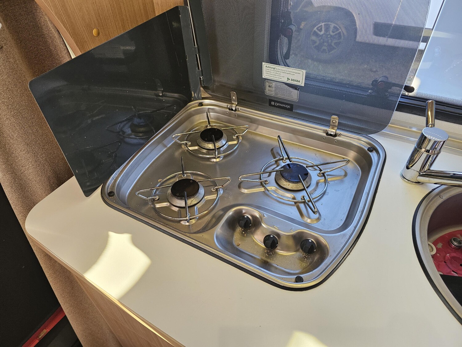 - 3-Flammenkocher und Spüle, großer Thetford Kühlschrank