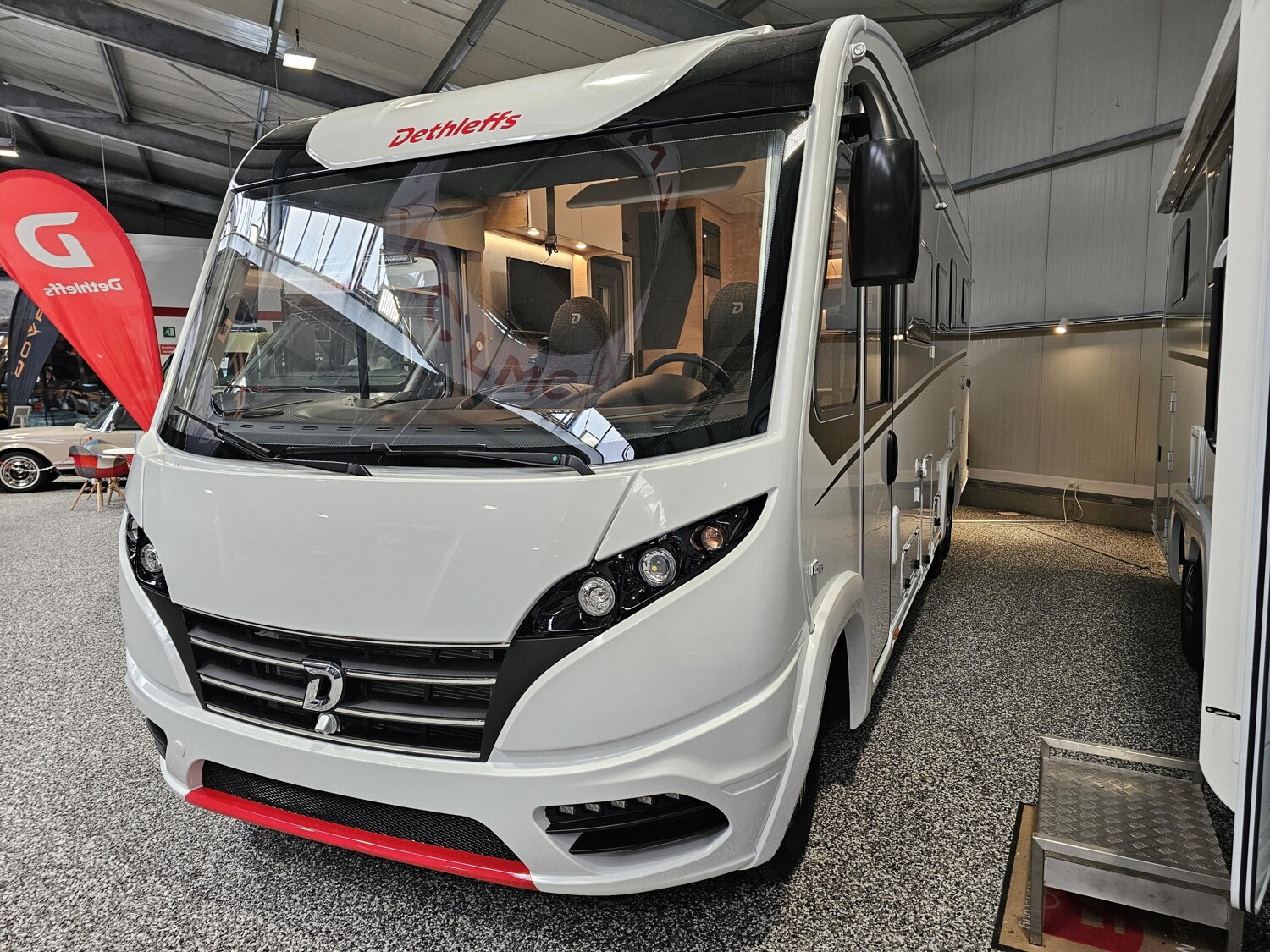 - Serienhighlight XL-I Family (Fiat Ducato Maxi ALKO Tiefrahmen 3-Achser (5.400 kg) MultiJet 180 (2,2 l / 132 kW / 180 PS) Heavy Duty, 8-Gang Wandler-Automatikgetriebe // Fahrerhaus Klimaanlage automatisch, Digitaler Tacho mit 7?-Kombiinstrument und Wireless Phone Charger in der Mittelkonsole // Dethleffs Naviceiver inkl. DAB+, Truck Navigation, Wireless Apple CarPlay und Android Auto // Zweite Rückfahrkamera im Heckleuchtenträger // Lederlenkrad und Schaltknauf mit Ledermanschette // Lenkrad mit Bedienelementen // Reifen M+S Camping // Cassettenmarkise Omnistor 6,0 m (manuell) // Doppelboden teilweise über die gesamte Fahrzeugbreite durchgängig beladbar // Große Heckgarage: zwei Garagentüren/-klappen mit Dreh-/Spannverschluss, Heckabsenkung (250 kg Flächenlast), Anti-Rutsch-Oberfläche, beheizt, Zurrleisten, beleuchtet, 1 x 230 V Steckdose // Wohnraumtür mit Fenster inkl. Verdunkelung und Zentralverriegelung (inkl. Fahrerhaustür) // Bettenbau Sitzgruppe quer // Bettumbau Einzelbetten zu Doppelbett //Isofix Kindersitzbefestigung für 3. und 4. Sitzplatz in Fahrtrichtung // Warmwasser-Teppich für das Fahrerhaus // Warmwasserheizung mit Warmwasserboiler, automatischem Ablassventil, Absperrventil für den Schlafraum und digitalem Bedienelement // Wärmetauscher für Warmwasserheizung // Dethleffs connect - System Control Unit Lite // Frisch- und Abwassertank im Doppelboden (isolierter Bereich) verbaut // Automatische Gasflaschenumschaltung inkl. Crash Sensor und EisEx und vieles mehr!)