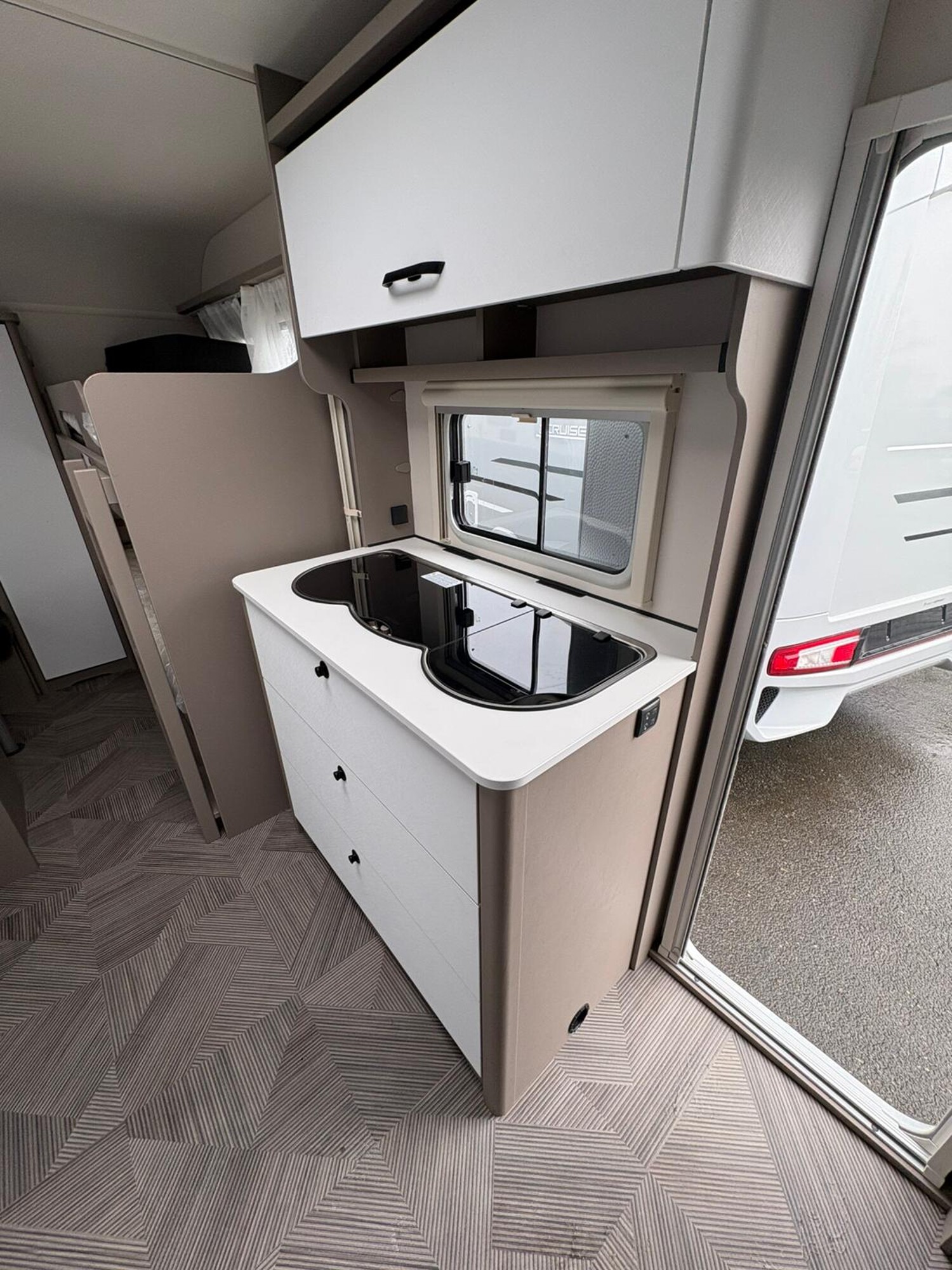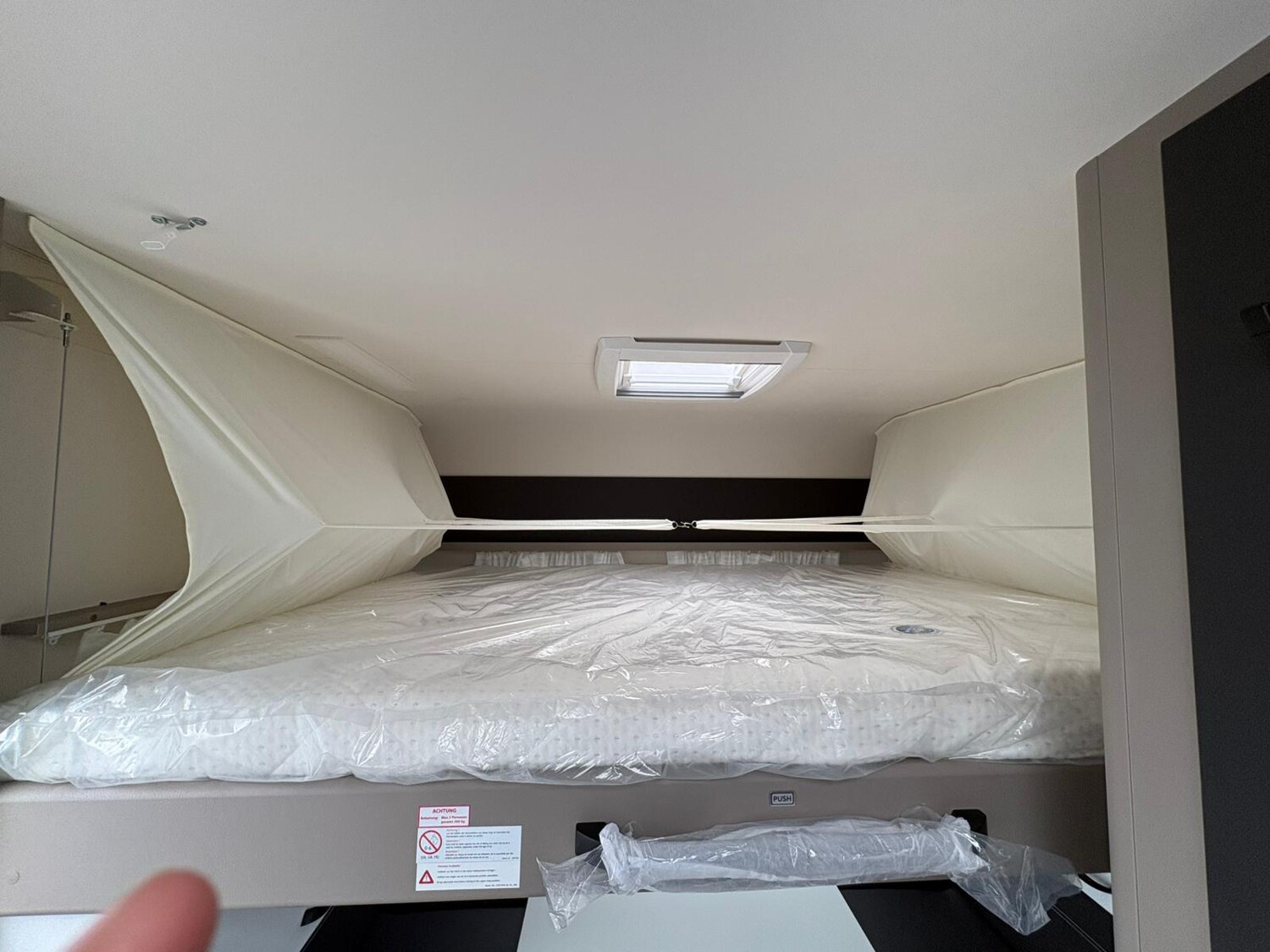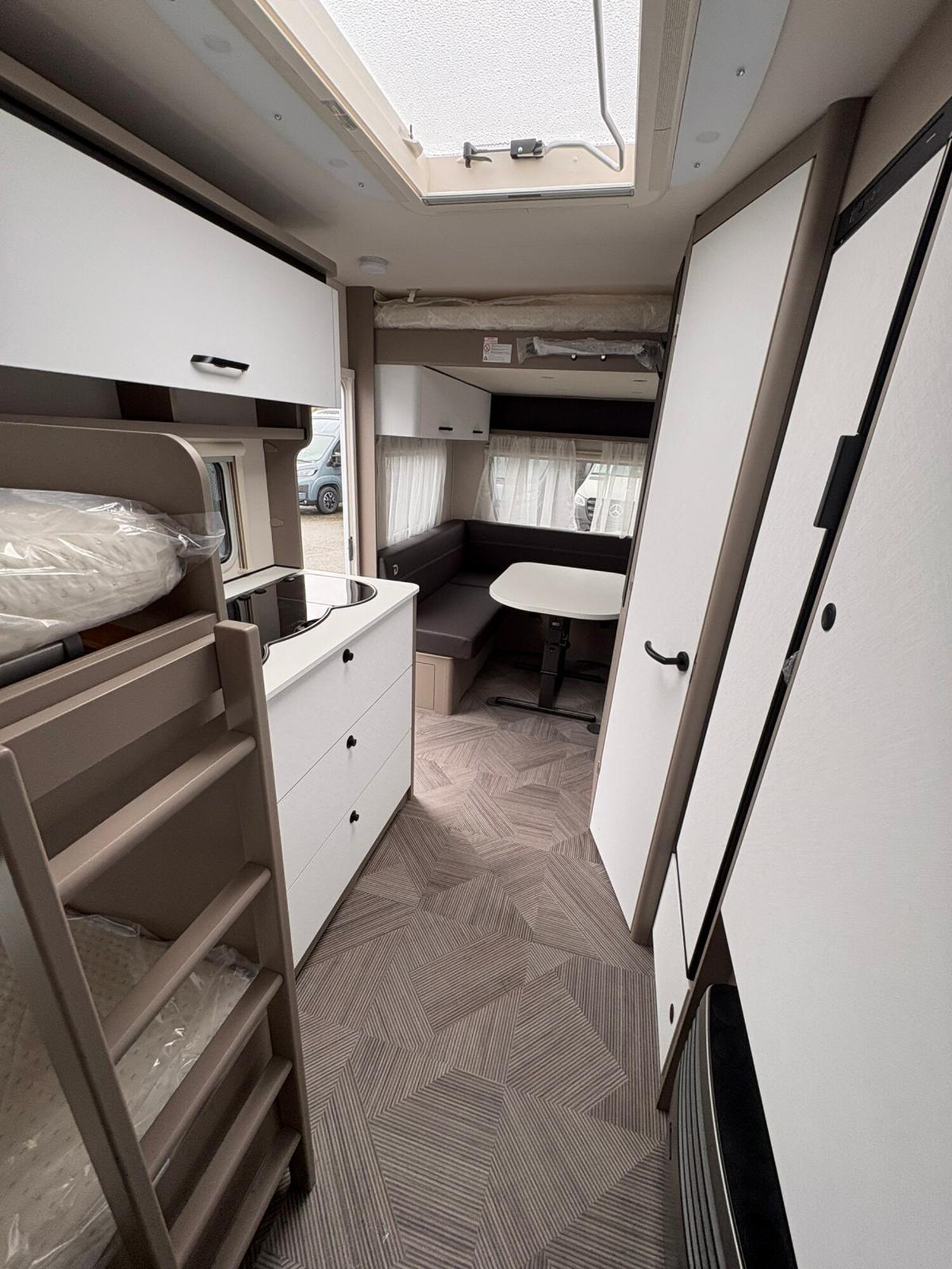 - Active-Paket up 525 KR (Bereifung auf Alufelge 195 R14 C LI106, 1700 kg und 1800 kg, Auflastung 1.800 kg (inkl. Stahlrad 195 R14 C LI106), Stabilformstützen inkl. großflächige Abstützfüße, Dachhaube Heki II inkl. Baldachin beleuchtet, Fliegengittertüre, Küchenfenster, schiebbar (Änderung der Fensterform), 7-Zonen-Matratze aus klimaregulierendem Material, Warmluftanlage, Indirekte Beleuchtung, USB Steckdose für Spot-Schiene, Einbau Klimaanlage vorbereitet, Warmwasserversorgung)