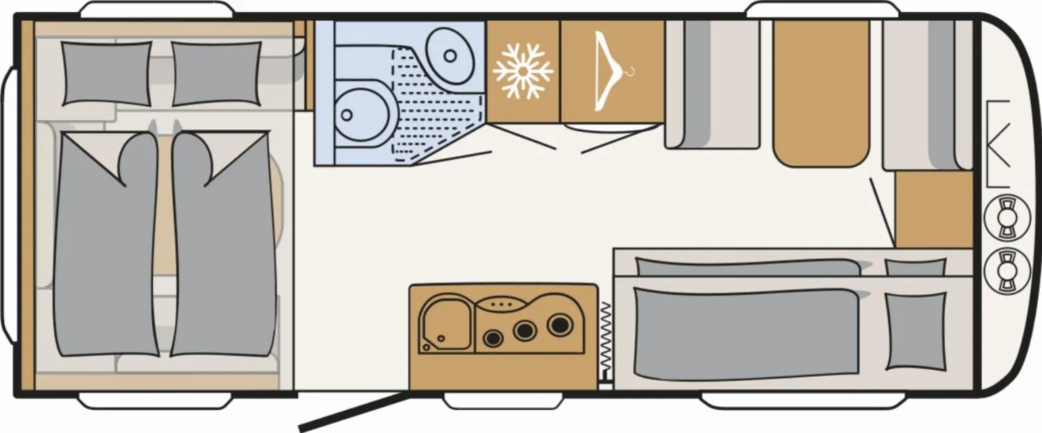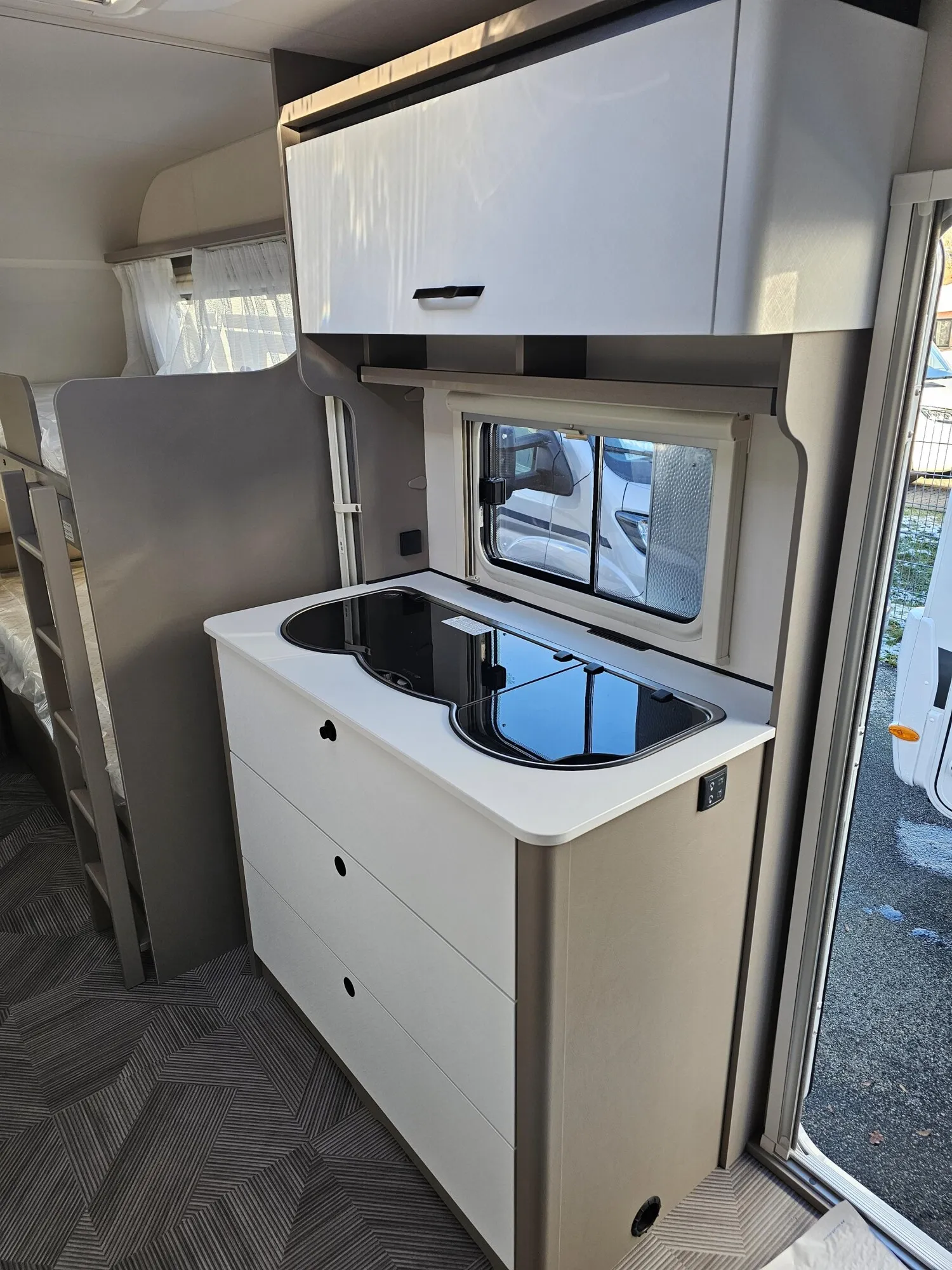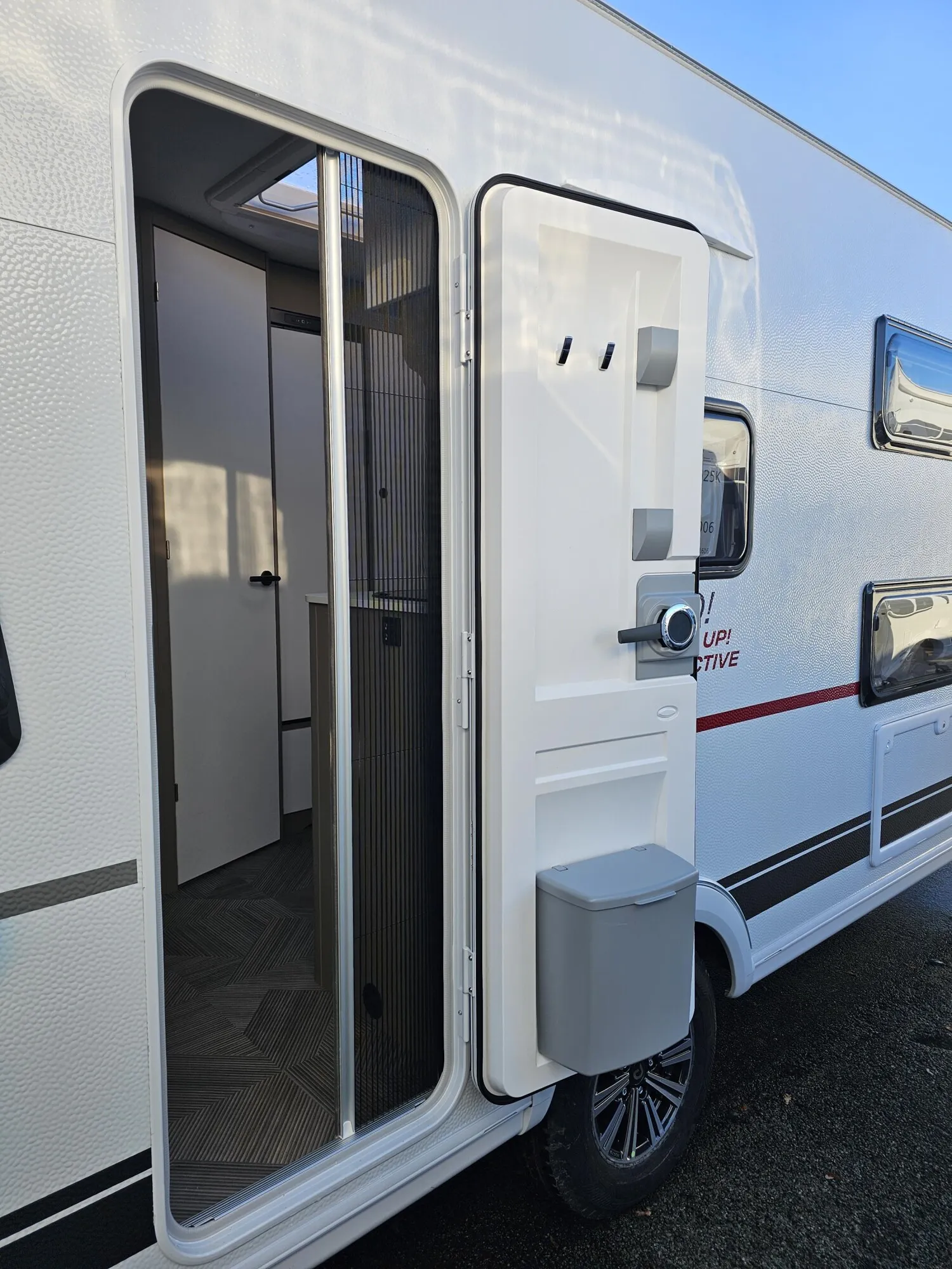 - Active-Paket up 525 KR (Bereifung auf Alufelge 195 R14 C LI106, 1700 kg und 1800 kg, Auflastung 1.800 kg (inkl. Stahlrad 195 R14 C LI106), Stabilformstützen inkl. großflächige Abstützfüße, Dachhaube Heki II inkl. Baldachin beleuchtet, Fliegengittertüre, Küchenfenster, schiebbar (Änderung der Fensterform), 7-Zonen-Matratze aus klimaregulierendem Material, Warmluftanlage, Indirekte Beleuchtung, USB Steckdose für Spot-Schiene, Einbau Klimaanlage vorbereitet, Warmwasserversorgung)