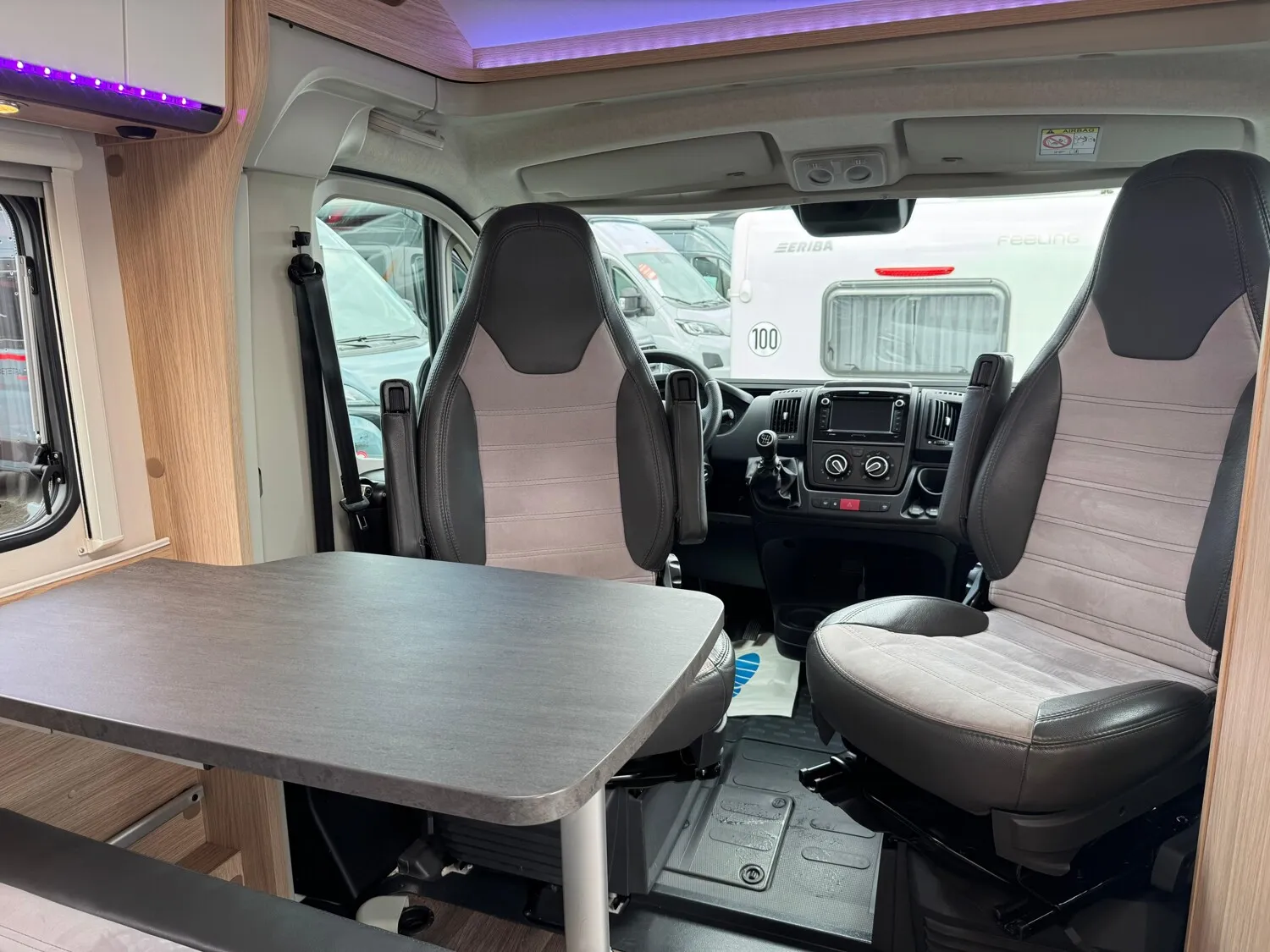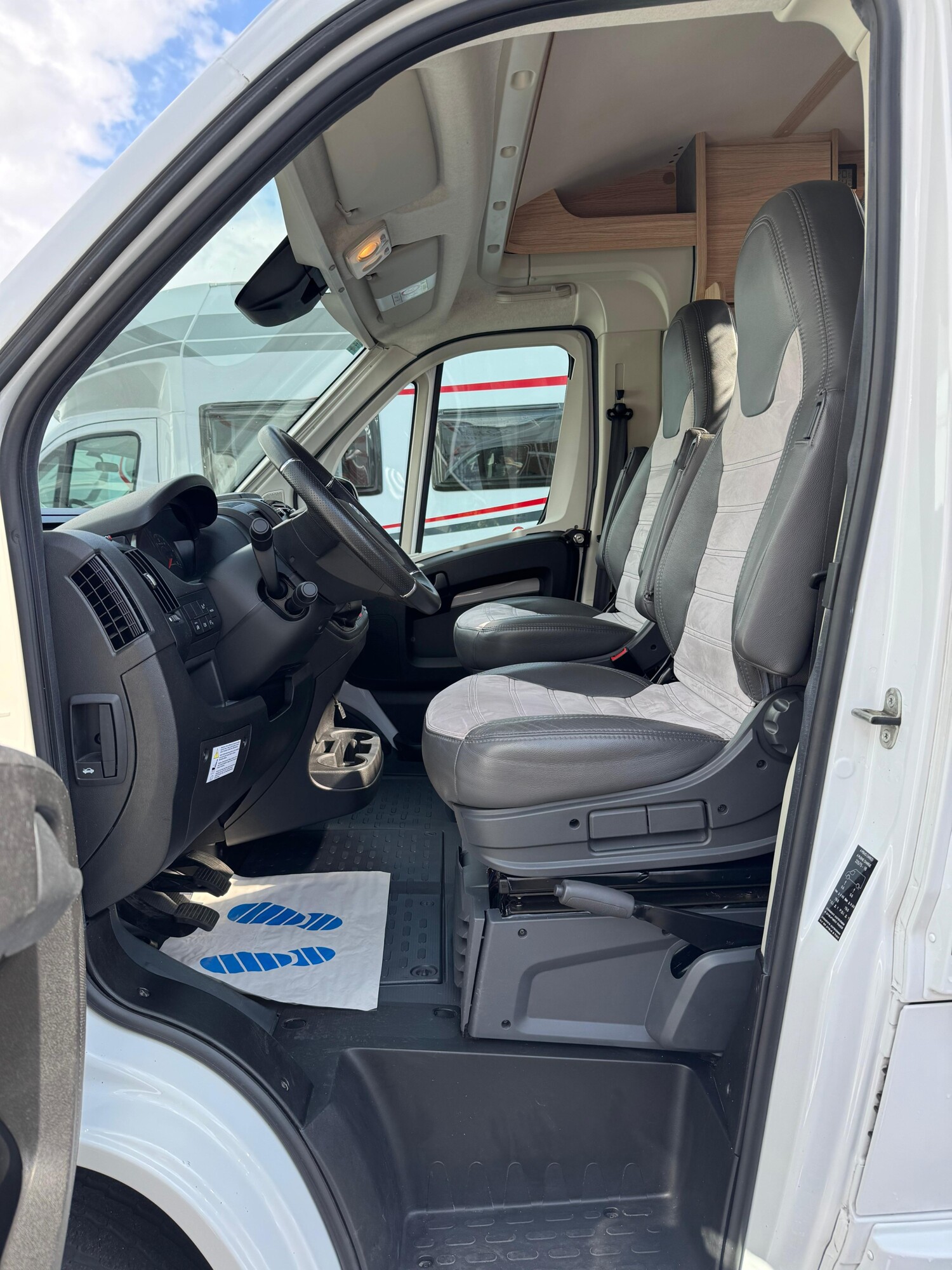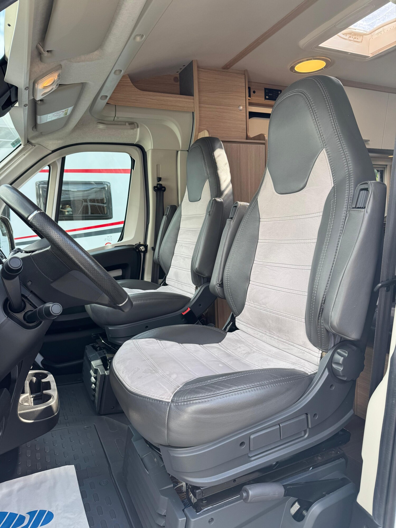 - Drehbare Pilotensitze im Wohnraumstoff bezogen