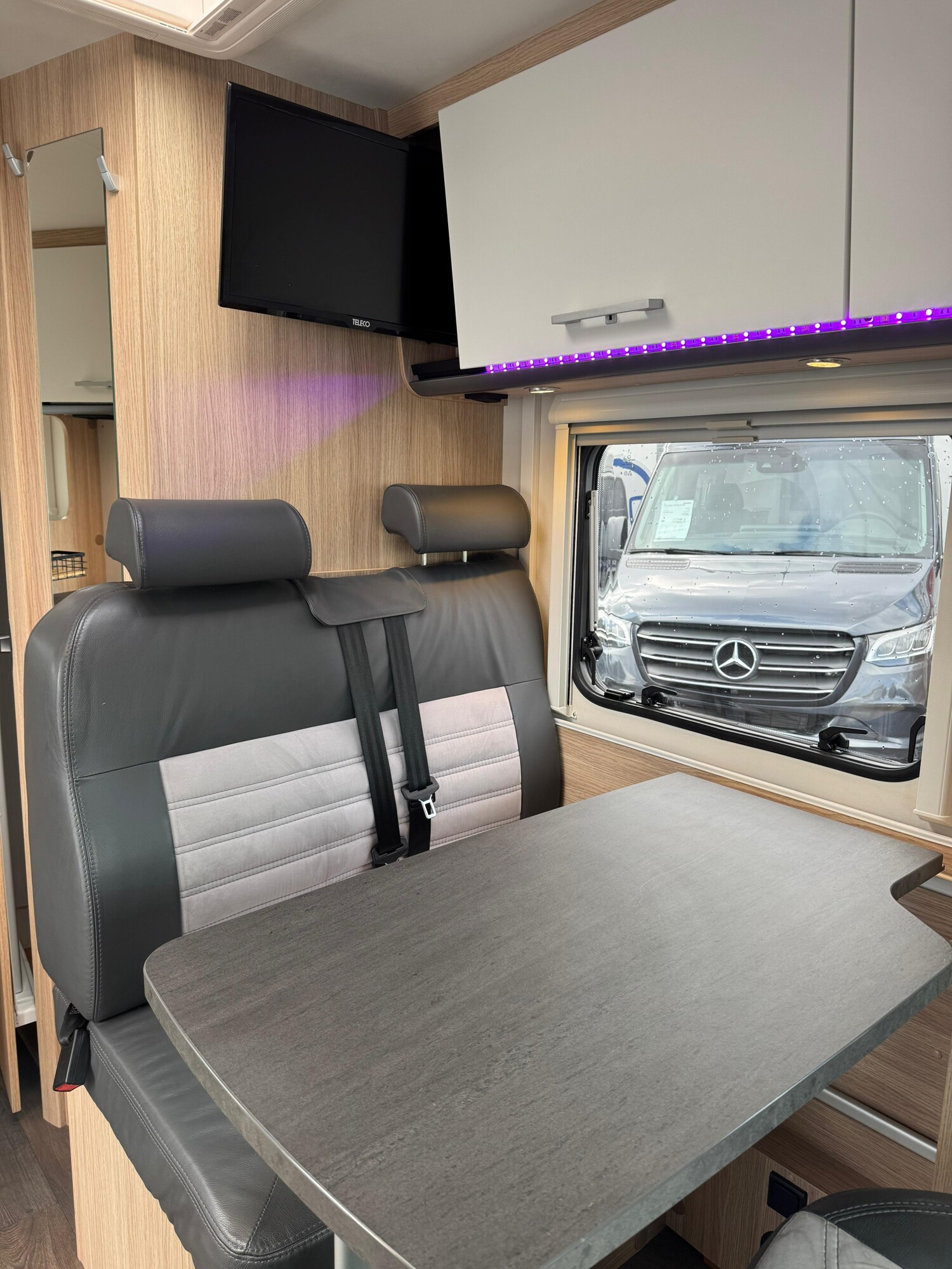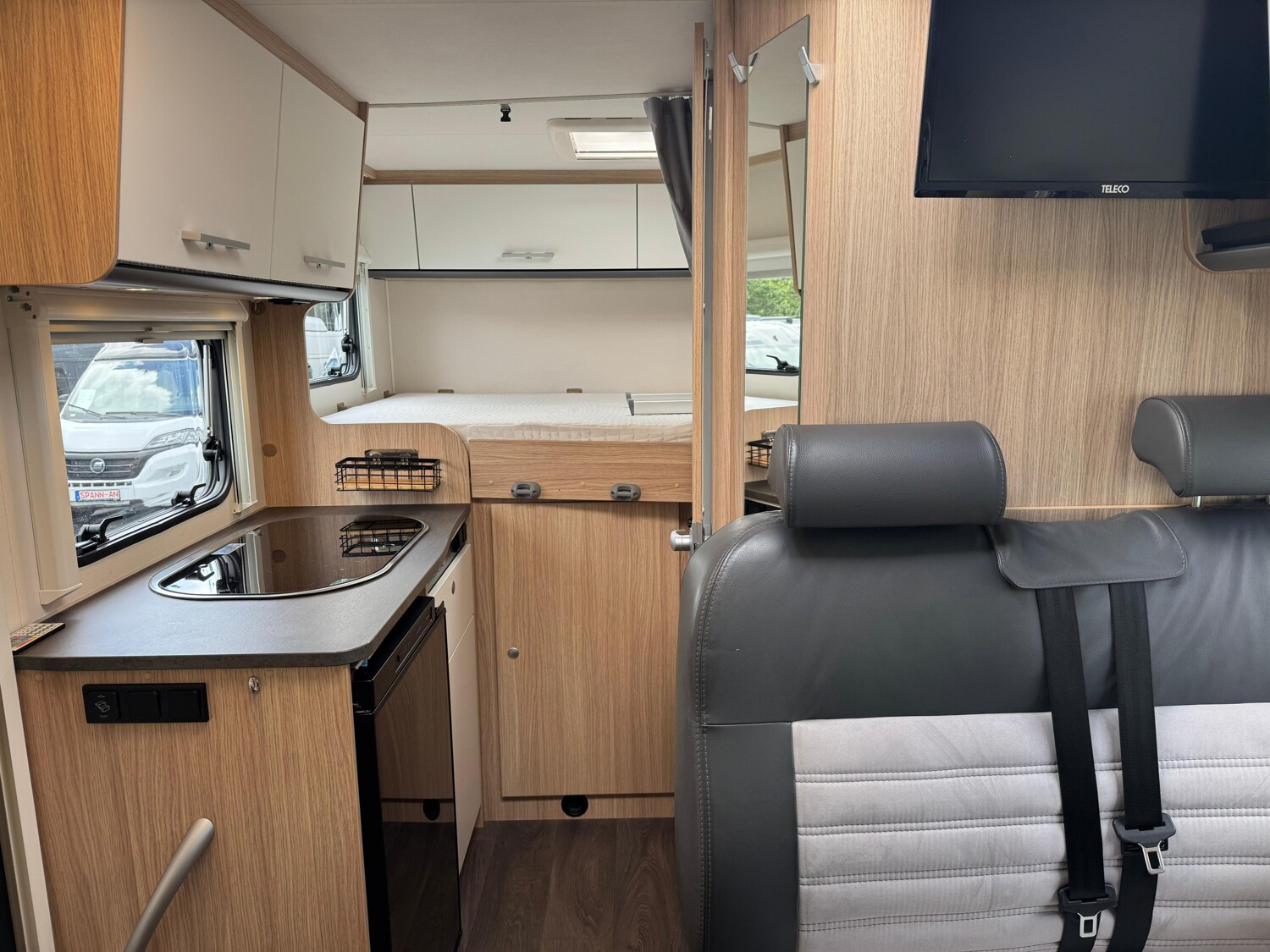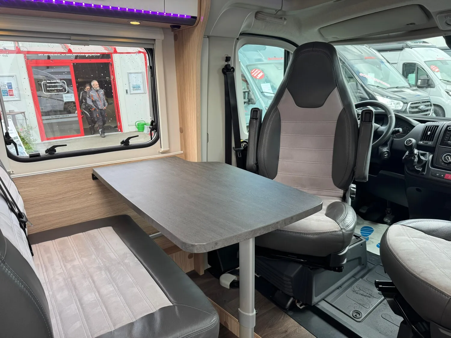 - Drehbare Pilotensitze im Wohnraumstoff bezogen