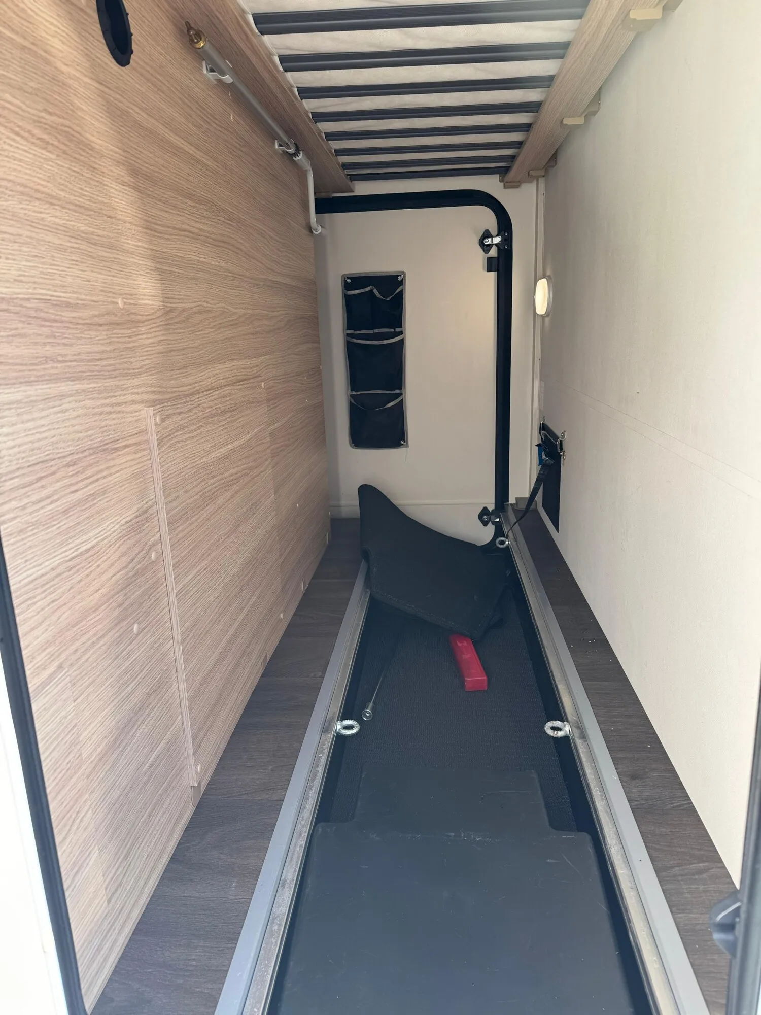 - Große Heckgarage mit Beleuchtung und Utensilientaschen, von beiden Seiten zu öffnen