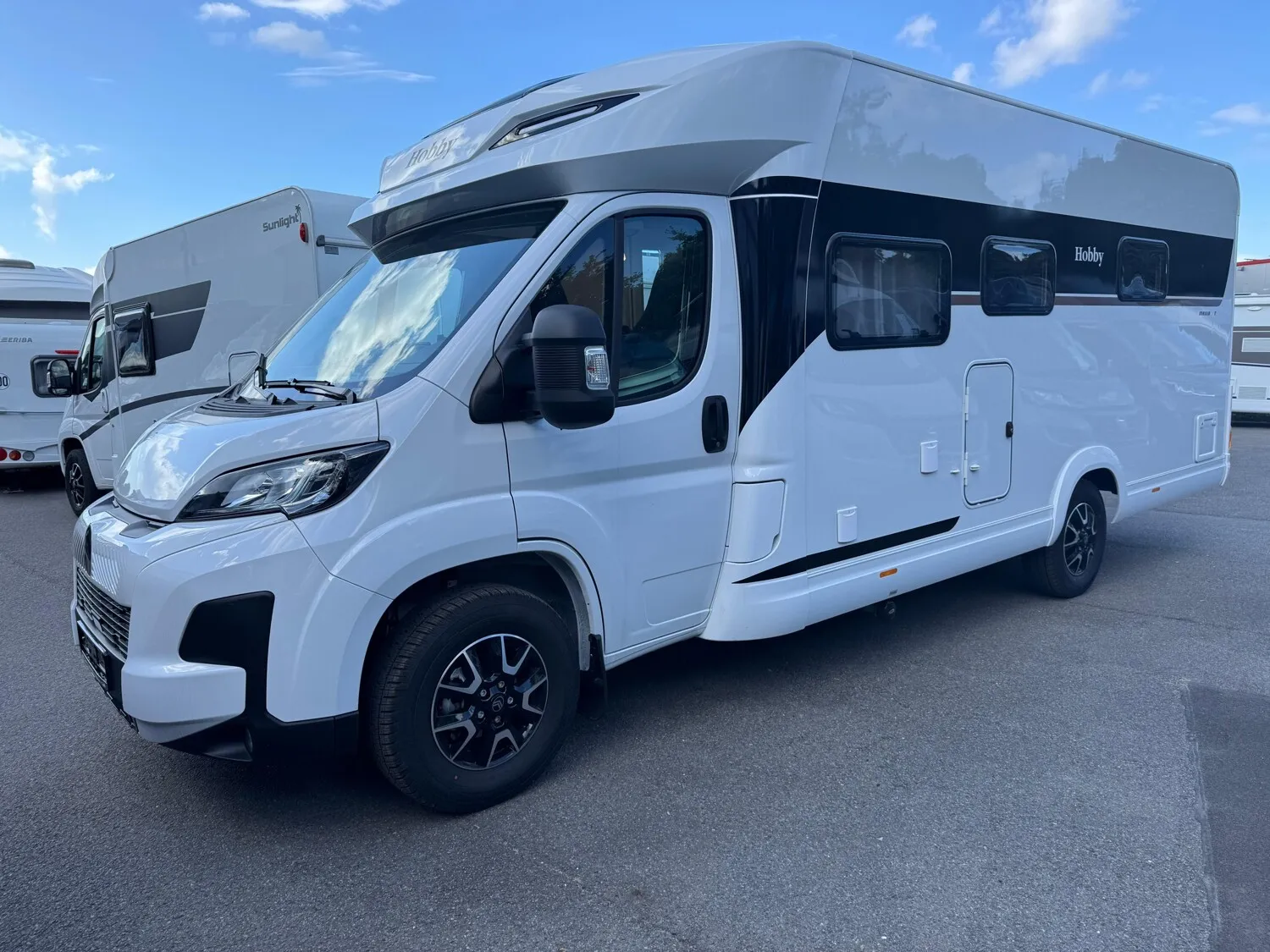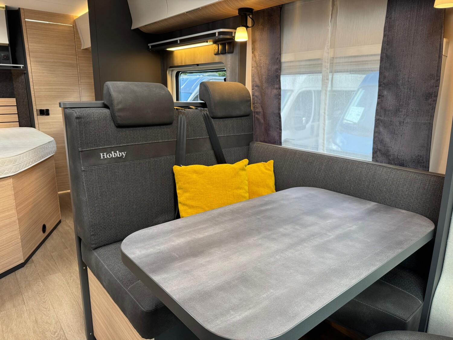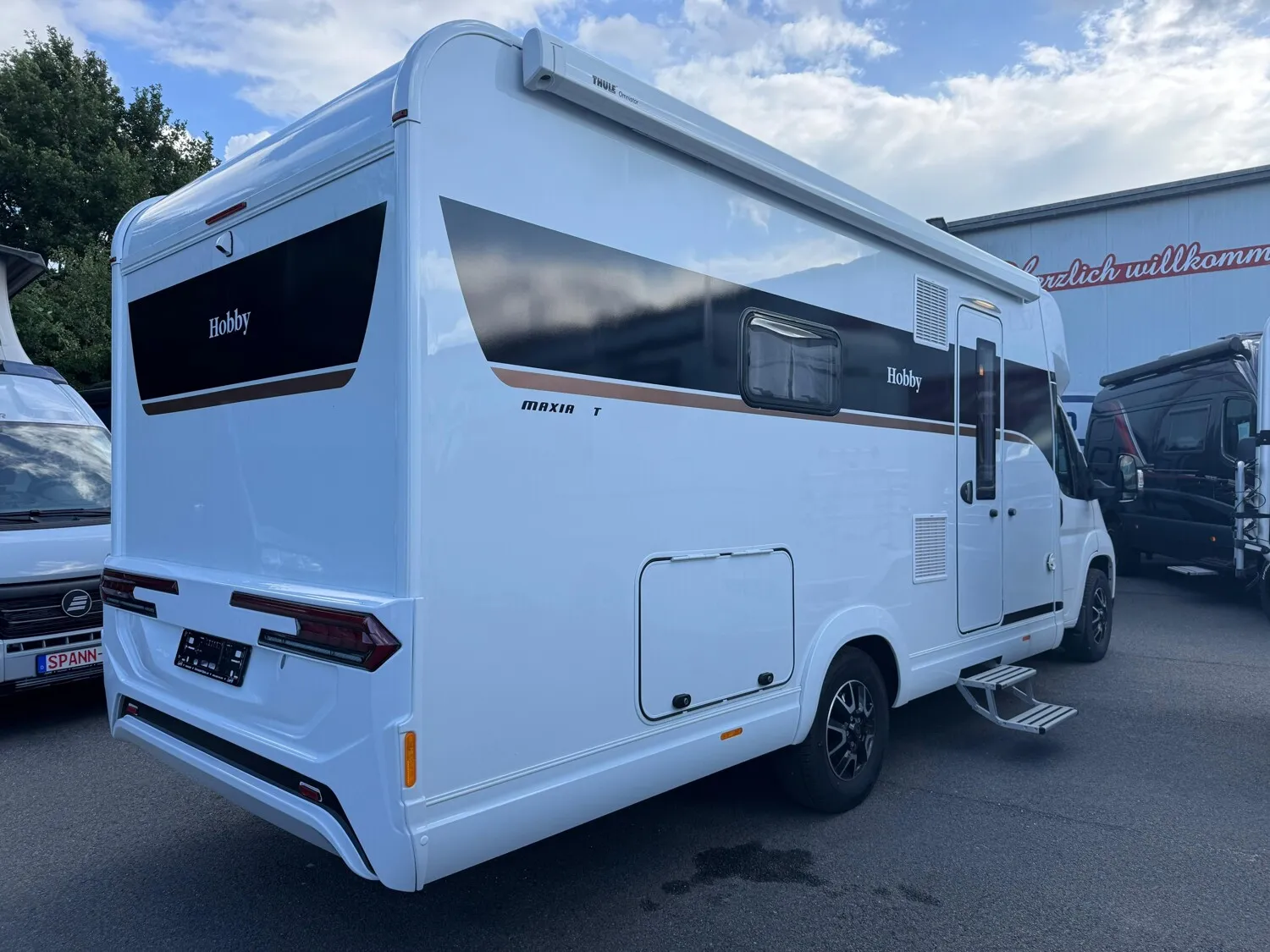 - Hobby 2025 Highlights des Maxia T (Bicolor Leichtmetallfelgen 16" // Ausstellbares Dachfenster im Fahrerhaus // Fahrer- und Beifahrersitz, dreh- und höhenverstellbar und mit Wohnraumstoff bezogen // Verdunkelungssystem REMIS für Front- und Seitenscheiben im Fahrerhaus // Lackierte Stoßfänger inkl. schwarzer Skid-plate und Nebelscheinwerfer mit Kurvenlicht // GFK-Boden mit XPS-Wärmedämmung // GFK-Dach für optimalen Hagelschutz // Anbaumarkise THULE OMNISTOR // Eingangstür, extrabreit mit Doppelverriegelung, Fenster, Abfalleimer und Staufächern // Insektenschutzplissee für Eingangstür // Gasflaschenauszug, passend für 2 x 11-kg-Flaschen // Garagentür auf der Beifahrerseite // L-Sitzgruppe // Kühlschrank (AES) DOMETIC, 133 Liter, mit Doppelanschlag, Absorbertechnik // Lattenrostsystem GOODSIDE® (nicht im Hubbett und im Queensbett) // Umlaufende Hängeschränke über Bett // Ambientebeleuchtung // Abwassertank, 96 Liter, isoliert und beheizt // HOBBYCONNECT serienmäßig // Lautsprecher für Sitzgruppe, zwei Stück // Vorbereitung Dachklimaanlage (z.B. DOMETIC Fresh Jet) // Vorbereitung für SAT-Anlage)