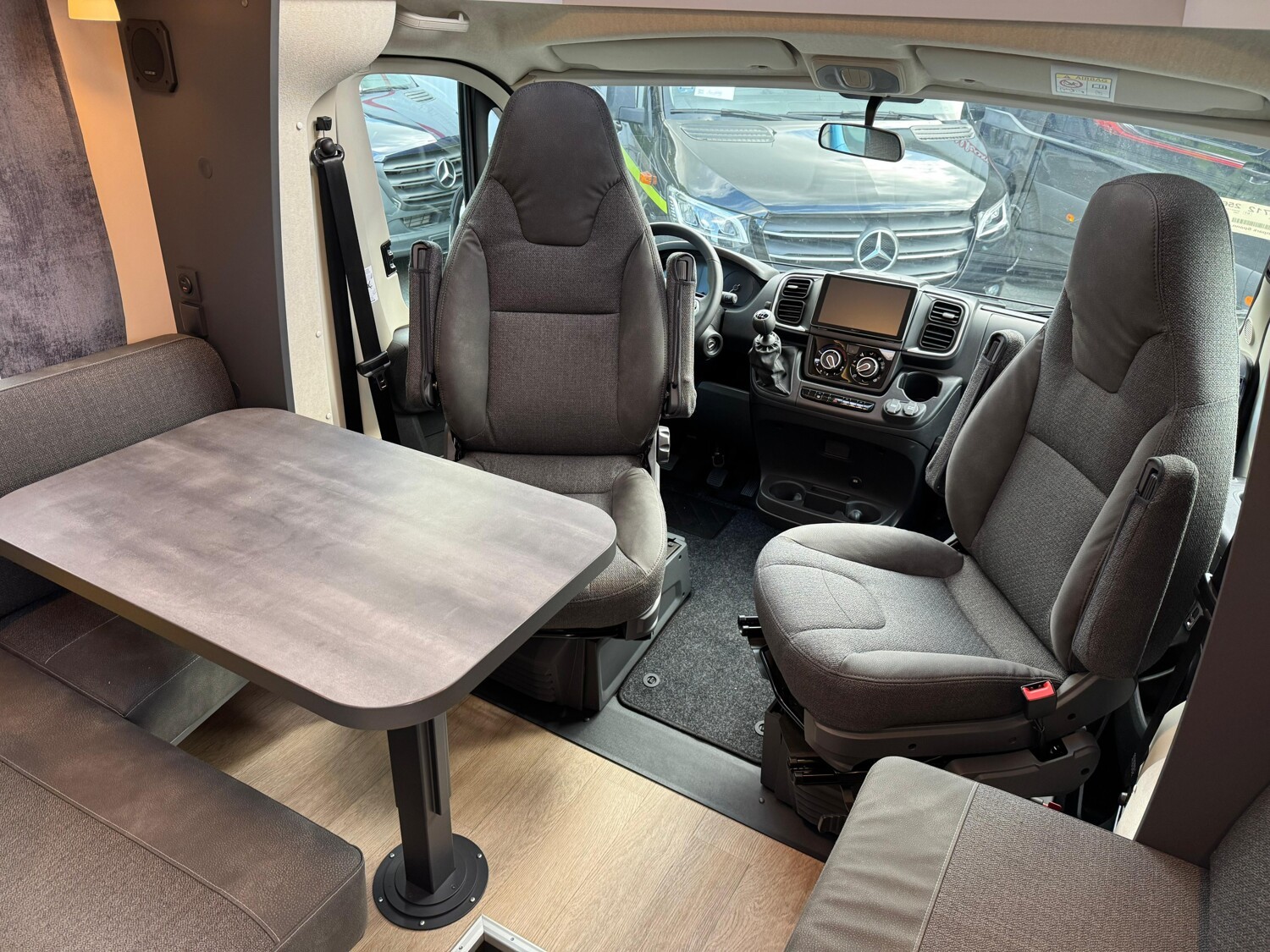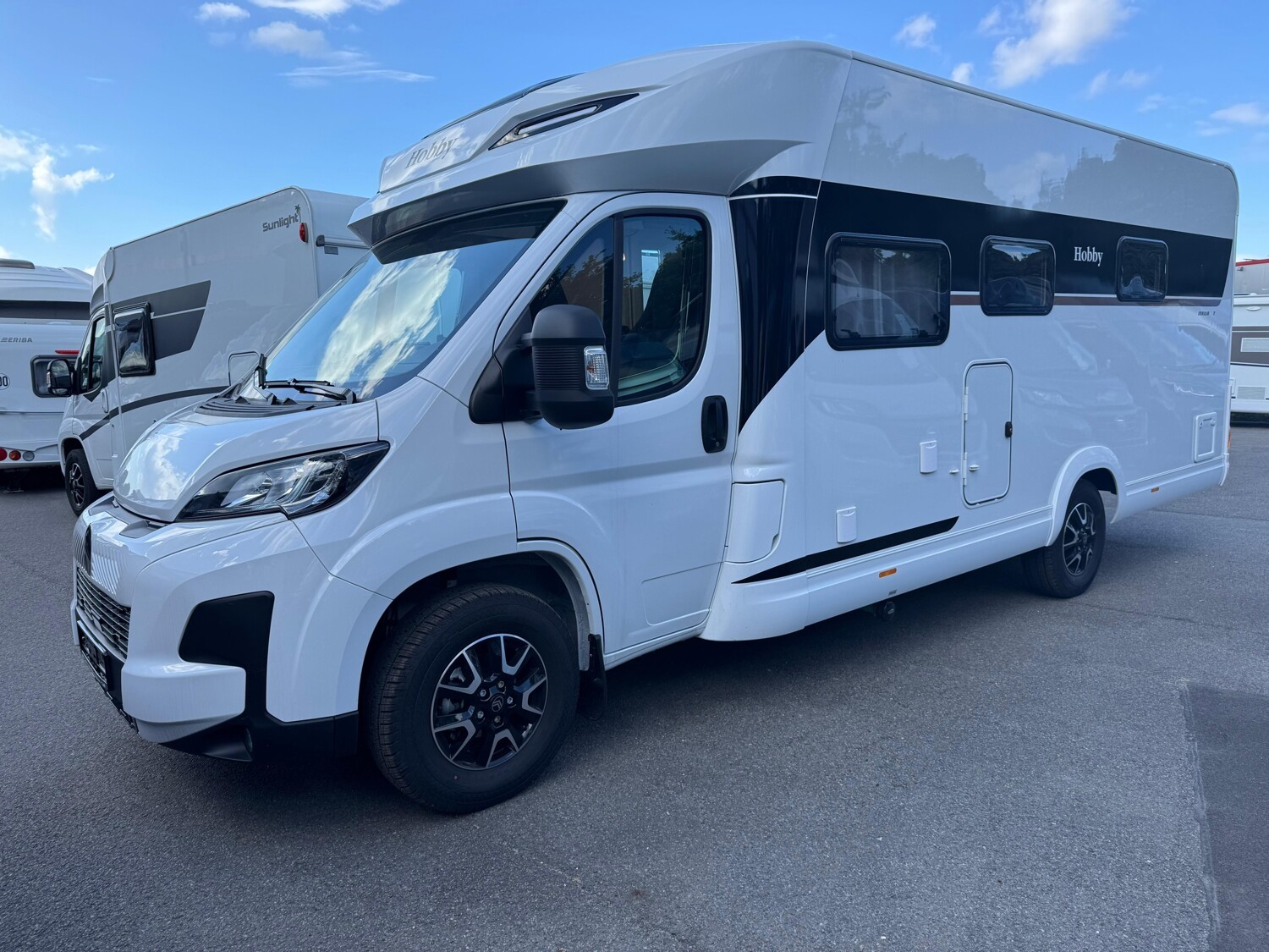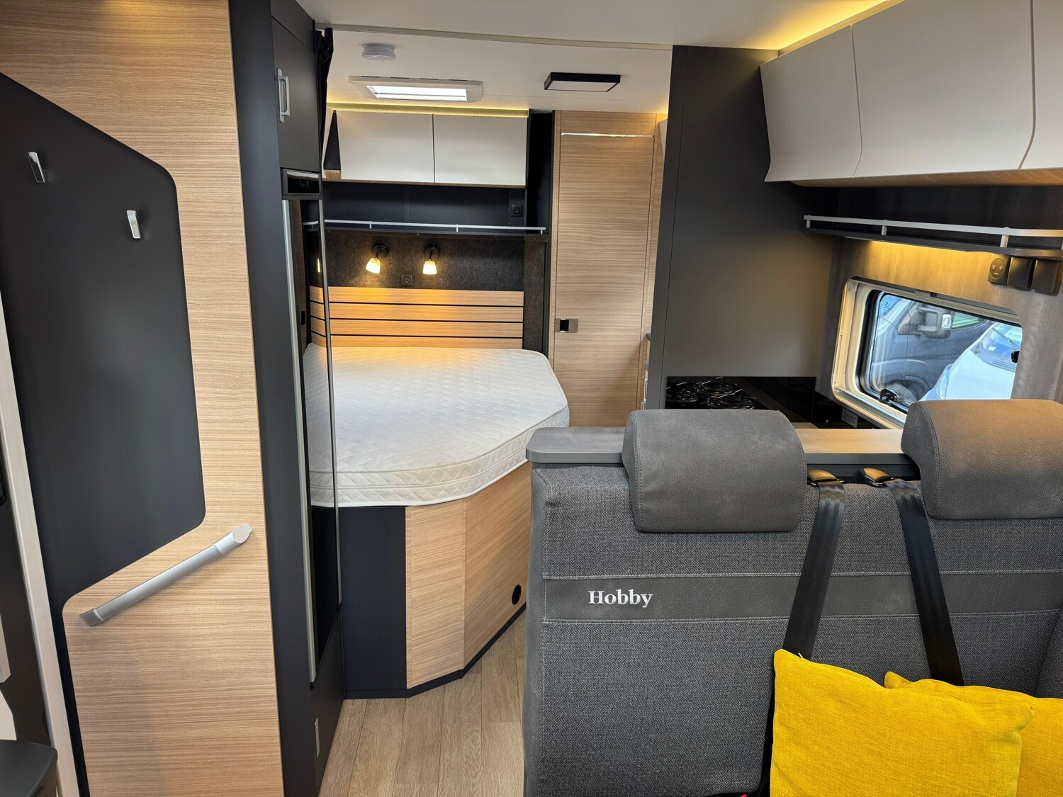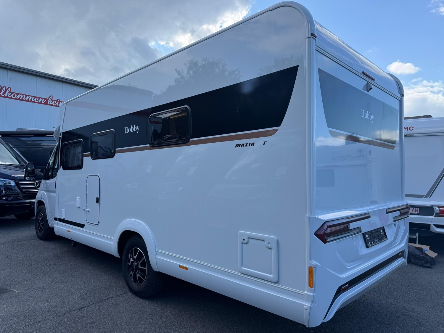 - Hobby 2025 Highlights des Maxia T (Bicolor Leichtmetallfelgen 16" mit Allwetter-Bereifung // Reifendruckkontrollsystem // ausstellbares Dachfenster im Fahrerhaus // Fahrer- und Beifahrersitz, dreh- und höhenverstellbar und mit Wohnraumstoff bezogen // Rahmenfenster // Klimaanlage Fahrerhaus // Tempomat // Lederlenkrad mit Multifunktion // Verdunkelungssystem REMIS für Front- und Seitenscheiben im Fahrerhaus // Rauchmelder // Lackierte Stoßfänger inkl. schwarzer Skid-plate und Nebelscheinwerfer mit Kurvenlicht // GFK-Boden mit XPS-Wärmedämmung // GFK-Dach für optimalen Hagelschutz // Anbaumarkise THULE OMNISTOR // Eingangstür, extrabreit mit Doppelverriegelung, Fenster, Abfalleimer und Staufächern // Insektenschutzplissee für Eingangstür // Gasflaschenauszug, passend für 2 x 11-kg-Flaschen // Garagentür auf der Beifahrerseite // L-Sitzgruppe mit Säulenhubtisch // Kühlschrank (AES) DOMETIC, 133 Liter, mit Doppelanschlag, Absorbertechnik // Lattenrostsystem GOODSIDE® (nicht im Hubbett und im Queensbett) // Umlaufende Hängeschränke über Bett // Ambientebeleuchtung // Abwassertank, 96 Liter isoliert und beheizt // HOBBYCONNECT serienmäßig // Lautsprecher für Sitzgruppe, zwei Stück // Vorbereitung für Solaranlage & Dachklimaanlage // Multimediasystem PIONEER 9" Touchscreen inkl. Apple Car Play, Android Auto, DAB+ und Rückfahrkamera, Teppich im Fahrerhaus und noch vieles mehr!)