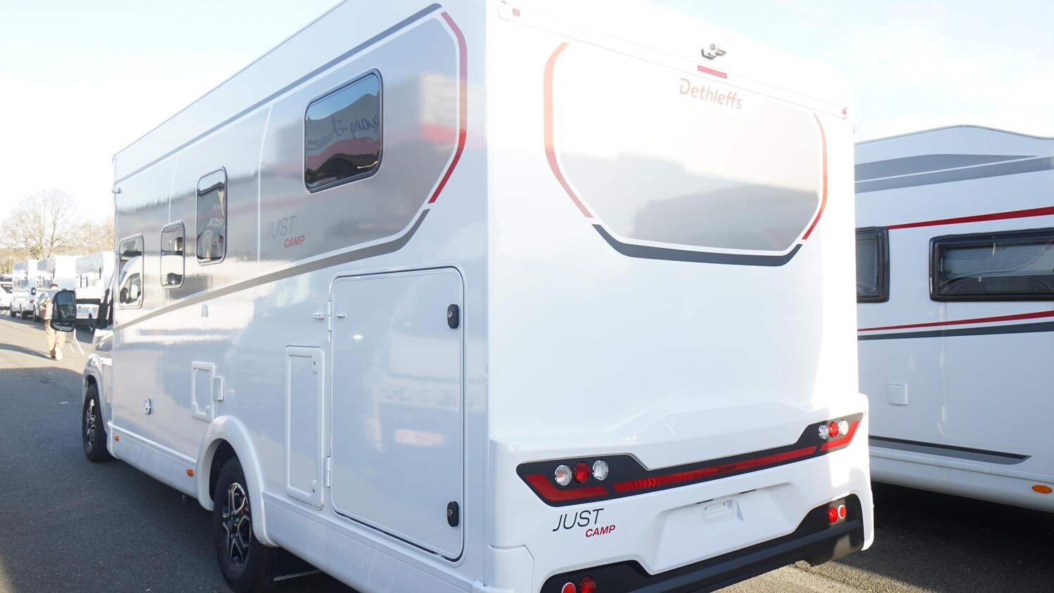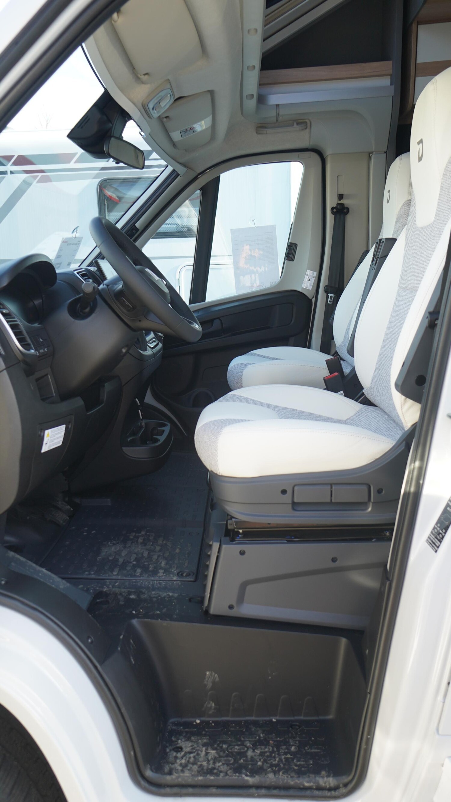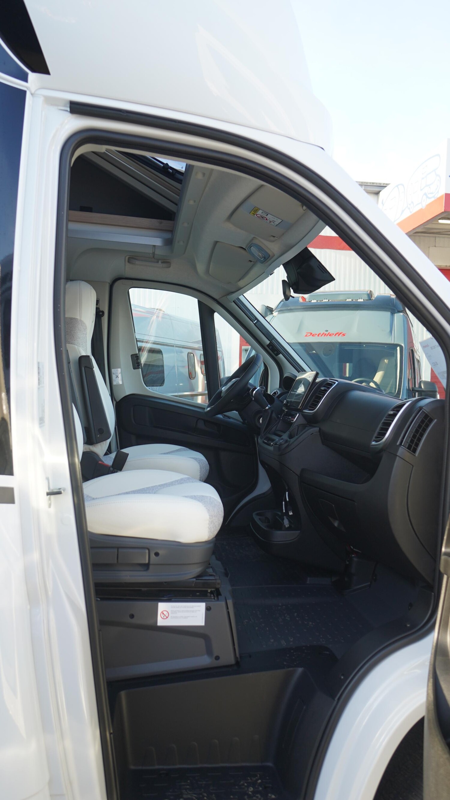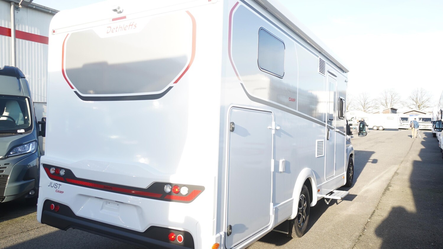 - Active-Paket T 7052 EBL (Ausstellfenster in der T-Haube, Wohnraumtür mit Fenster inkl. Verdunkelung und Zentralverriegelung (inkl. Fahrerhaustür), Verdunklungsjalousien im Fahrerhaus, Panorama-Dachhaube 70 x 50 cm im Wohnraum, Light Moments: Indirekte Ambientebeleuchtung über den Dachstauschränken, Light Moments: Indirekte Wandflächen-Ambientebeleuchtung, Stauraum-Türe links, Doppelverglaste Rahmenfenster mit Verdunklung & Mückenschutz inkl. verkleidete Küchenrückwand, Textilleder-Wohnwelt Heron, Vorbereitung Solar, Light Moments: Küchenrückwand beleuchtet, Vorbereitung Dach-Klimaanlage, Digitales Bedienelement für Warmluftheizung, Dethleffs Naviceiver inkl. DAB+, Truck Navigation, Wireless Apple CarPlay und Android Auto, Rückfahrkamera (Einfachkamera), Vorbereitung SAT-Anlage, Active Außendesign (Heckleuchtenträger mit schwarzem Diffusor, erweiterte Beklebung, Skidplate "rot"), Bettumbau Einzelbetten zu Doppelbett, Fenster im Badezimmer, Duschrost, Cassettenmarkise Omnistor 4,5 m (manuell))