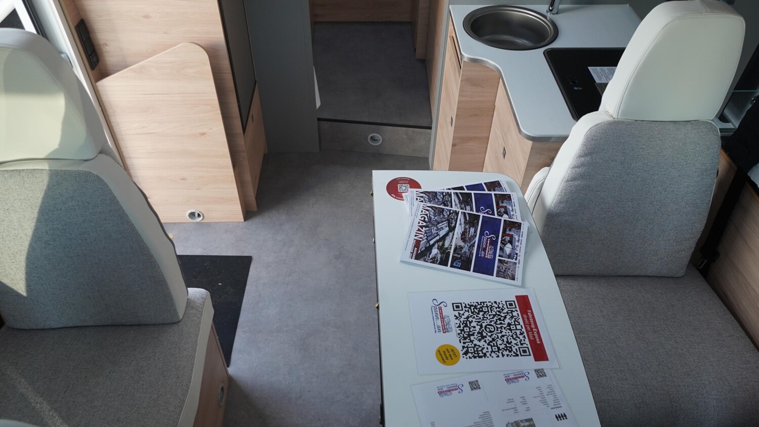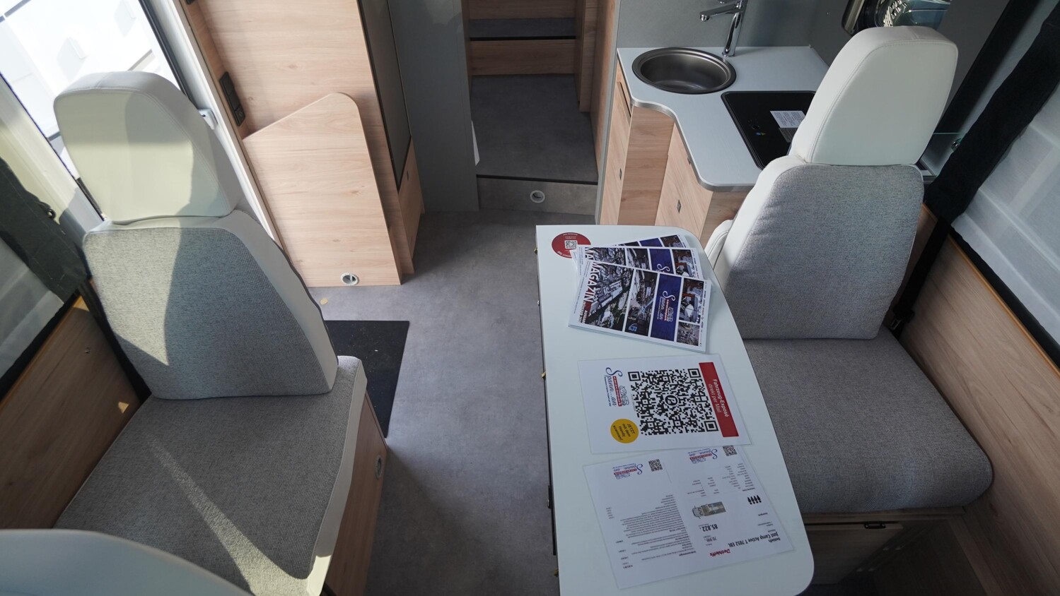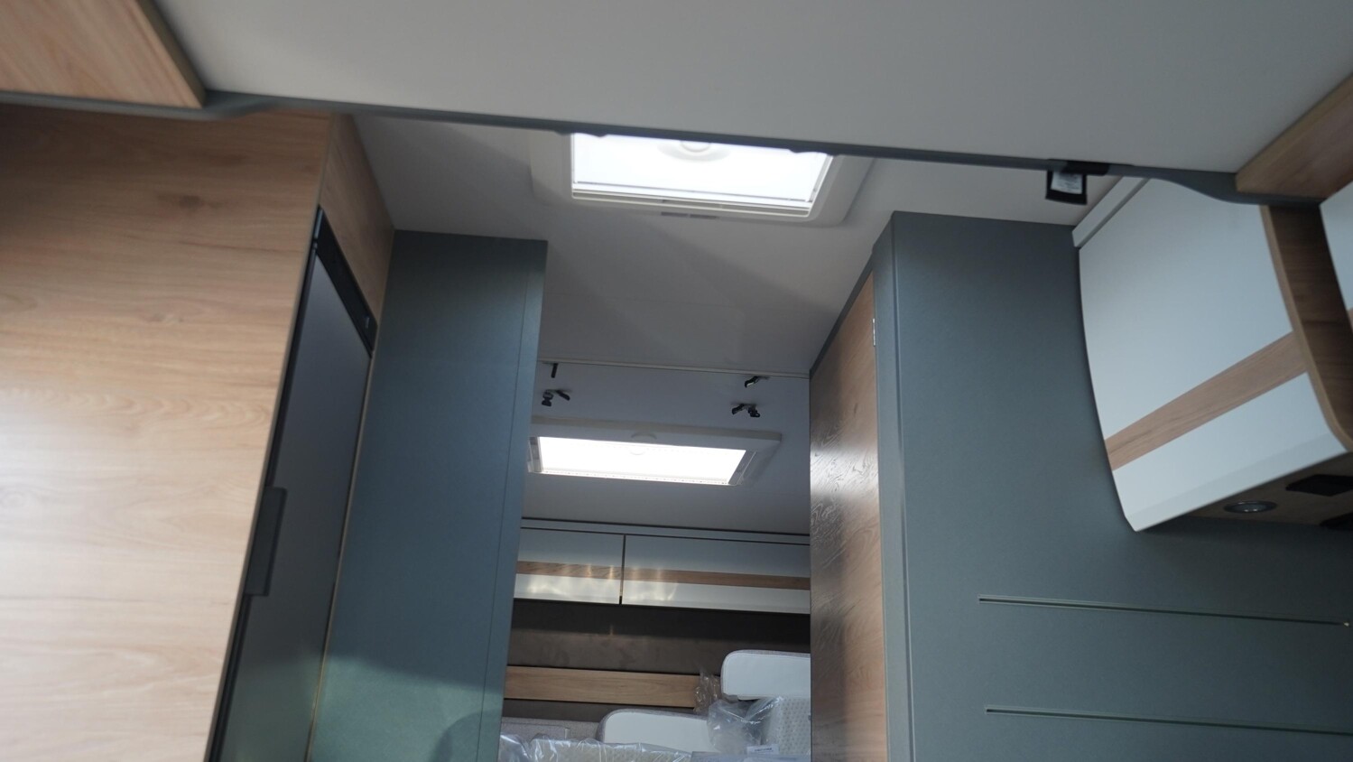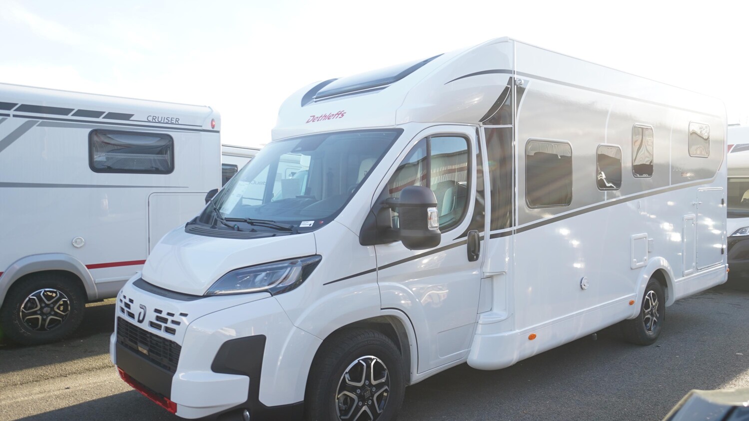 - Active-Paket T 7052 EBL (Ausstellfenster in der T-Haube, Wohnraumtür mit Fenster inkl. Verdunkelung und Zentralverriegelung (inkl. Fahrerhaustür), Verdunklungsjalousien im Fahrerhaus, Panorama-Dachhaube 70 x 50 cm im Wohnraum, Light Moments: Indirekte Ambientebeleuchtung über den Dachstauschränken, Light Moments: Indirekte Wandflächen-Ambientebeleuchtung, Stauraum-Türe links, Doppelverglaste Rahmenfenster mit Verdunklung & Mückenschutz inkl. verkleidete Küchenrückwand, Textilleder-Wohnwelt Heron, Vorbereitung Solar, Light Moments: Küchenrückwand beleuchtet, Vorbereitung Dach-Klimaanlage, Digitales Bedienelement für Warmluftheizung, Dethleffs Naviceiver inkl. DAB+, Truck Navigation, Wireless Apple CarPlay und Android Auto, Rückfahrkamera (Einfachkamera), Vorbereitung SAT-Anlage, Active Außendesign (Heckleuchtenträger mit schwarzem Diffusor, erweiterte Beklebung, Skidplate "rot"), Bettumbau Einzelbetten zu Doppelbett, Fenster im Badezimmer, Duschrost, Cassettenmarkise Omnistor 4,5 m (manuell))