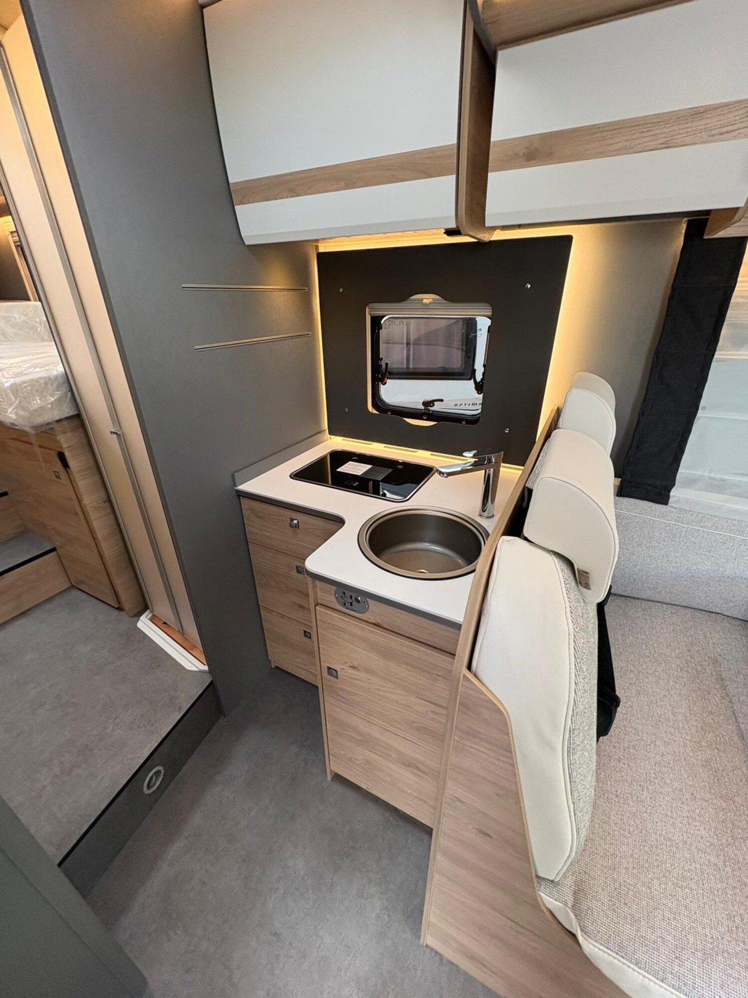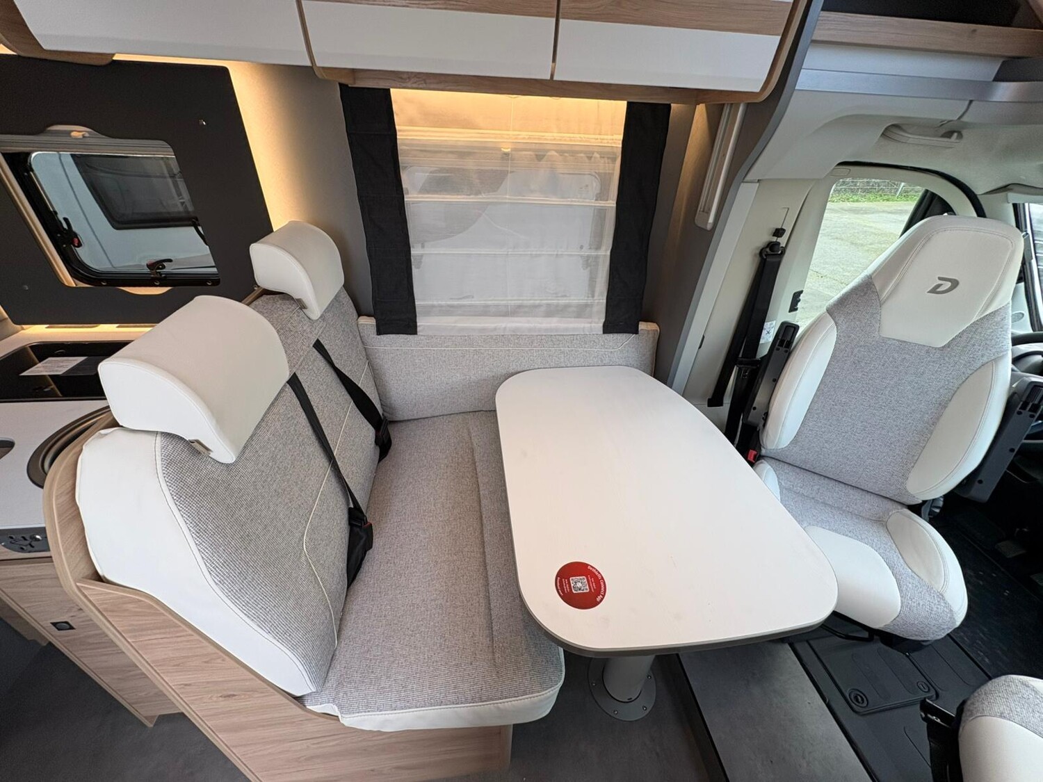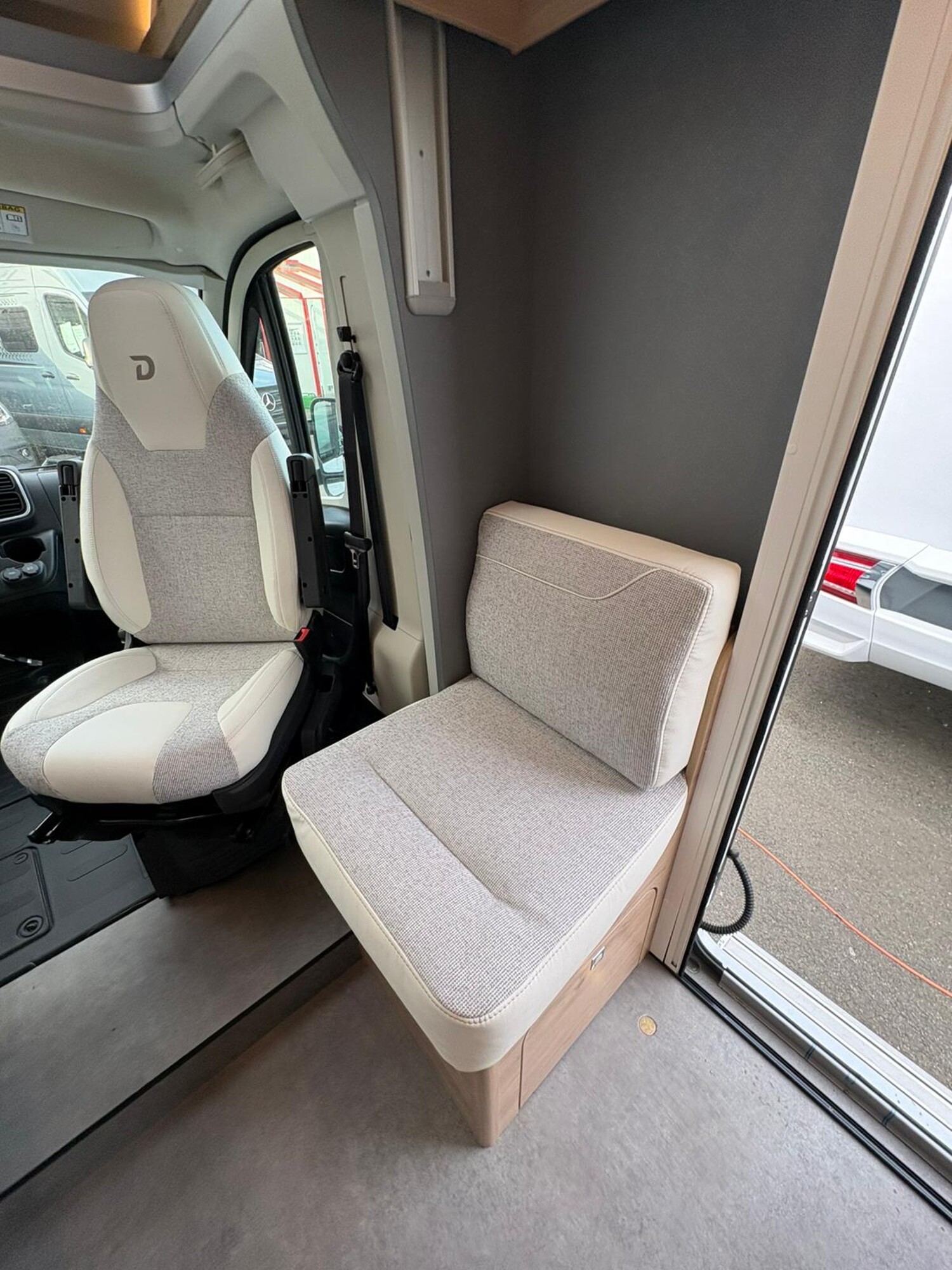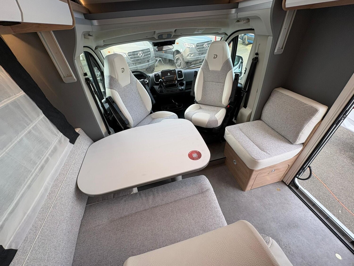 - Active-Paket T 7052 EB (Ausstellfenster in der T-Haube, Wohnraumtür mit Fenster inkl. Verdunkelung und Zentralverriegelung (inkl. Fahrerhaustür), Verdunklungsjalousien im Fahrerhaus, Panorama-Dachhaube 70 x 50 cm im Wohnraum, Light Moments: Indirekte Ambientebeleuchtung über den Dachstauschränken, Light Moments: Indirekte Wandflächen-Ambientebeleuchtung, Stauraum-Türe links, Doppelverglaste Rahmenfenster mit Verdunklung & Mückenschutz inkl. verkleidete Küchenrückwand, Textilleder-Wohnwelt Heron, Vorbereitung Solar, Light Moments: Küchenrückwand beleuchtet, Vorbereitung Dach-Klimaanlage, Digitales Bedienelement für Warmluftheizung, Dethleffs Naviceiver inkl. DAB+, Truck Navigation, Wireless Apple CarPlay und Android Auto, Rückfahrkamera (Einfachkamera), Vorbereitung SAT-Anlage, Active Außendesign (Heckleuchtenträger mit schwarzem Diffusor, erweiterte Beklebung, Skidplate "rot"), Bettumbau Einzelbetten zu Doppelbett, Gemütliche L-Sitzgruppe mit freistehendem, absenkbarem Tischfuß und 2 integrierte 3-Punkt-Gurte, Fenster im Badezimmer, Duschrost, Cassettenmarkise Omnistor 4,5 m (manuell))