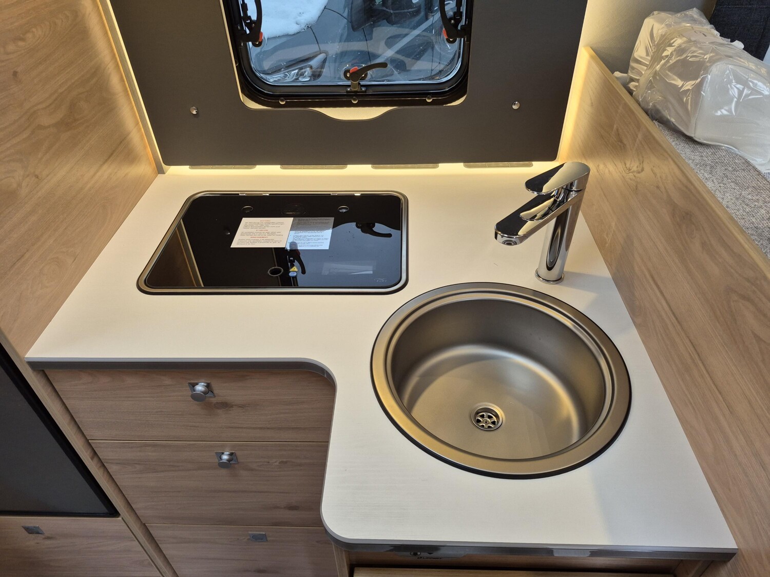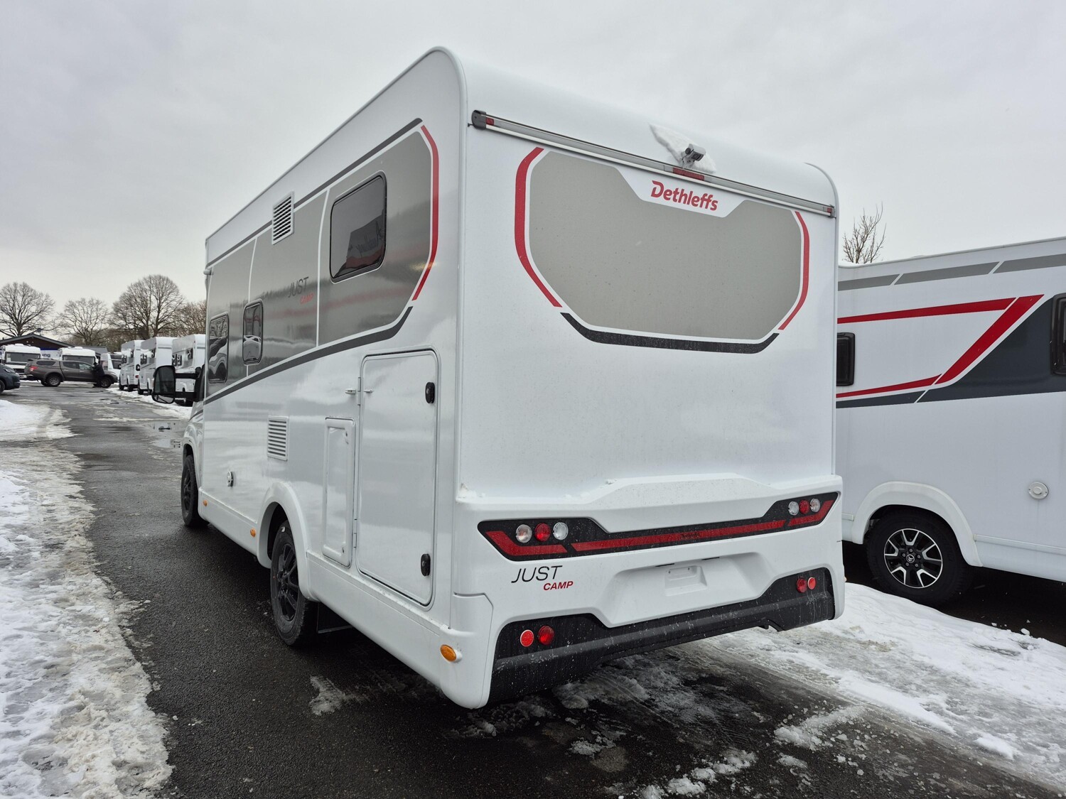 - Active-Paket T 6812 EB (Ausstellfenster in der T-Haube, Wohnraumtür mit Fenster inkl. Verdunkelung und Zentralverriegelung (inkl. Fahrerhaustür), Verdunklungsjalousien im Fahrerhaus, Panorama-Dachhaube 70 x 50 cm im Wohnraum, Light Moments: Indirekte Ambientebeleuchtung über den Dachstauschränken, Light Moments: Indirekte Wandflächen-Ambientebeleuchtung, Stauraum-Türe links, Doppelverglaste Rahmenfenster mit Verdunklung & Mückenschutz inkl. verkleidete Küchenrückwand, Textilleder-Wohnwelt Heron, Vorbereitung Solar, Light Moments: Küchenrückwand beleuchtet, Vorbereitung Dach-Klimaanlage, Digitales Bedienelement für Warmluftheizung, Dethleffs Naviceiver inkl. DAB+, Truck Navigation, Wireless Apple CarPlay und Android Auto, Rückfahrkamera (Einfachkamera), Vorbereitung SAT-Anlage, Active Außendesign (Heckleuchtenträger mit schwarzem Diffusor, erweiterte Beklebung, Skidplate "rot"), Bettumbau Einzelbetten zu Doppelbett, Gemütliche L-Sitzgruppe mit freistehendem, absenkbarem Tischfuß und 2 integrierte 3-Punkt-Gurte, Duschrost, Cassettenmarkise Omnistor 4.0 m (manuell))