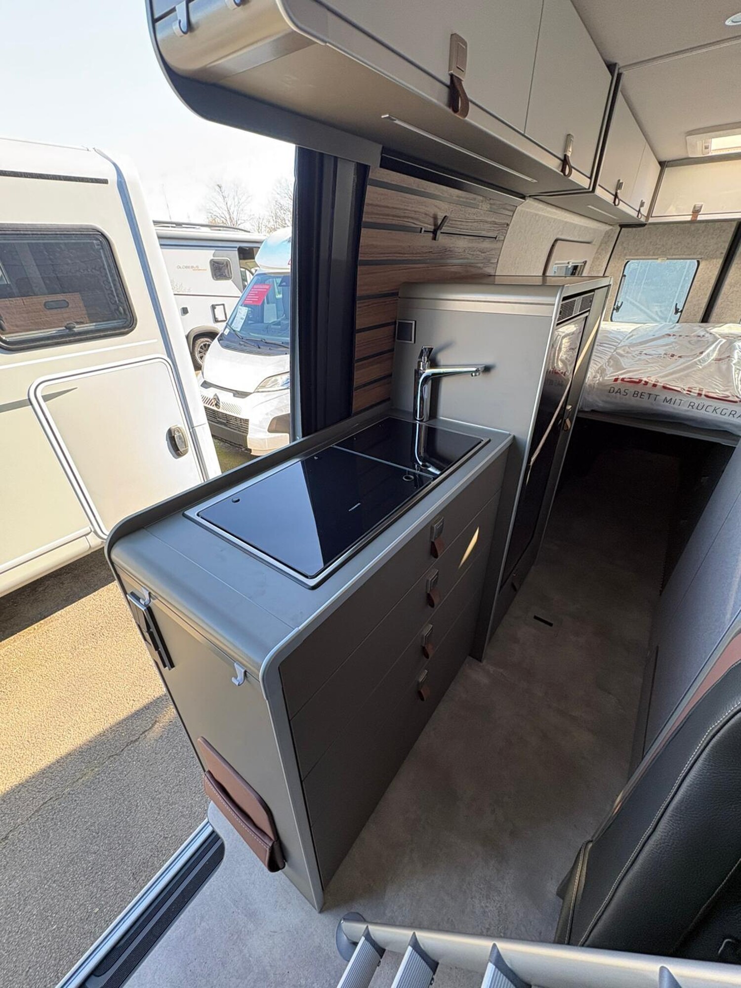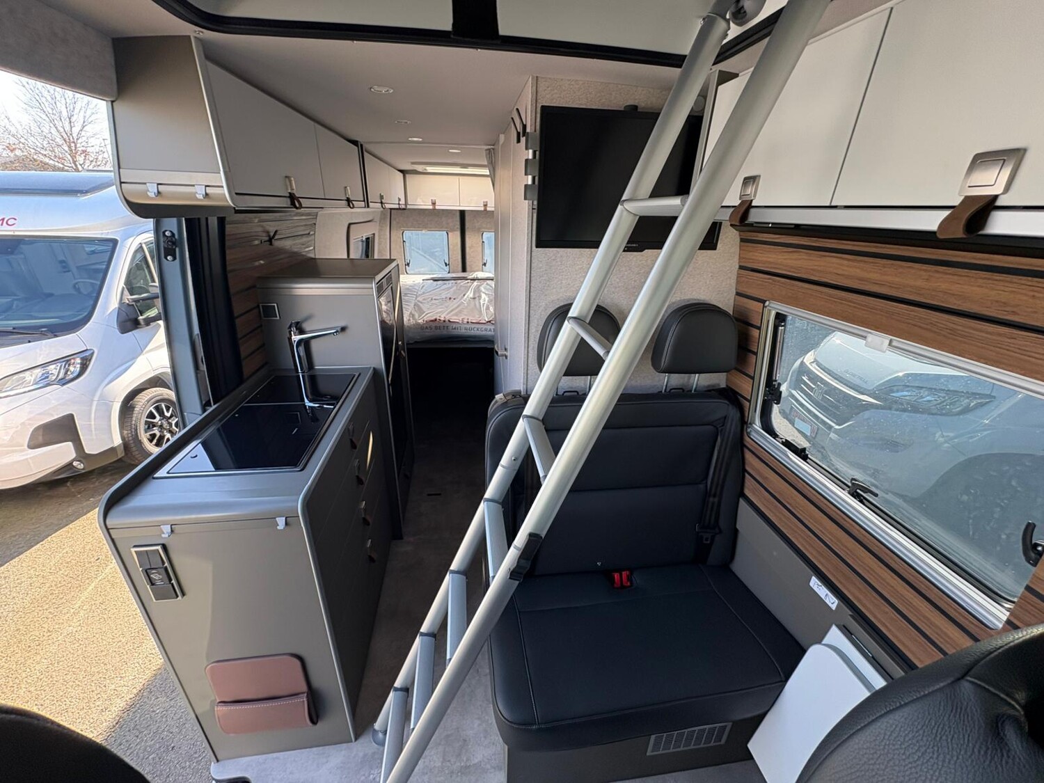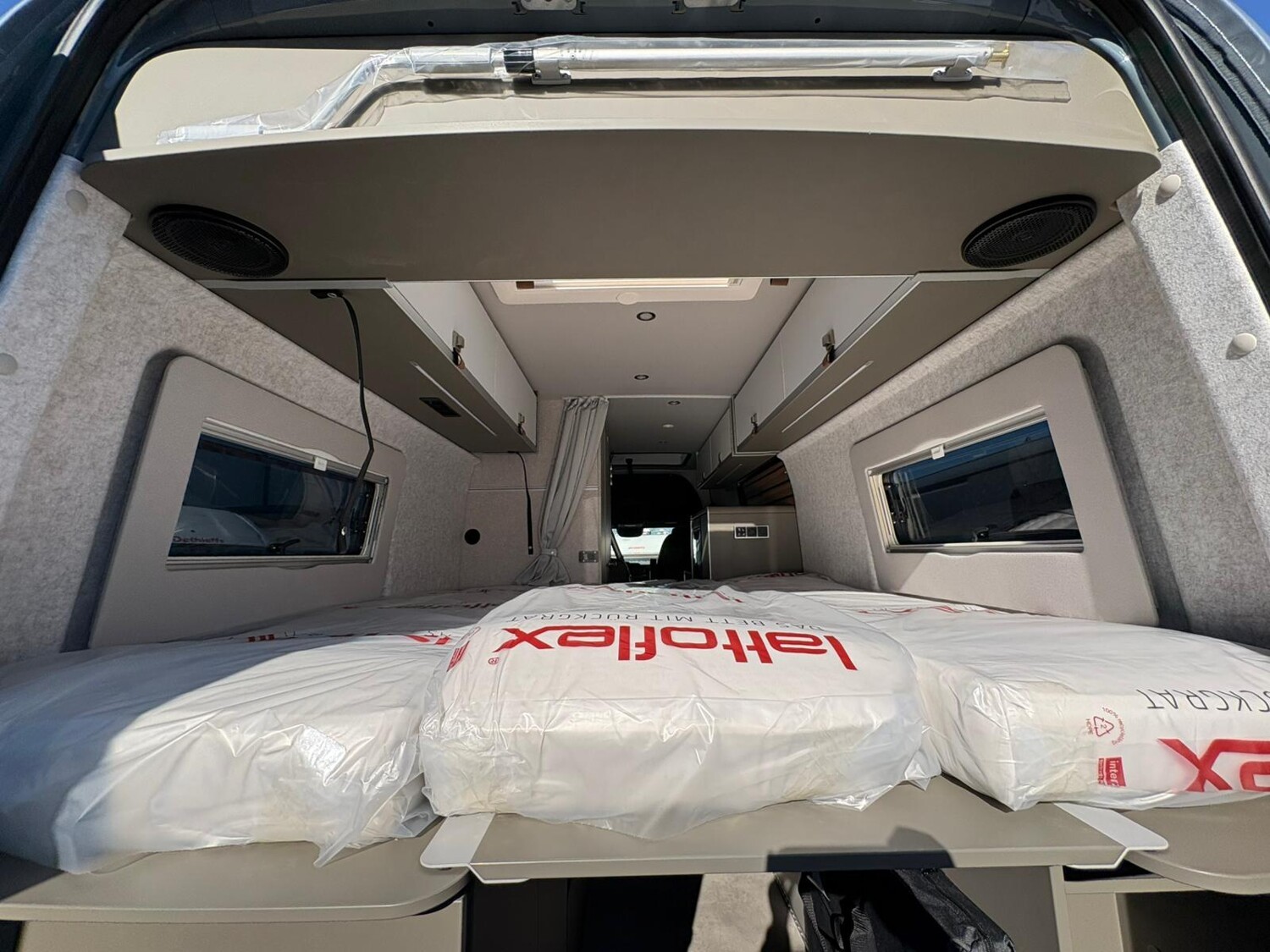 - Wohnkomfort-Paket GCS (Ambient-Light-System: Mehr-Ebenen Lichtsystem mit dynamischer und individueller Steuerung der Beleuchtung (inkl. Lichttemperatur) sowie stimmungsvoller Sockelbeleuchtung, Wohnwelt "HOME" (2 Kissen und Stofftasche), Spannbettlaken nach Maß für Heckbetten individuell an Matratzen angepasst, Einlegeboden mit Korkoberfläche)