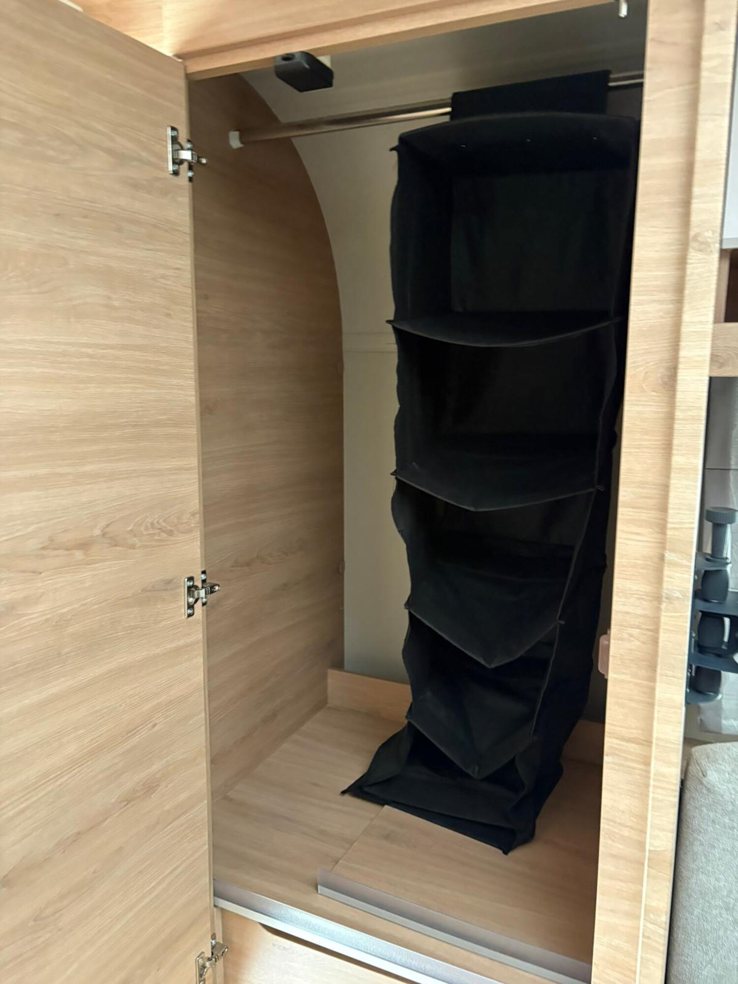 - Spiegel und Garderobe neben dem Bett