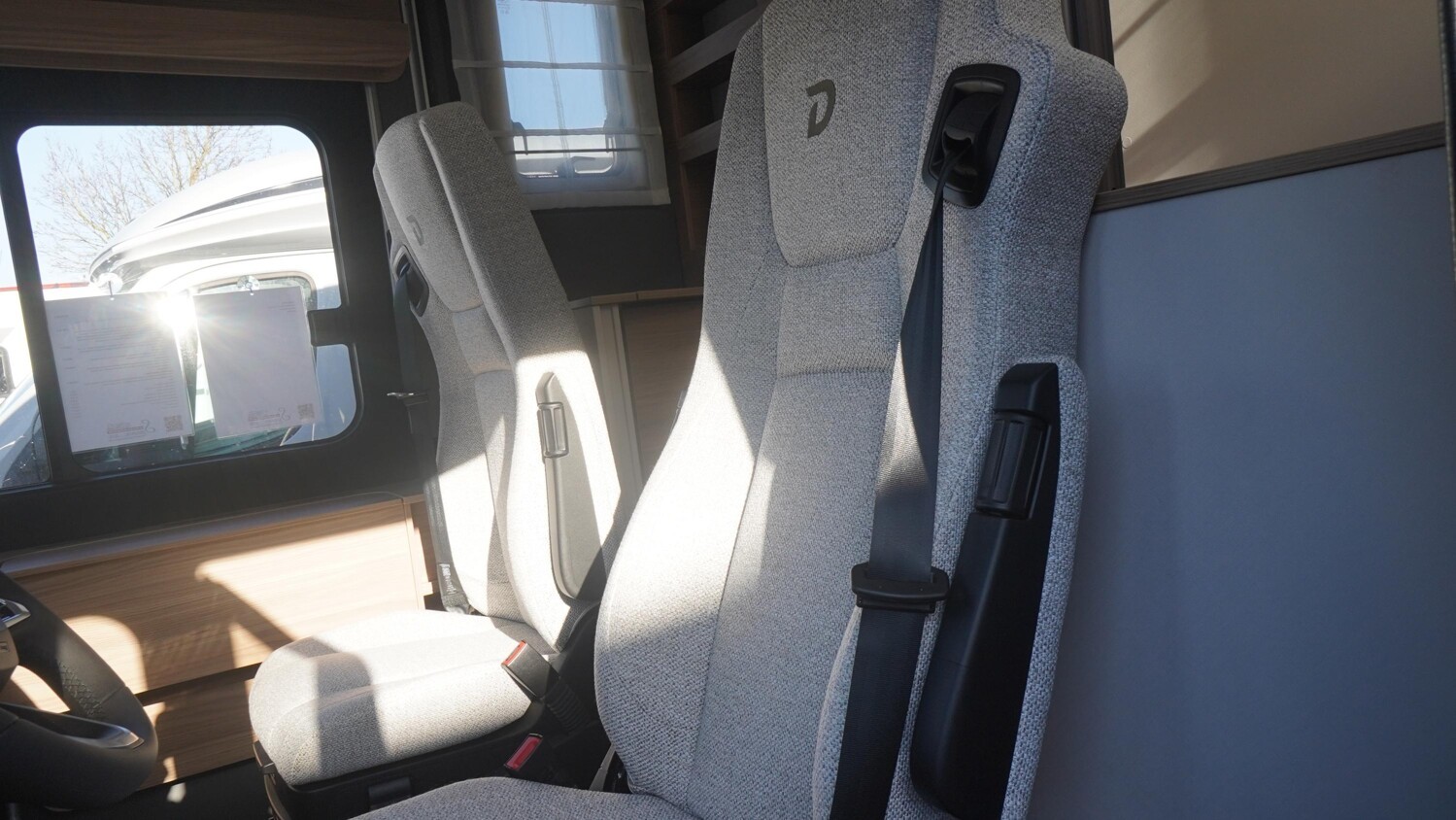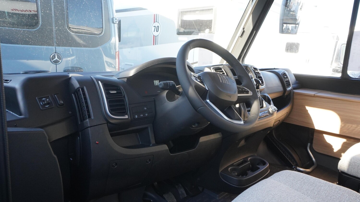 - Travel-Paket I 6820-2 (Vorbereitung für Radiosystem inkl. Soundpaket im Fahrerhaus, Light Moments: Indirekte Ambientebeleuchtung über den Dachstauschränken, Dunstabzugshaube (Abluft) mit Zugluft-Stopper, Stützen (2 Stk.) für Anbau hinten, Radioantenne DAB+ auf dem Dach montiert, Automatische Gasflaschenumschaltung inkl. Crash Sensor und EisEx, Rückfahrkamera (Einfachkamera), Panoramafenster (2 x Panoramadachhaube 70x50 cm quer) über Sitzgruppe Heck, Zentralverriegelung für Fahrerhaus-, Wohnraumtüre und Garagentüren)