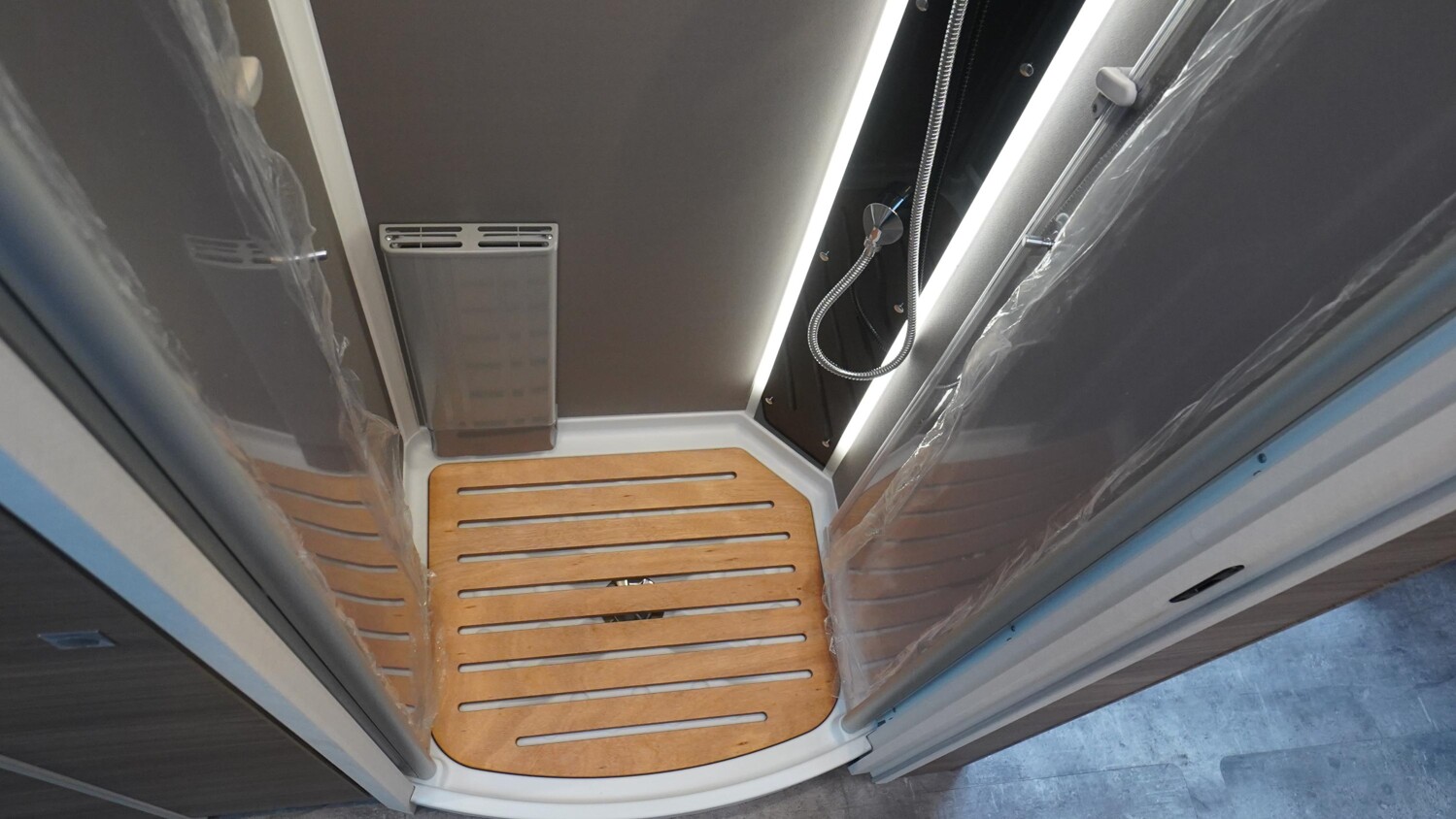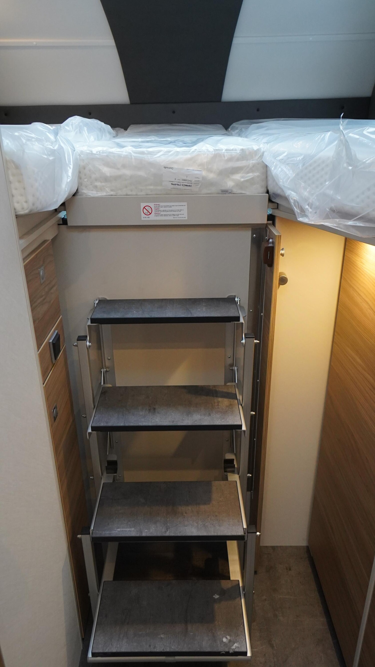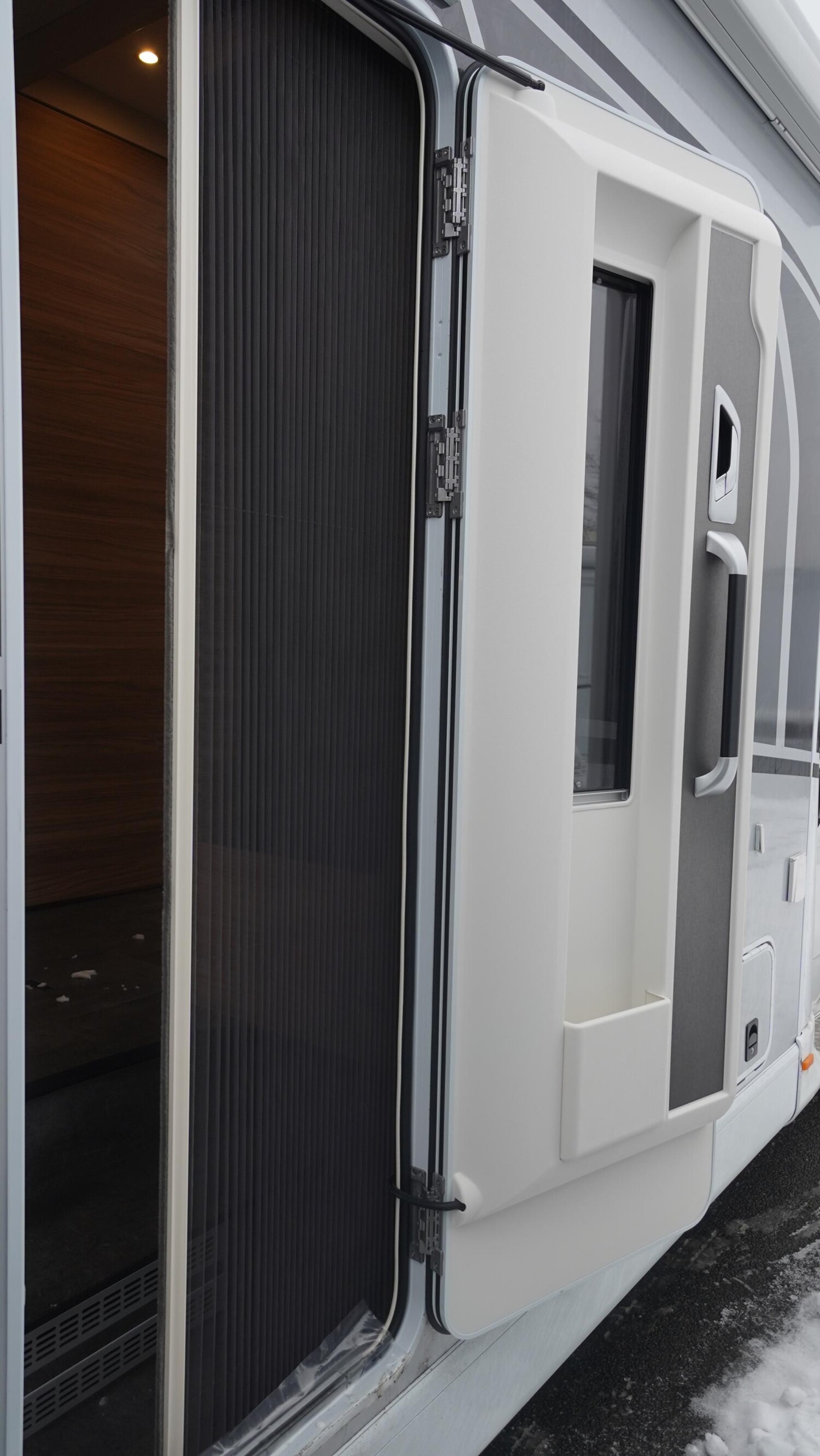 - Travel-Paket A 7820-2 (Light Moments: Indirekte Ambientebeleuchtung über den Dachstauschränken, Verdunklungsjalousien im Fahrerhaus, Dunstabzugshaube (Abluft) mit Zugluft-Stopper, Stützen (2 Stk.) für Anbau hinten, Automatische Gasflaschenumschaltung inkl. Crash Sensor und EisEx, Rückfahrkamera (Einfachkamera), Panoramafenster (zweite Panoramadachhaube 75x105 cm längs über Sitzgruppe Heck) inkl. Baldachin und Raumleuchte, Zentralverriegelung für Fahrerhaus-, Wohnraumtüre und Garagentüren)