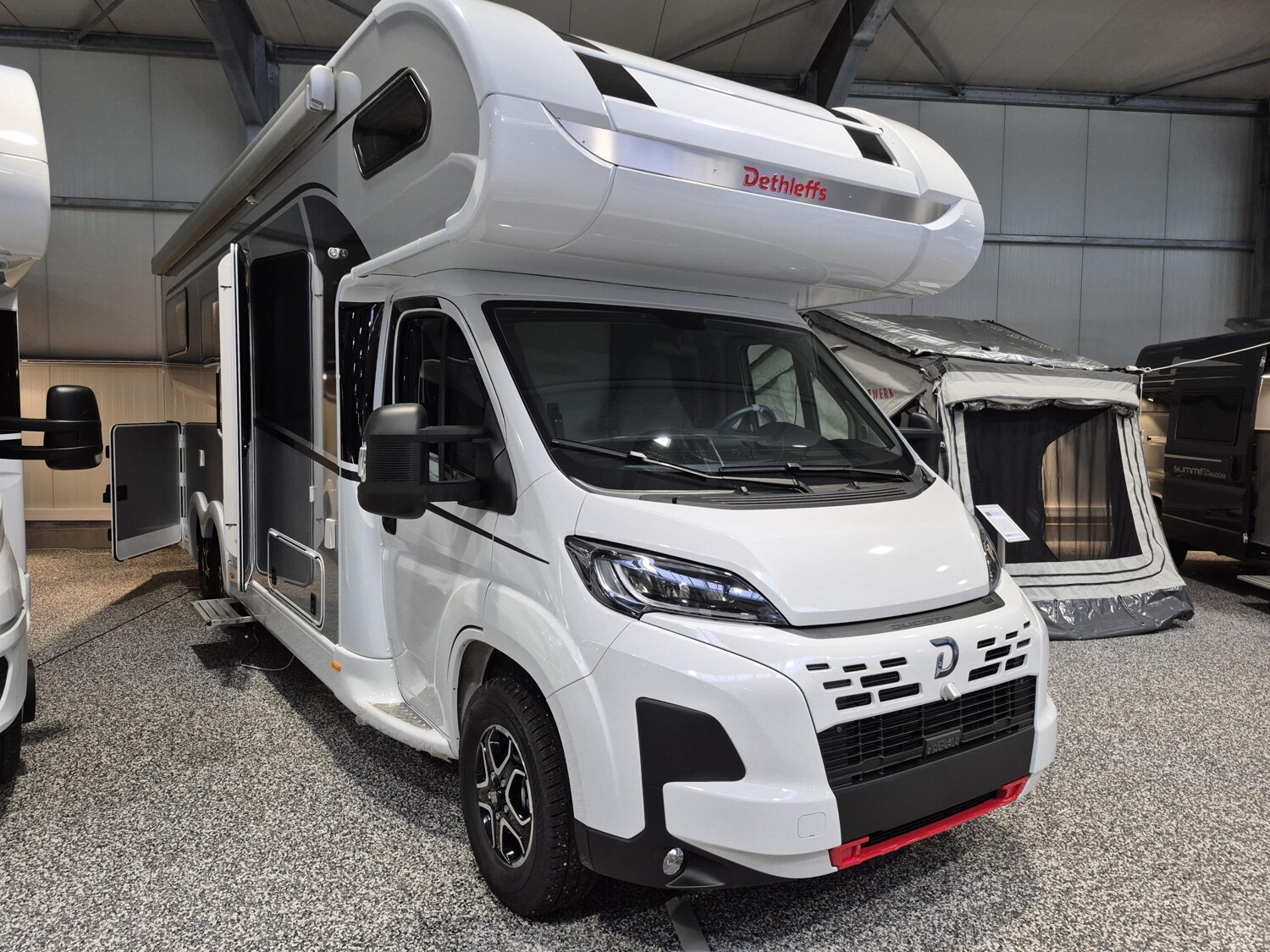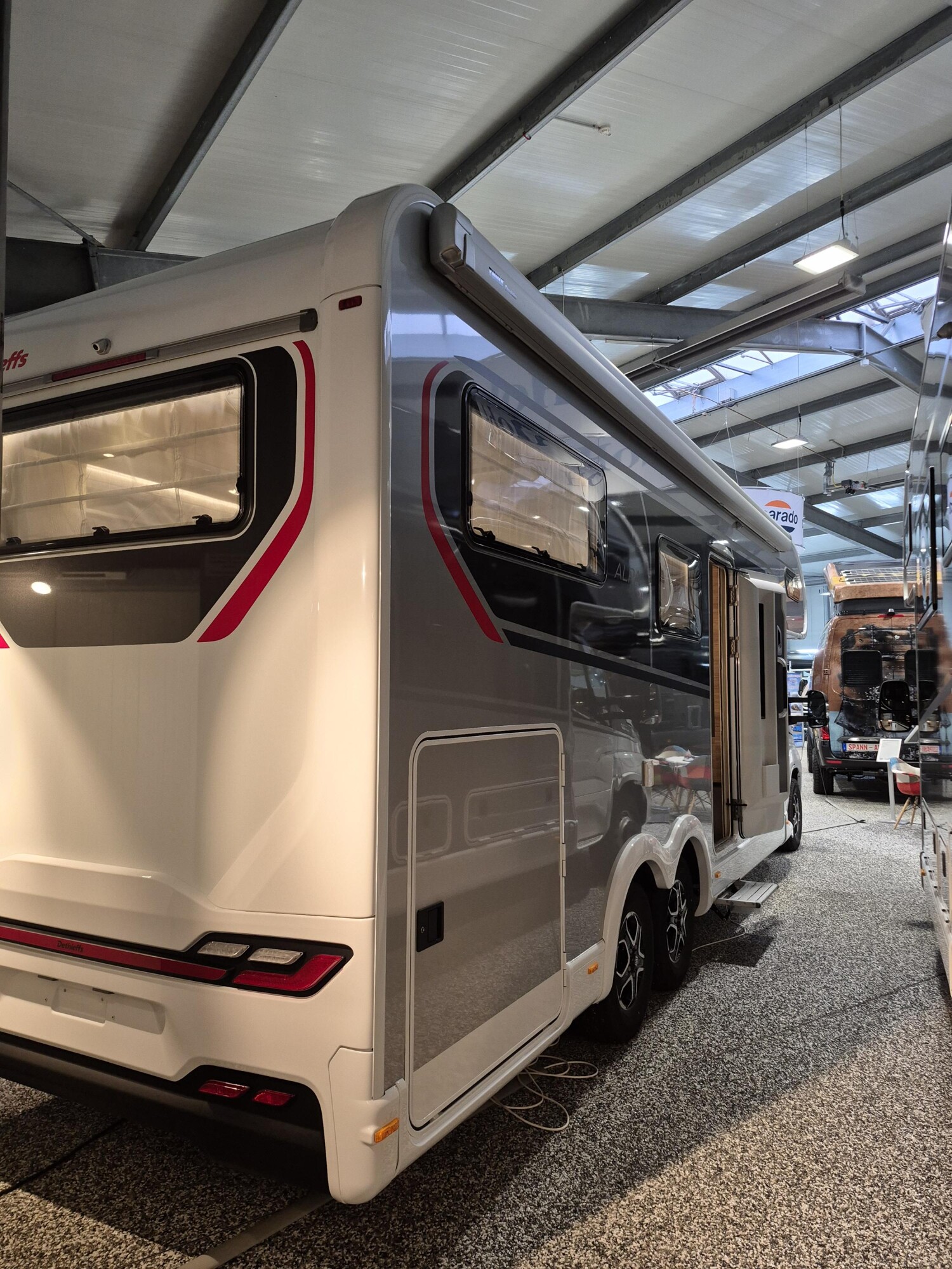- GT Paket Silber ALPA A (Styling-Paket (Alkovenaufsatz), Panorama-Dachhaube 70 x 50 cm im Alkoven, Außendesign GT (Heckleuchtenträger mit schwarzem Diffusor, Skidplate "rot"), Seitenwände in Titansilber Metallic, Hoher charakteristischer Dethleffs Exklusiv Heckleuchtenträger mit ShapeLine LED Rückleuchten und 3. Bremsleuchte)