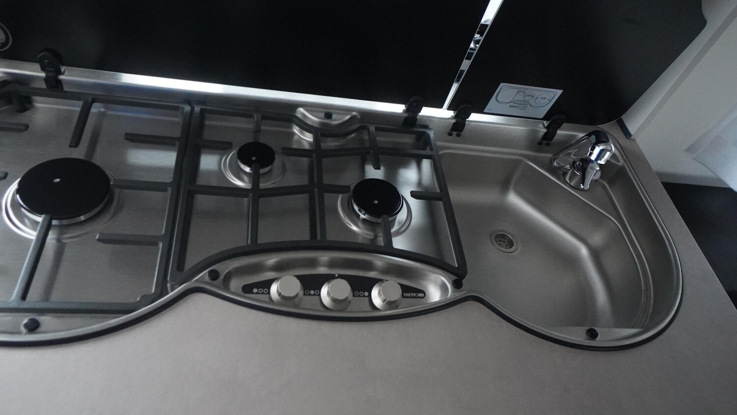 - Sassino Paket (Abwassertank 25 l rollbar, Reserveradhalterung im Flaschenkasten, Insektenschutztür in Aufbautür, Therme für Warmwasserversorgung 5 l (Warmwassermischbatterie enthalten), Umluftanlage für Gasheizung, Dachhaube Klarglas 700 x 500 mm inkl. Verdunklungsrollo und Insektenschutz, TV-Vorbereitung (1x12V Steckdose, 2x Antennenkabel SAT/TV), Zusätzliche Beleuchtung (Stromschiene inkl. Spots), Vorbereitung für Klimaanlage inkl. Dachverstärkung, 2x USB-Steckdose für Stromschiene, Stützrad mit Stützlastanzeige, Frischwassertank 44 l mit Außeneinfüllstützen, Tellerfüße für Kurbelstützen)
