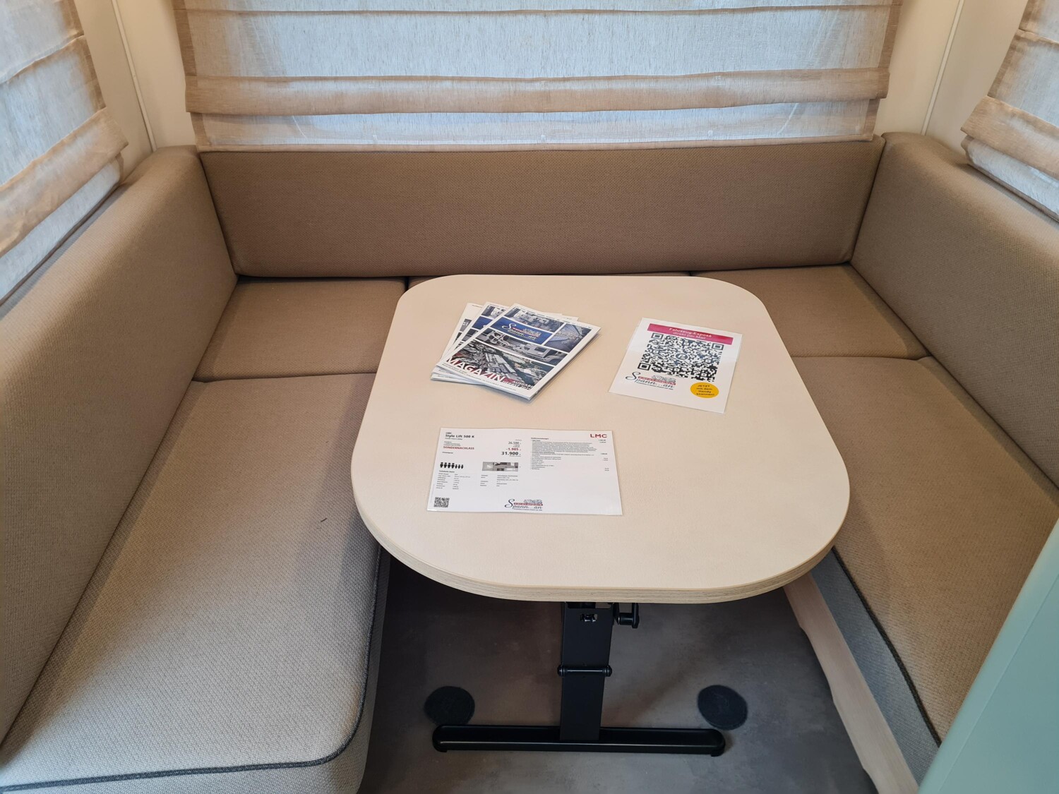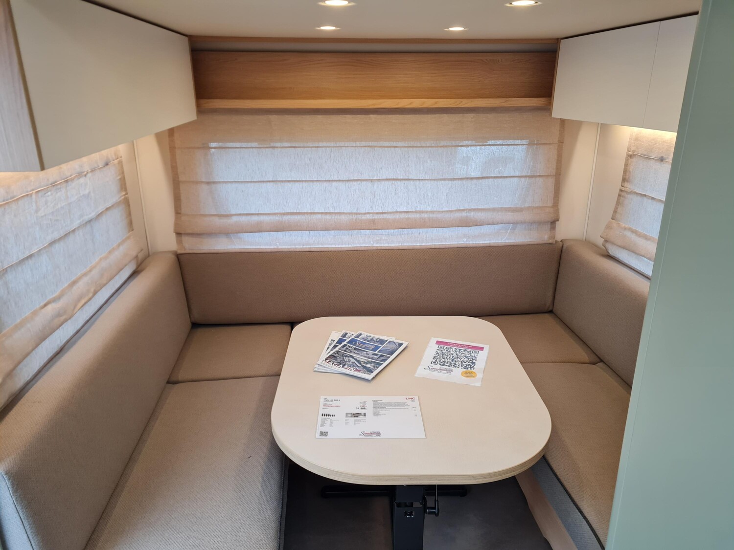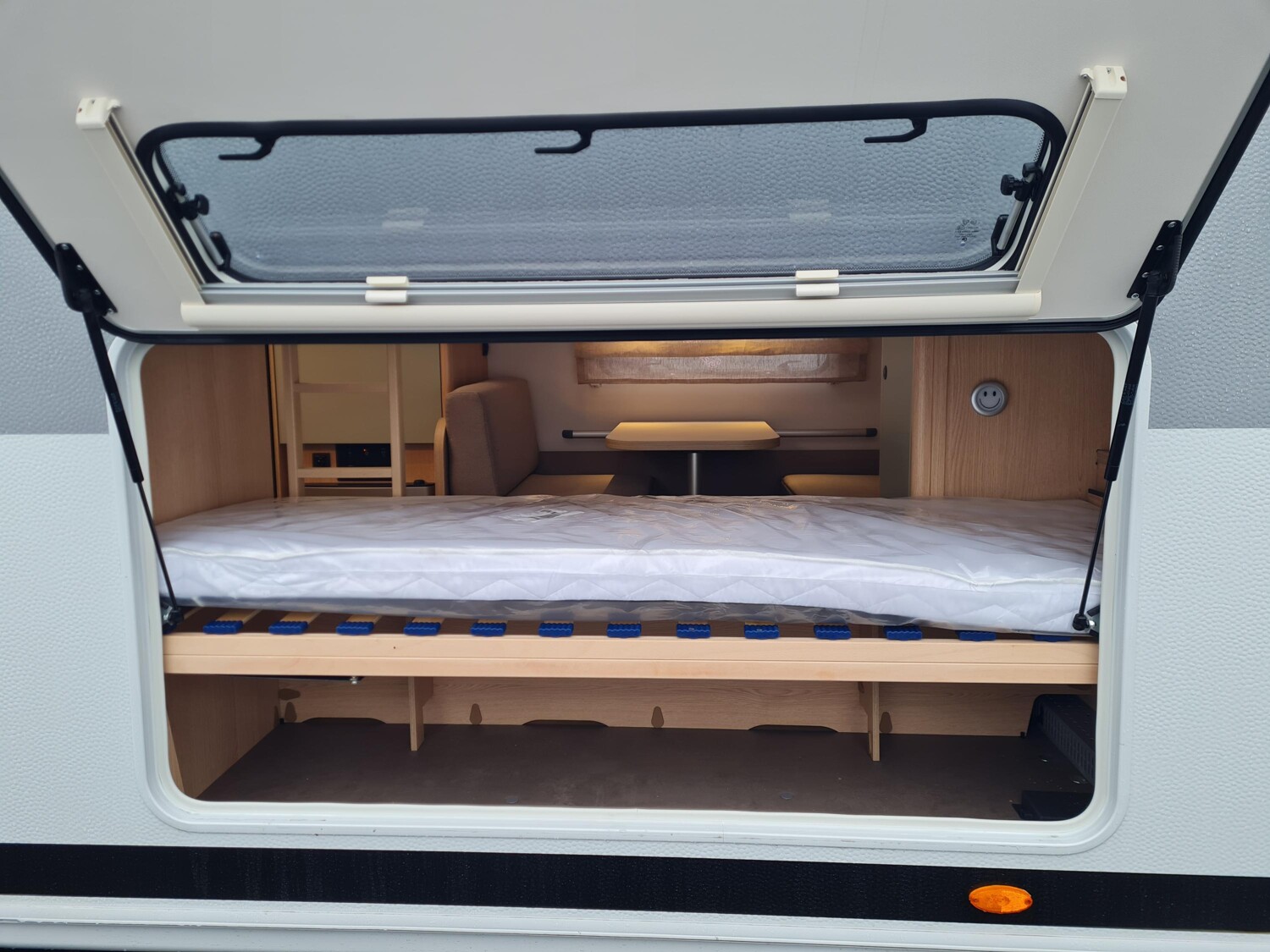 - Style Paket (TV-Vorbereitung (1x12V Steckdose, 2x Antennenkabel SAT/TV), Reserveradhalterung im Flaschenkasten, Insektenschutztür in Aufbautür, LED-Ambientebeleuchtung, Therme für Warmwasserversorgung 5 l (Warmwassermischbatterie enthalten), Umluftanlage für Gasheizung, Eingangstür mit Fenster inkl. Verdunklungsrollo, einteilig inkl. Abfalleimer, Abwassertank 25 l rollbar, Frischwassertankanzeige, 2x USB-Steckdose für Stromschiene, Vorbereitung für Klimaanlage inkl. Dachverstärkung, Stützrad mit Stützlastanzeige, Stabilformstützen inkl. Tellerfüßen, Deichselabdeckung, Vorzeltleuchte LED, Dachhaube Klarglas 960x650mm mit Baldachin und Beleuchtung über der Sitzgruppe inkl. Verdunklungsrollo und Insektenschutz)