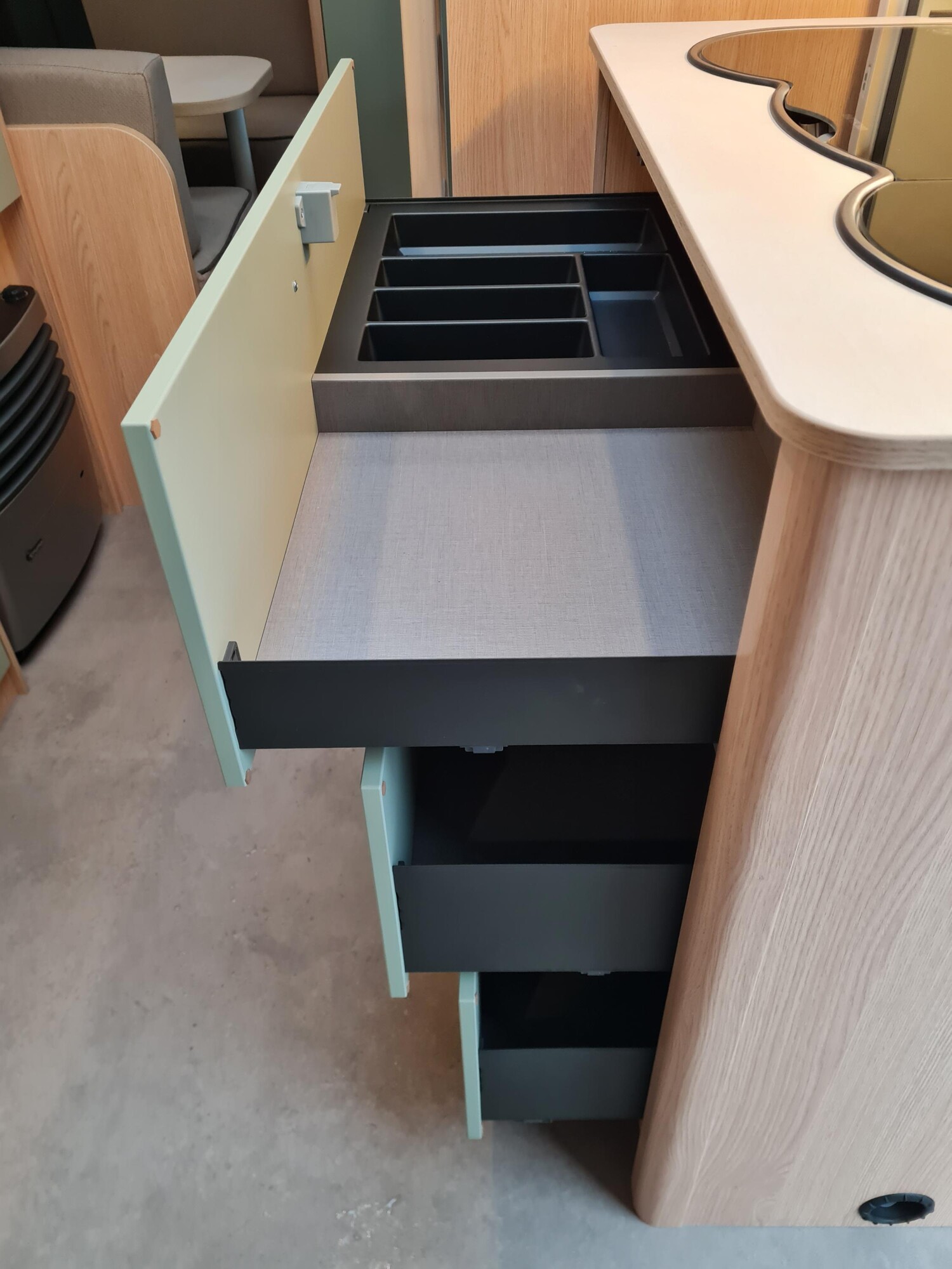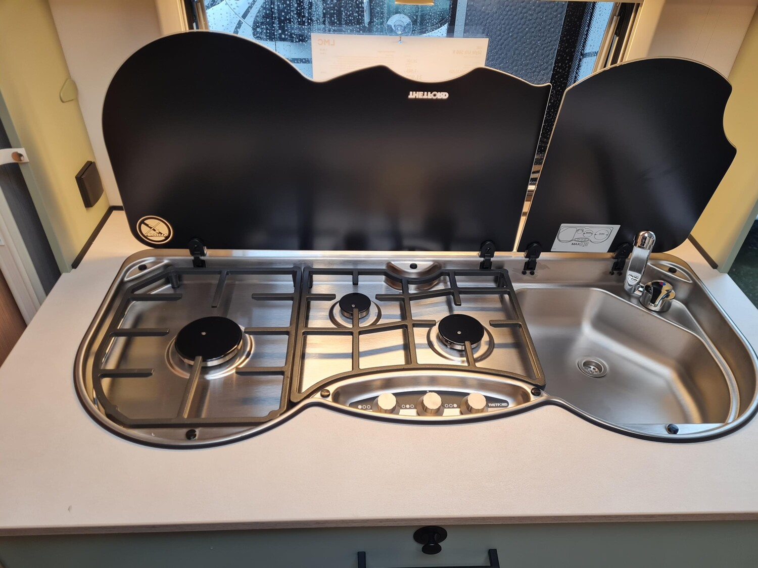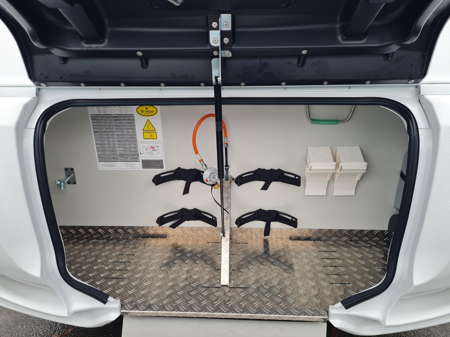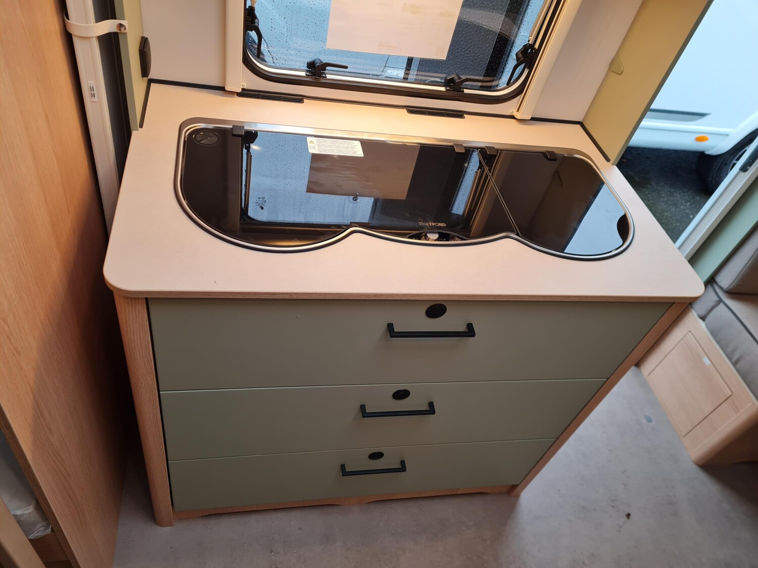 - Style Paket (TV-Vorbereitung (1x12V Steckdose, 2x Antennenkabel SAT/TV), Reserveradhalterung im Flaschenkasten, Insektenschutztür in Aufbautür, LED-Ambientebeleuchtung, Therme für Warmwasserversorgung 5 l (Warmwassermischbatterie enthalten), Umluftanlage für Gasheizung, Eingangstür mit Fenster inkl. Verdunklungsrollo, einteilig inkl. Abfalleimer, Abwassertank 25 l rollbar, Frischwassertankanzeige, 2x USB-Steckdose für Stromschiene, Vorbereitung für Klimaanlage inkl. Dachverstärkung, Stützrad mit Stützlastanzeige, Stabilformstützen inkl. Tellerfüßen, Deichselabdeckung, Vorzeltleuchte LED, Dachhaube Klarglas 960x650mm mit Baldachin und Beleuchtung über der Sitzgruppe inkl. Verdunklungsrollo und Insektenschutz)