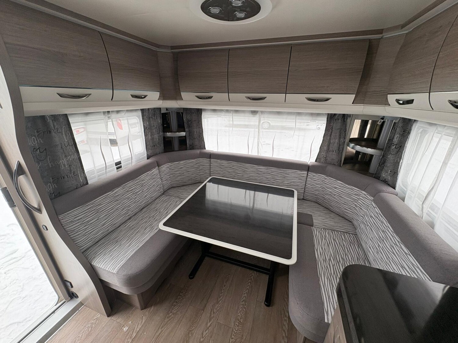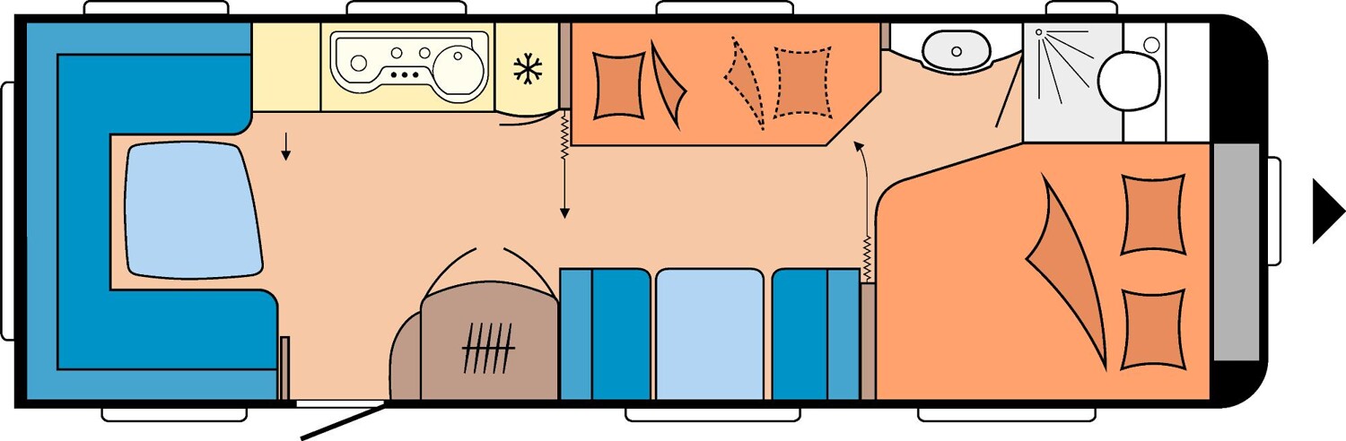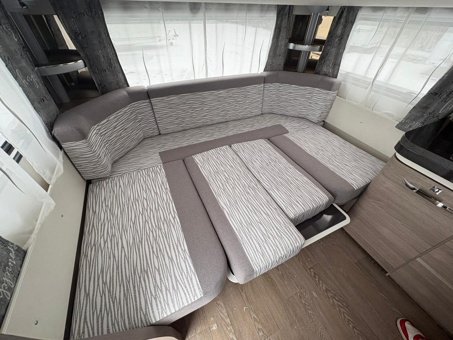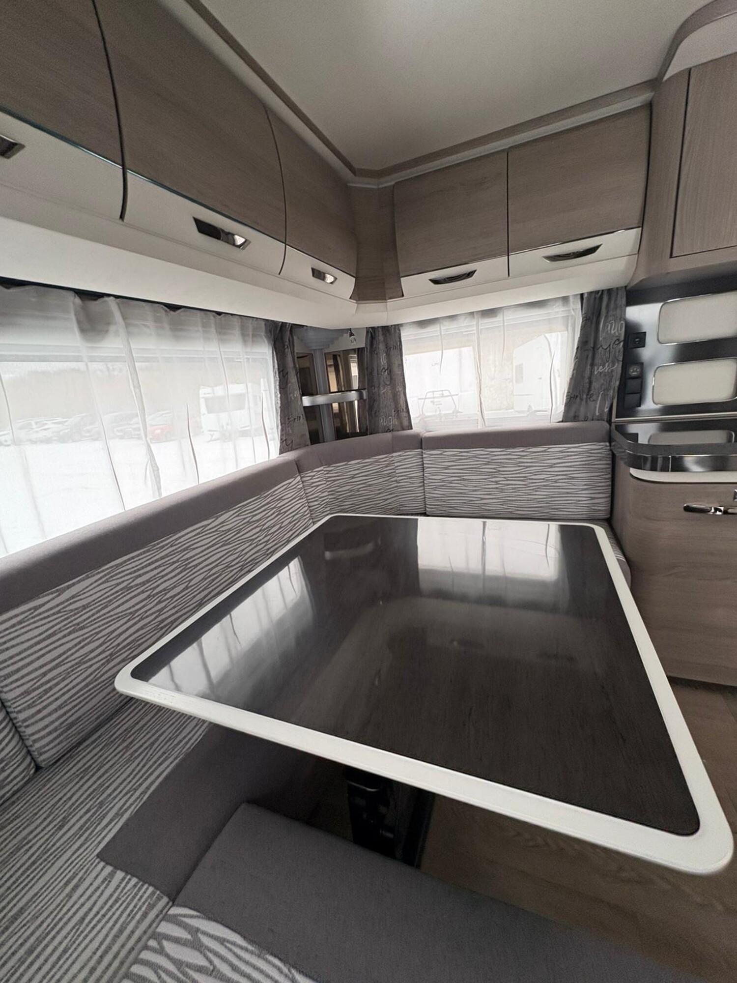 - Rundsitzgruppe im Heck, umbaubar zu einer Schlafmöglichkeit, umliegende Stauschränke