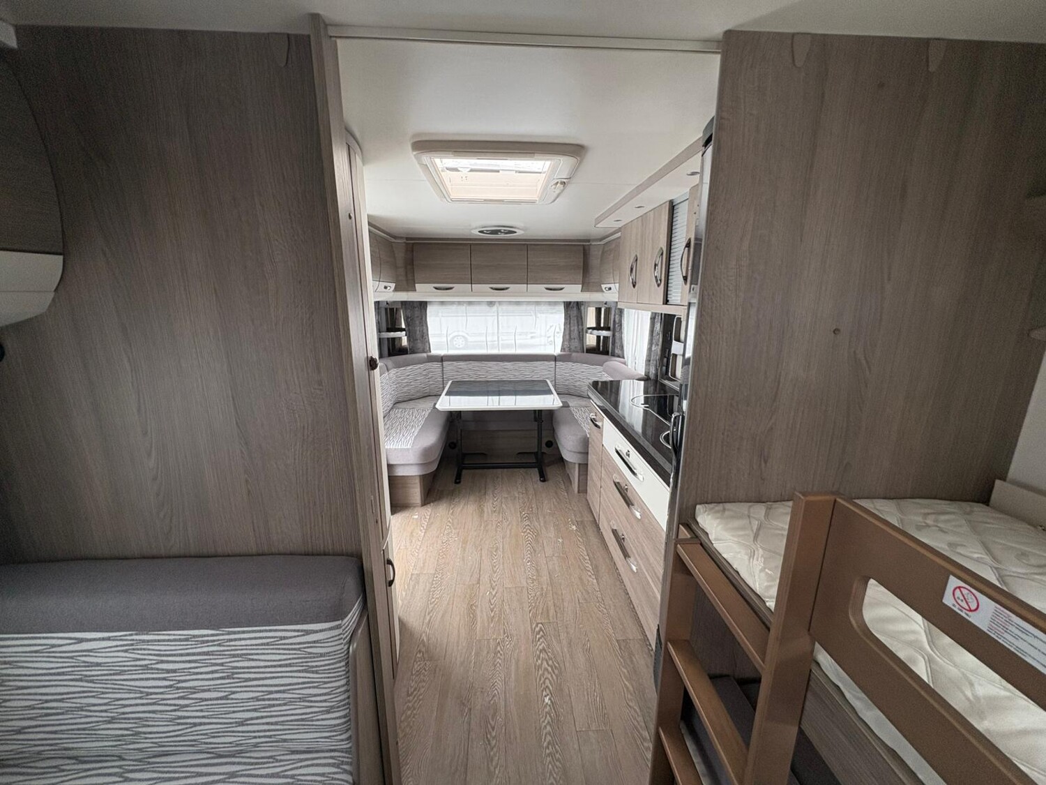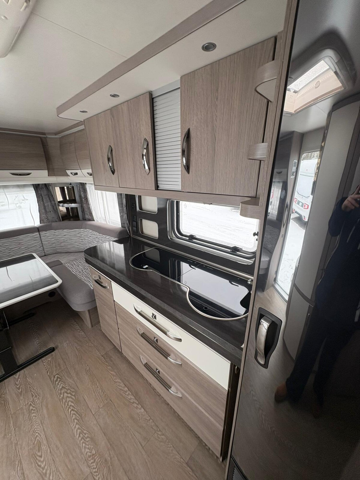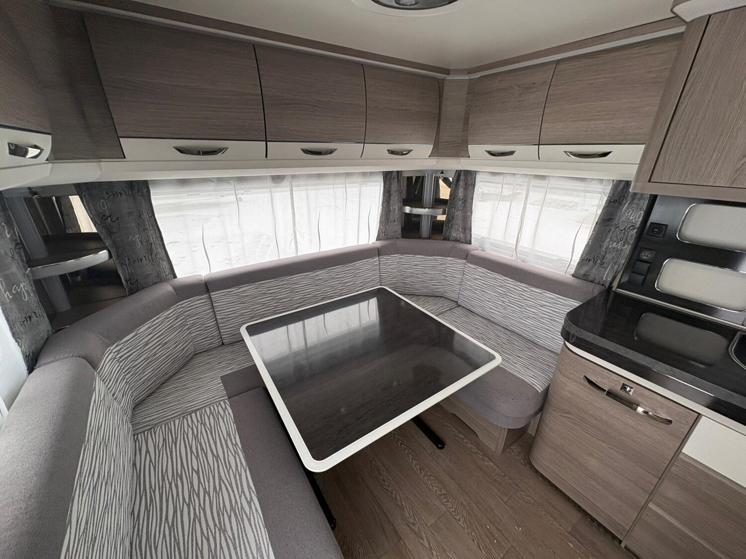 - Rundsitzgruppe im Heck, umbaubar zu einer Schlafmöglichkeit, umliegende Stauschränke
