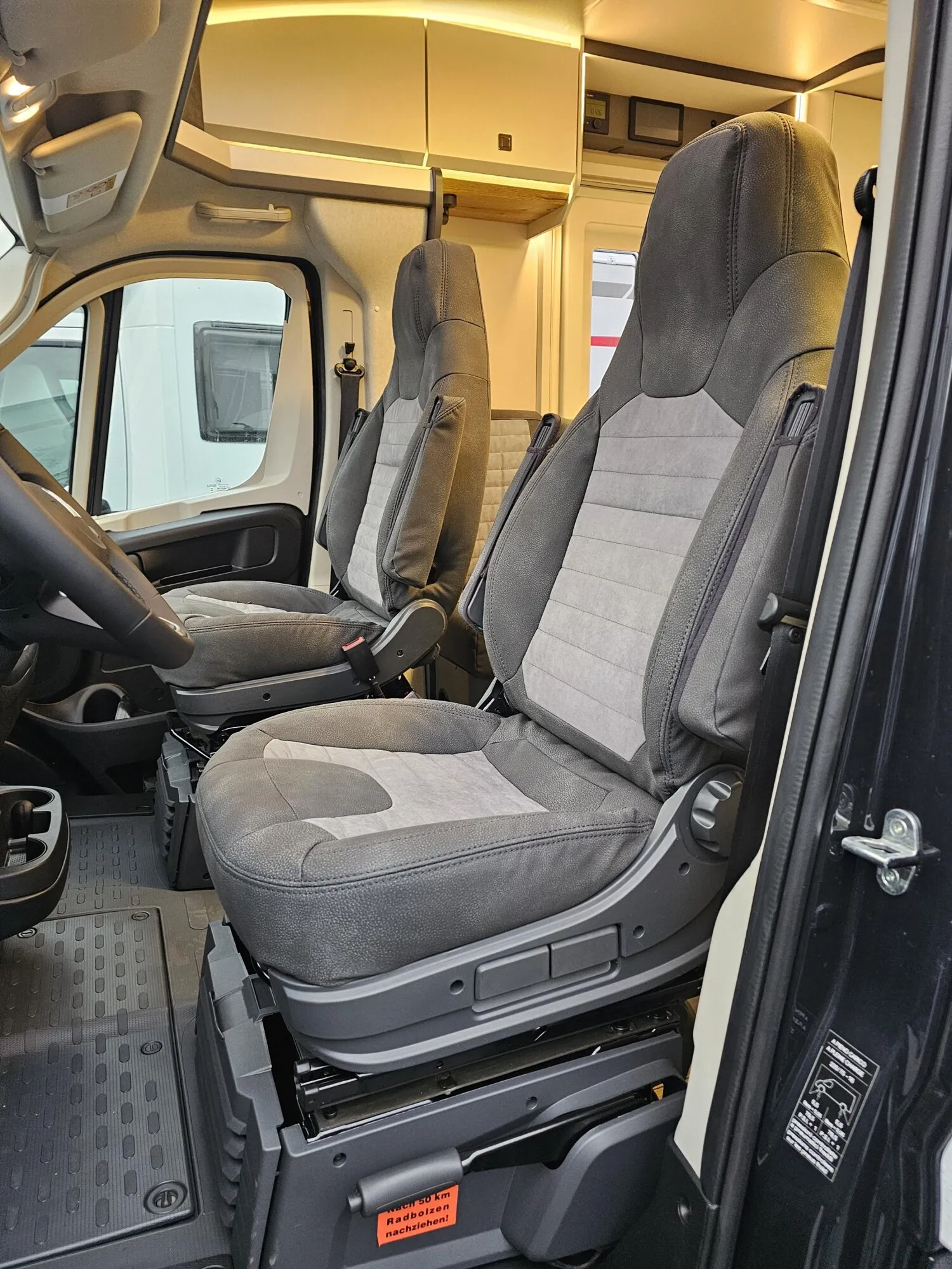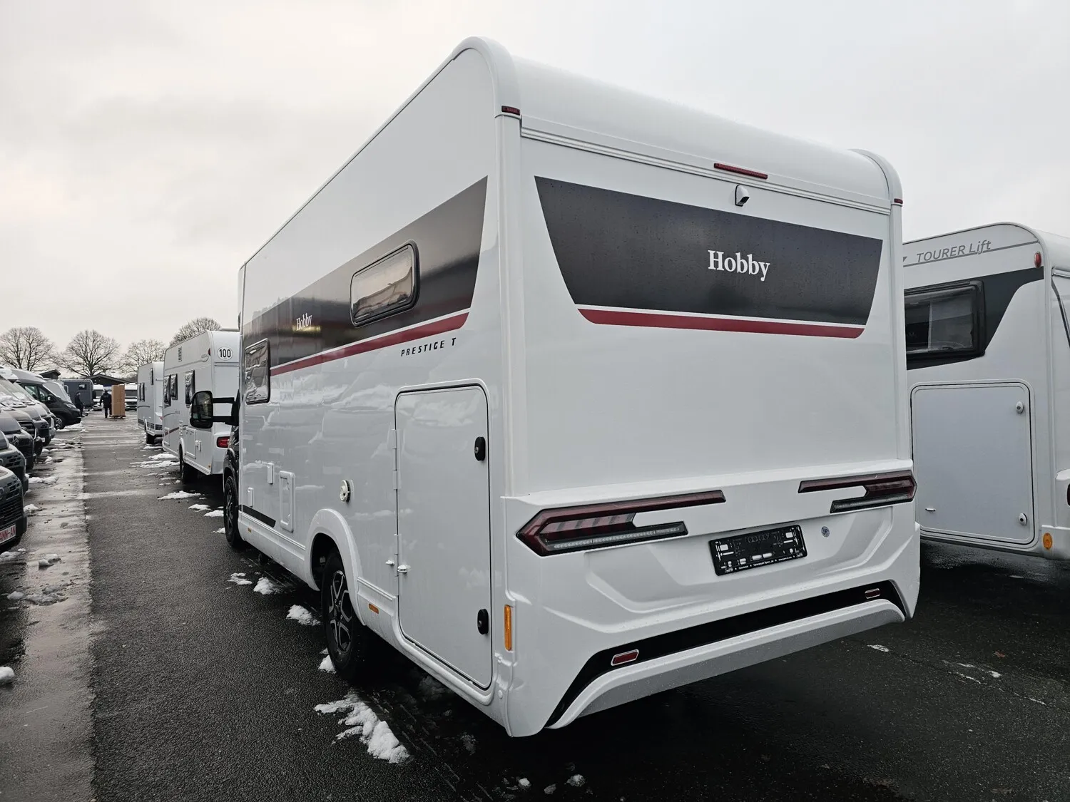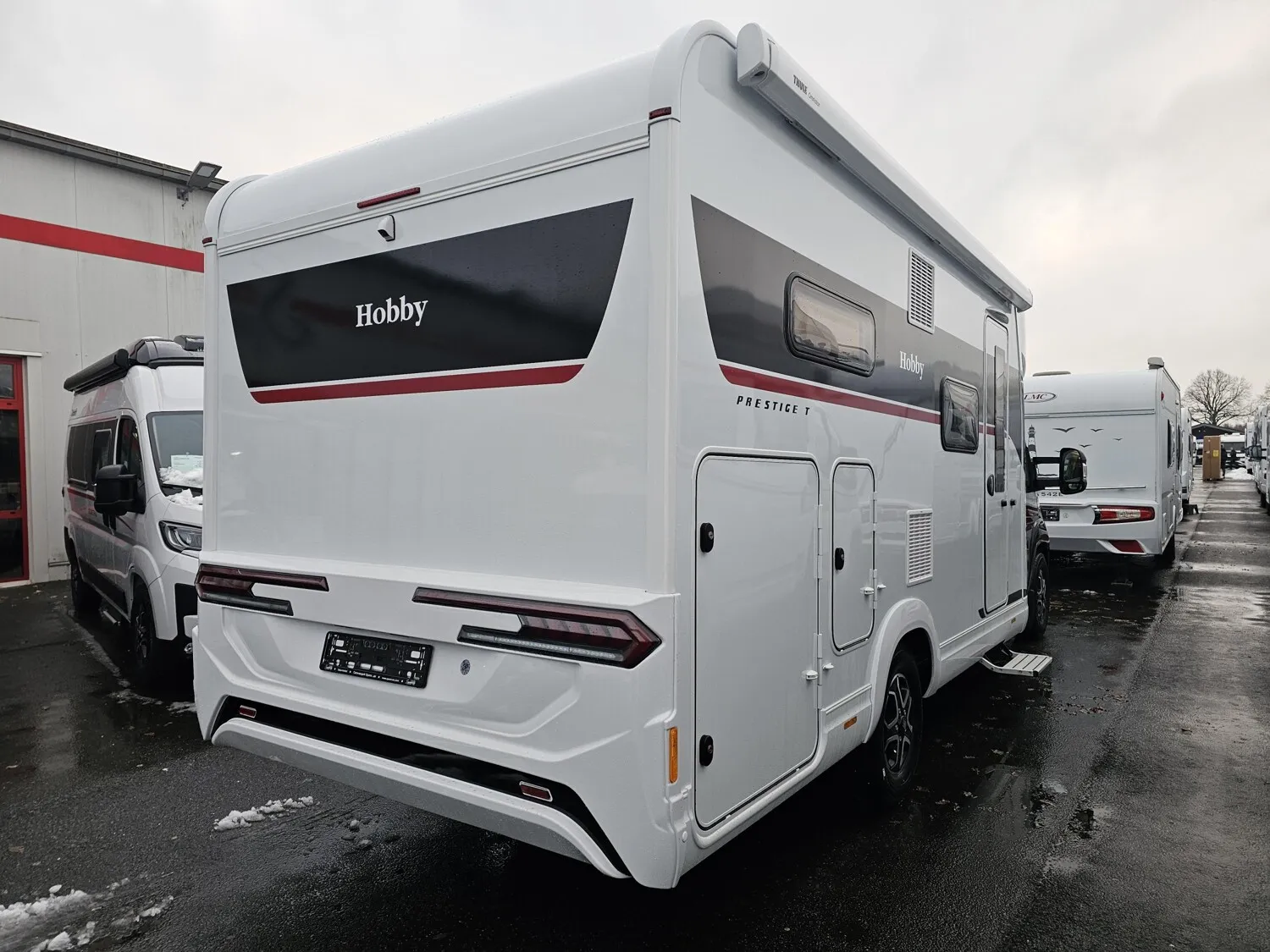 - Serienhighlights Prestige T 710 GE 2026 (Serienausstattung: Motorisierung (2.184 ccm, 132 kW / 180 PS, Euro 6 EB, mit 8-Gang-Automatikgetriebe (inklusive FIAT Tiefrahmen-Chassis Maxi, 4.400 kg)), FIAT Tiefrahmen-Chassis Maxi, 4.400 kg (nur in Verbindung mit 180-PS-Motor), Zulassung für 4 Personen, Bicolor Leichtmetallfelgen 16", Fahrer- und Beifahrerairbag, Halogenscheinwerfer mit Tagfahrlicht, Nebelscheinwerfer mit Kurvenlicht, Voll-LED-Scheinwerfer, Paket "Lounge" (inkl. elektronisch regelbarer Klimaanlage mit Pollenfilter, induktiver Smartphone Ladefunktion, digitaler Instrumentenanzeige als 7" TFT-Farbdisplay), Lenkrad mit Bedienelementen, Lenkrad und Schaltknauf in Lederausführung, Radioantenne (DAB), Schmutzfänger, vorne, Wegfahrsperre, elektronisch, Dieseltank, 90 Liter), Assistenzsysteme (ABS Antiblockiersystem, ESP inkl. ASR, Hillholder und intelligenter Traktionskontrolle, Paket "Safety" (inkl. autom. Bremssystem mit Fußgängererkennung, Regen- und Lichtsensor, Spurhalteassistent, Verkehrsschildererkennung, Fahrermüdigkeitserkennung und intelligentem Geschwindigkeitsassistent), Post Collision Braking System, Reifendruckkontrollsystem, Seitenwindassistent, Tempomat, Anbaumarkise THULE OMNISTOR, Breite 400 cm, Kühlschrank (AES) DOMETIC, 133l, mit Doppelanschlag, Absorbertechnik, Wasser/Gas/Technik (Abwassertank, 96 Liter, isoliert und beheizt, Frischwassertank, 10 / 100 Liter, Bordbatterie Dual AGM, 12 V / 95 Ah, Vorbereitung für Solaranlage, Heizung TRUMA Combi 6 inkl. 10-Liter-Warmwasseraufbereitung und Frostwächterventil, LCD-Bedienpanel TRUMA Combi CP Plus, Vorbereitung Dachklimaanlage, Smart Home (Steuerung für Bordtechnik über Hobby-7" Touch-Bedienpanel und Bluetooth per App, inkl. HOBBY CONNECT), Radio PIONEER, 9" Touchscreen inkl. Apple Car Play / Android Car und Rückfahrkamera, TV-Anschluss, Vorbereitung für SAT-Anlage)))