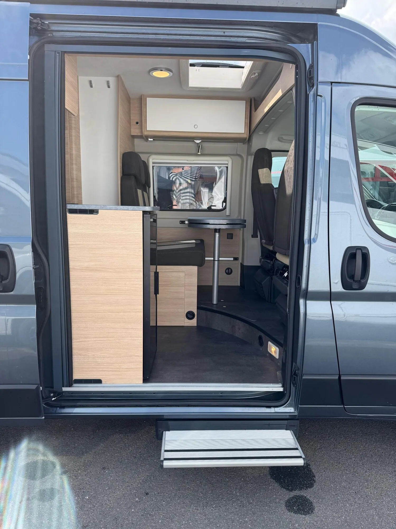 - Schiebetür mit einer elektrischen Trittstufe und einer Fliegenschutztür